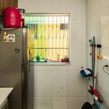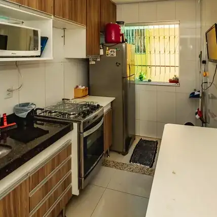 Armários embutidos em cozinha, lavanderia e dormitórios.