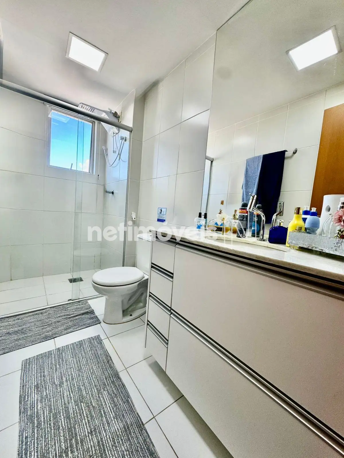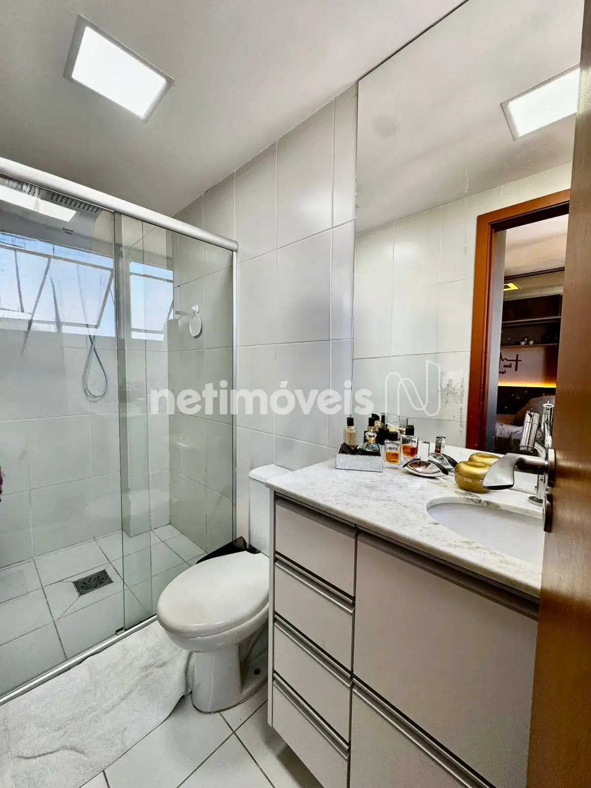 2 banheiros completos, com armários, espelhos, bancadas em granito e box em vidro