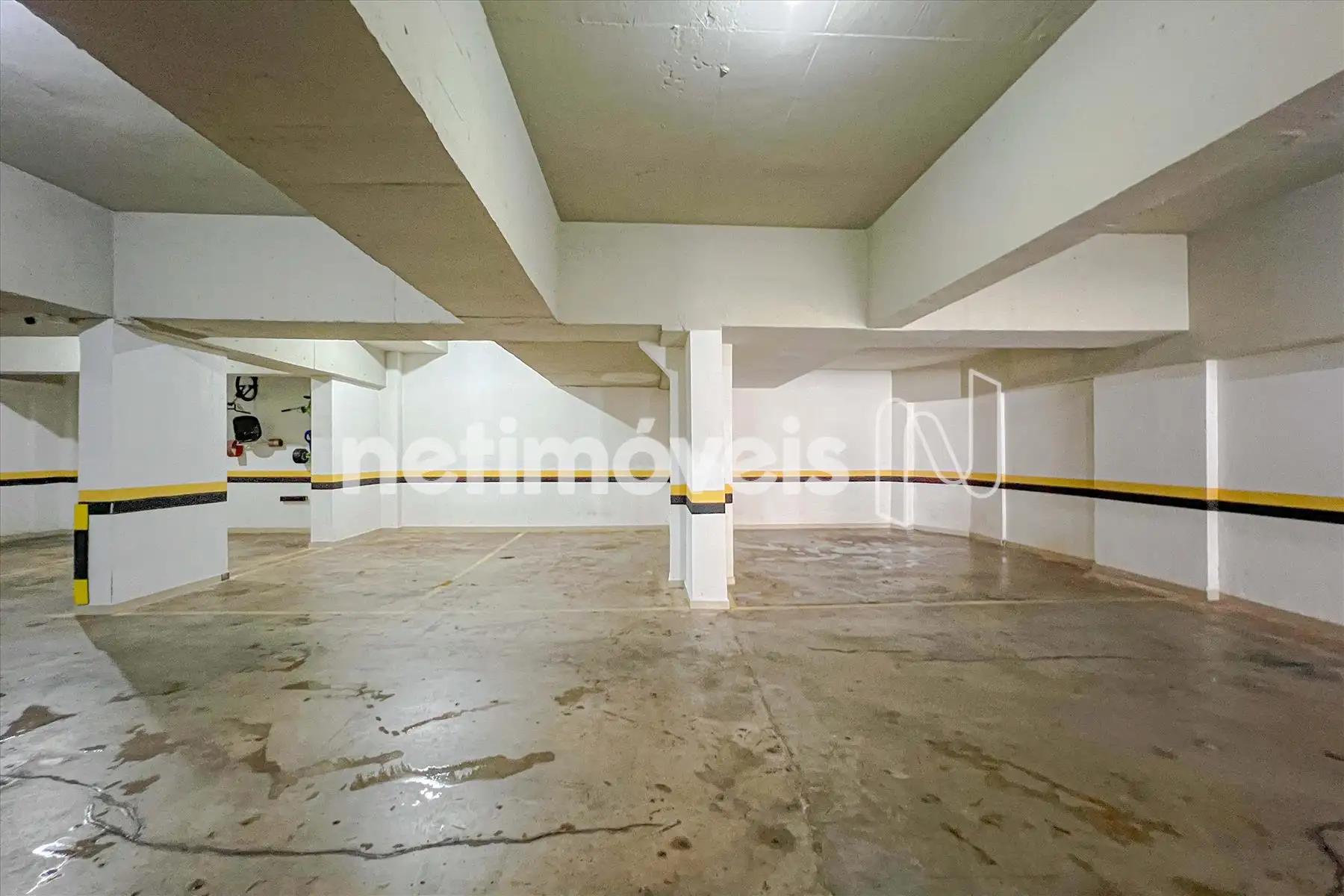 4 vagas de garagem cobertas, paralelas e demarcadas.
