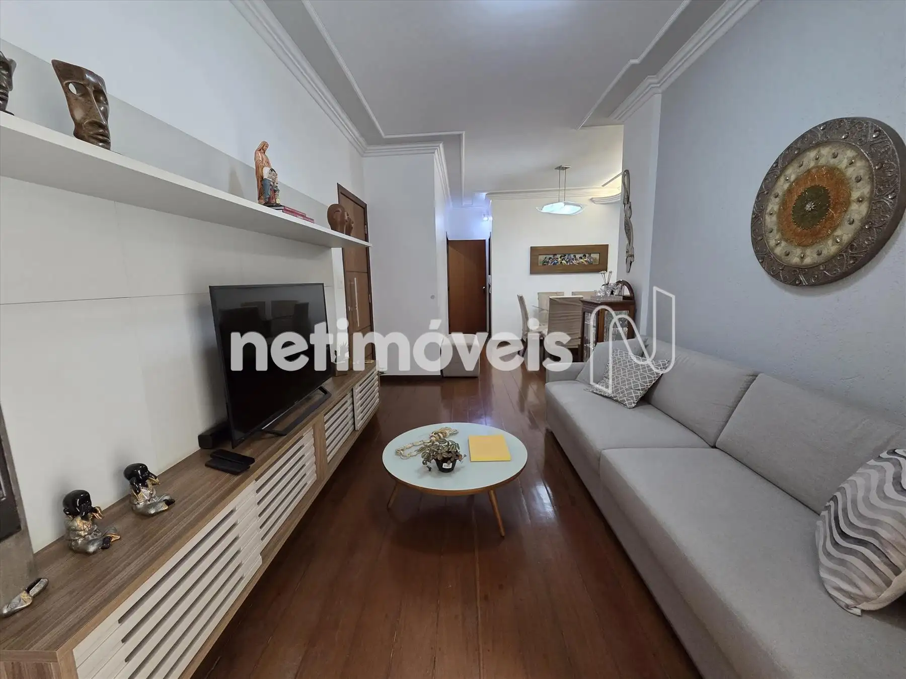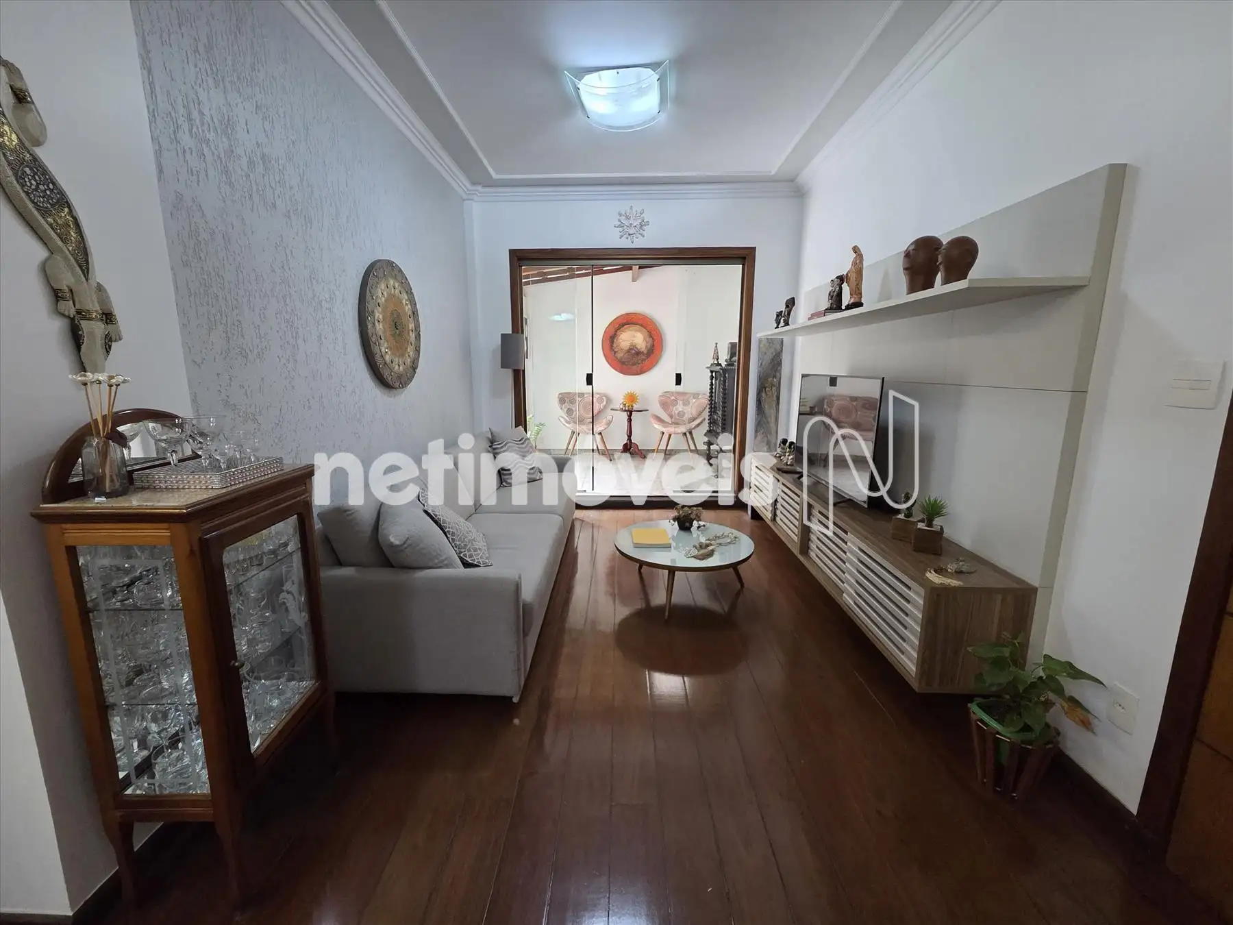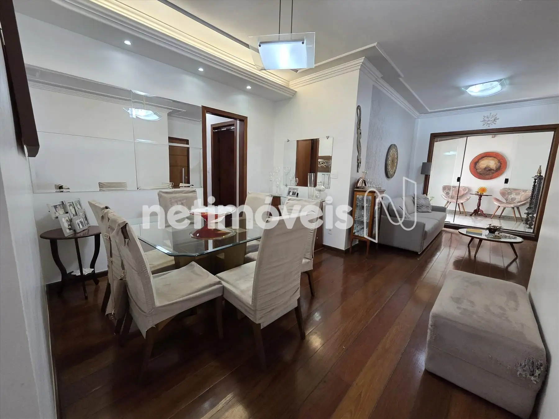 Sala 2 ambientes com piso em tábua corrida,