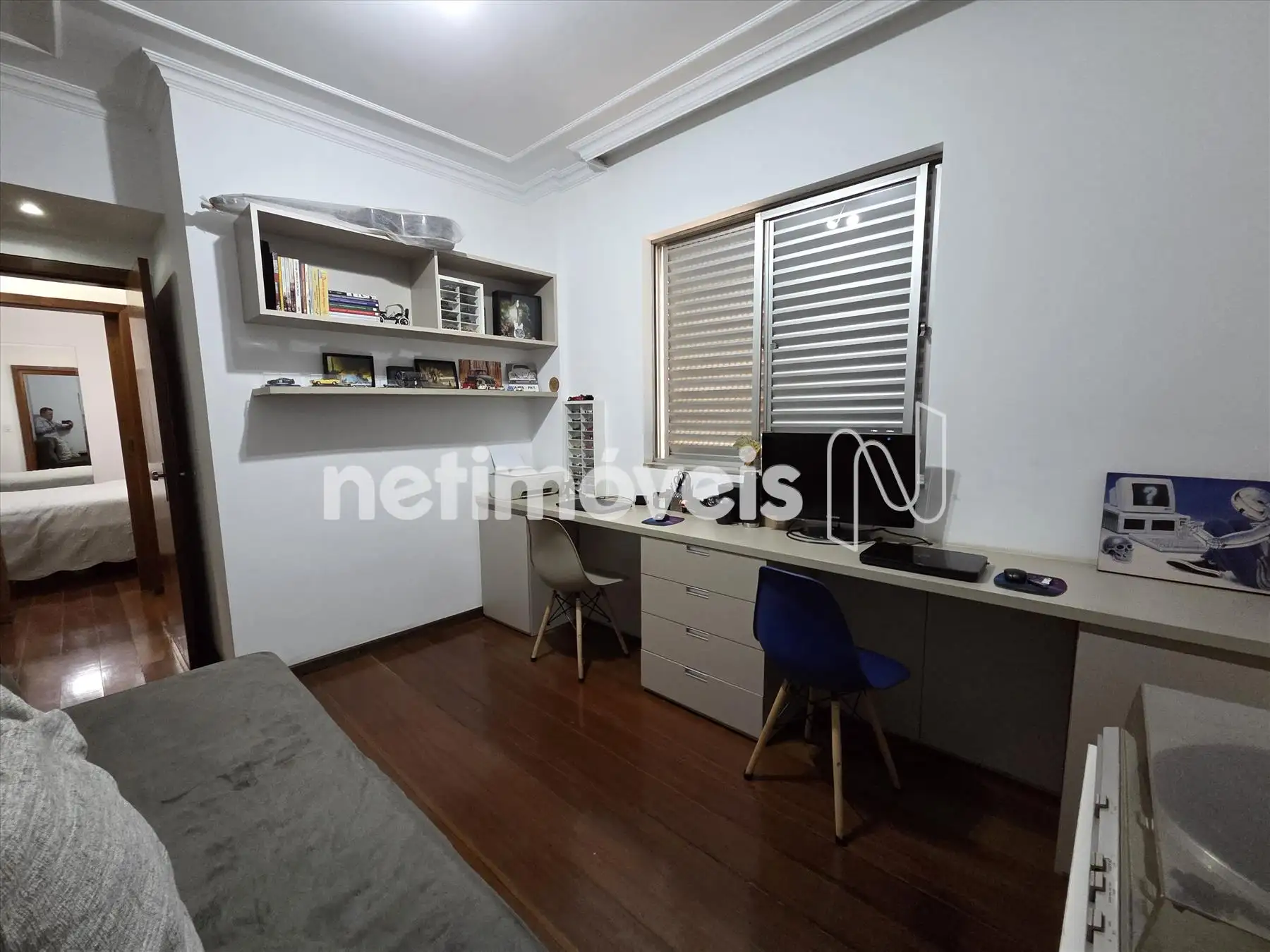 3 quartos com armários, janelas em venezianas, piso em tábua corrida sendo 1 quarto suíte com closet,