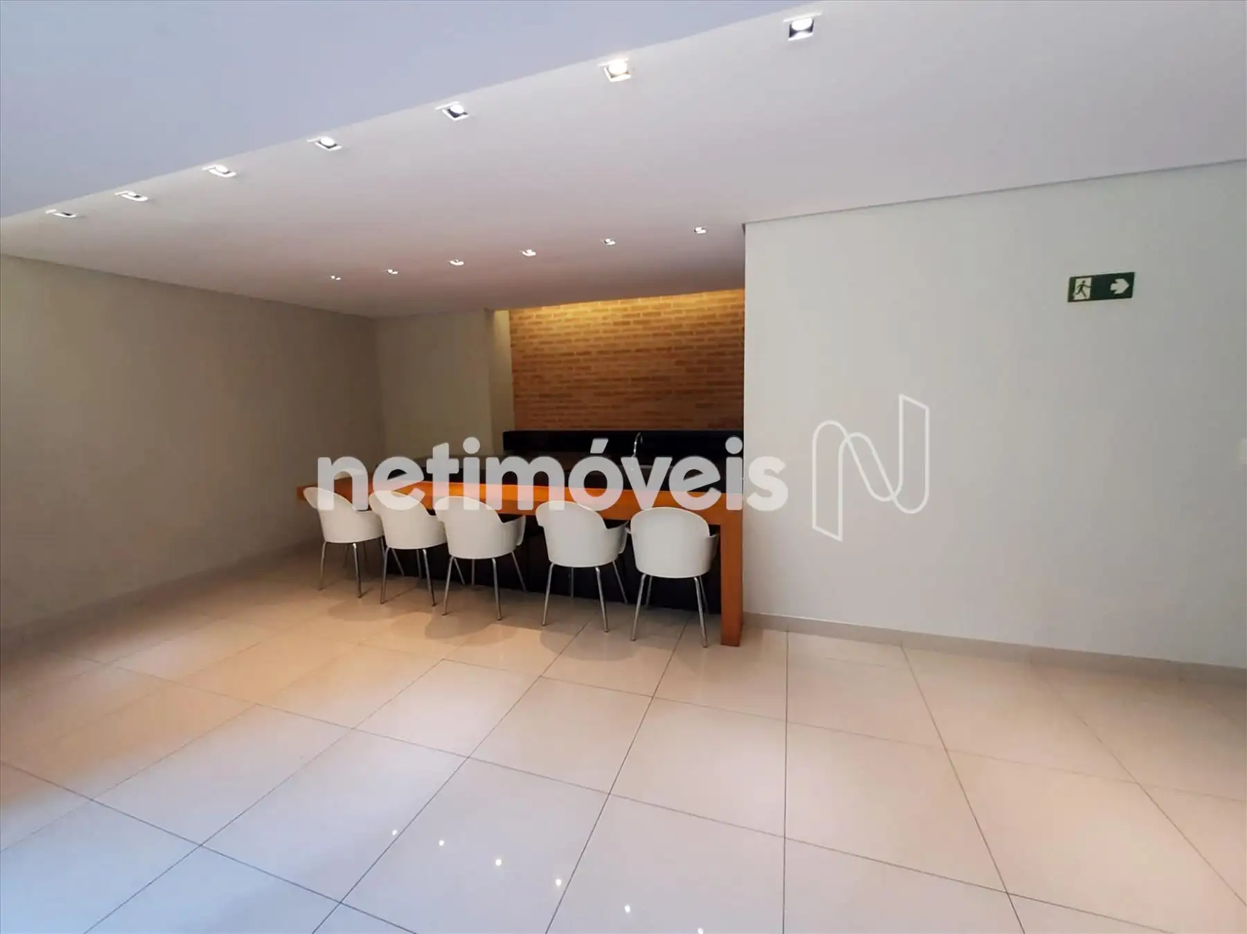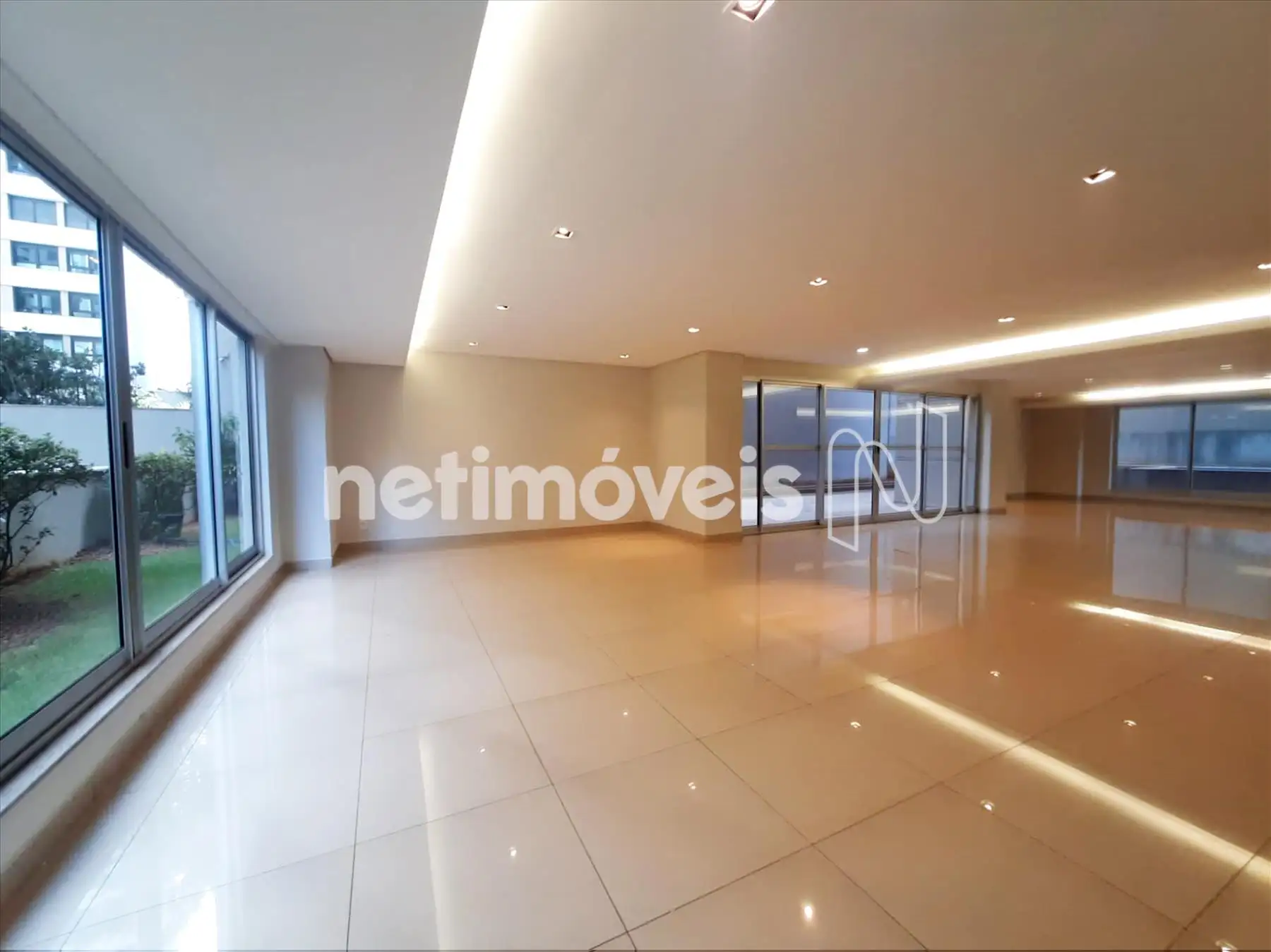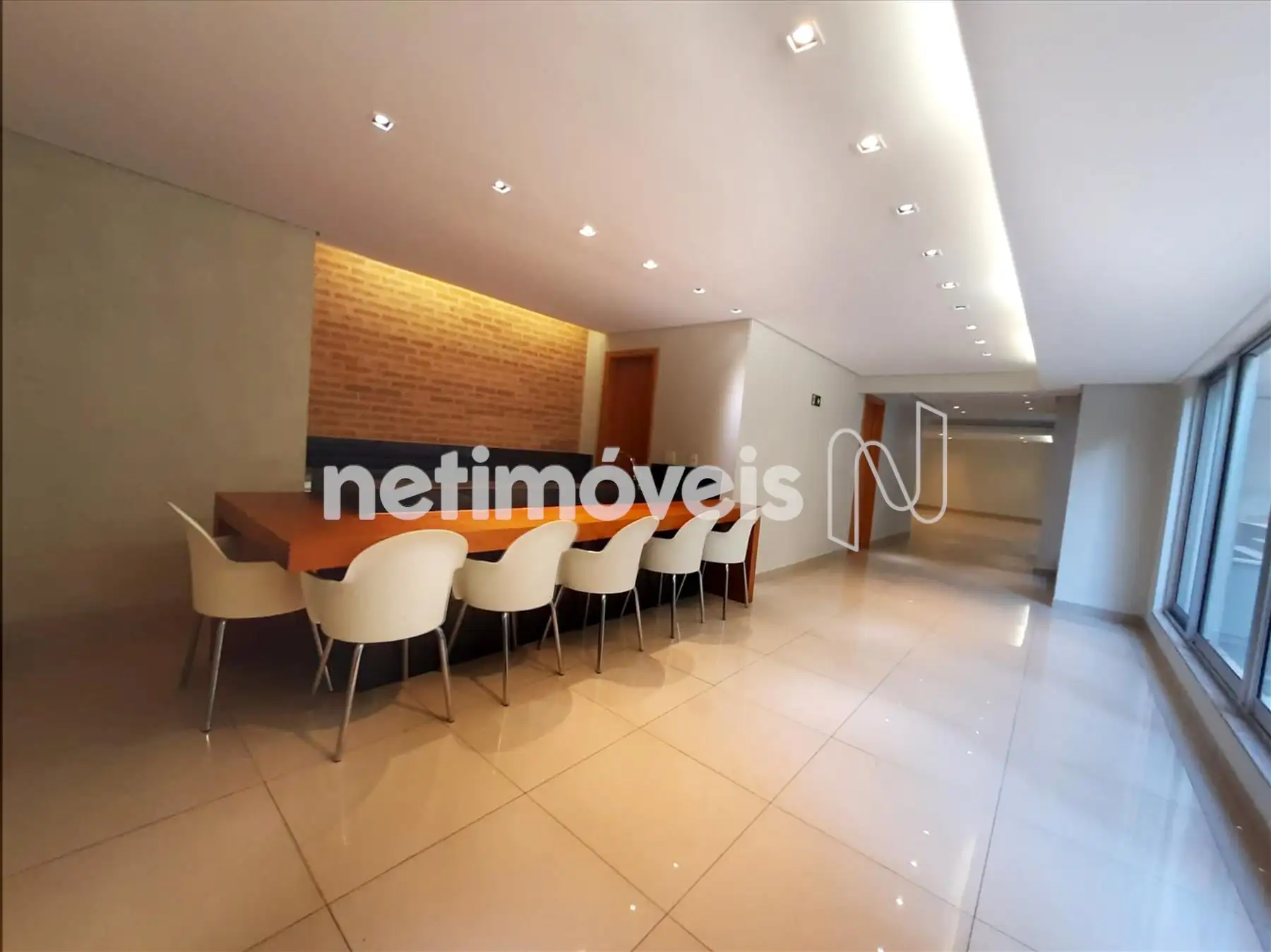 Salão de festas imenso, com projeto arquitetônico diferenciado, espaço gourmet com mesa e cozinha à disposição. Área externa com jardim e piscina com raia.