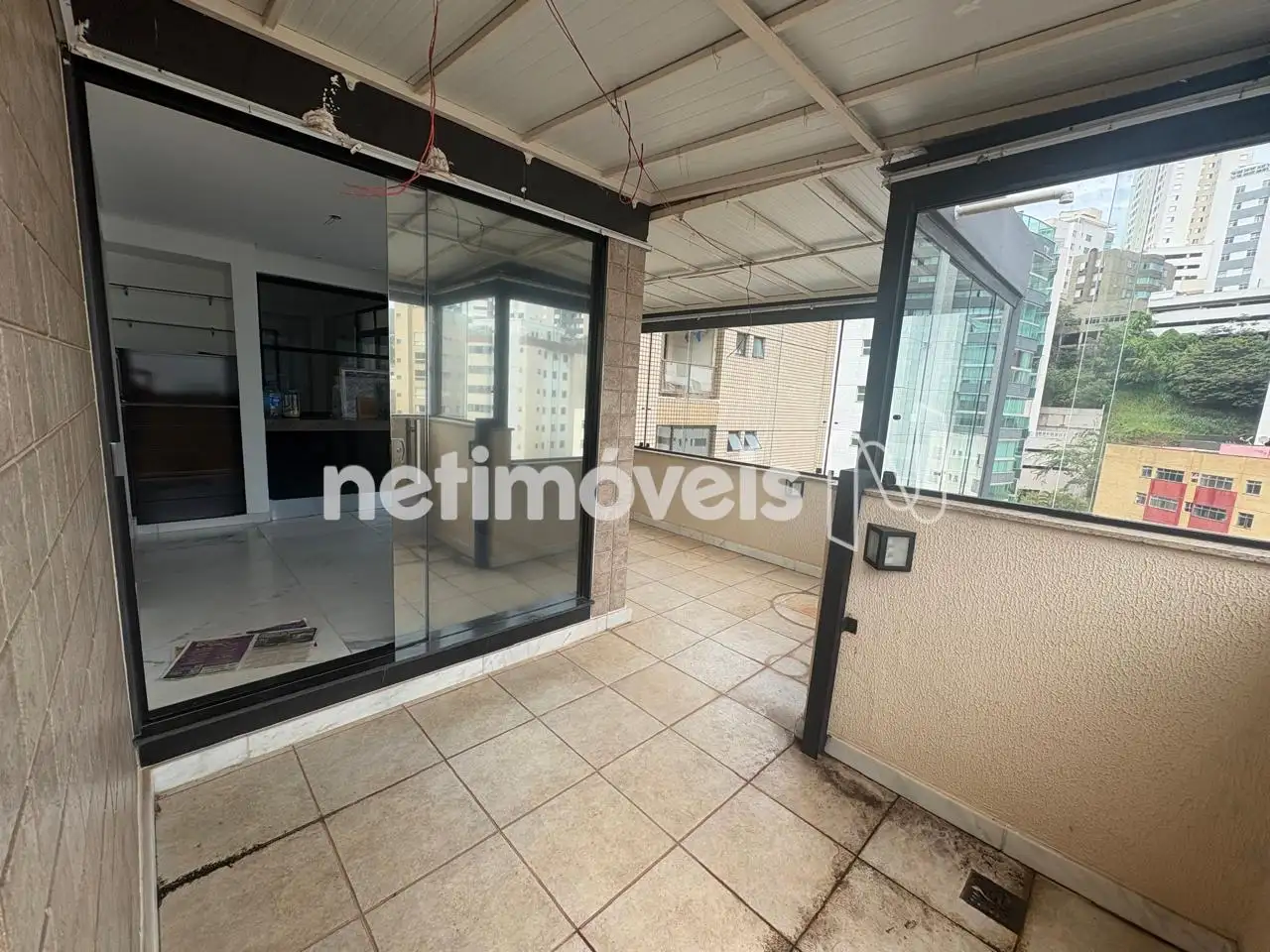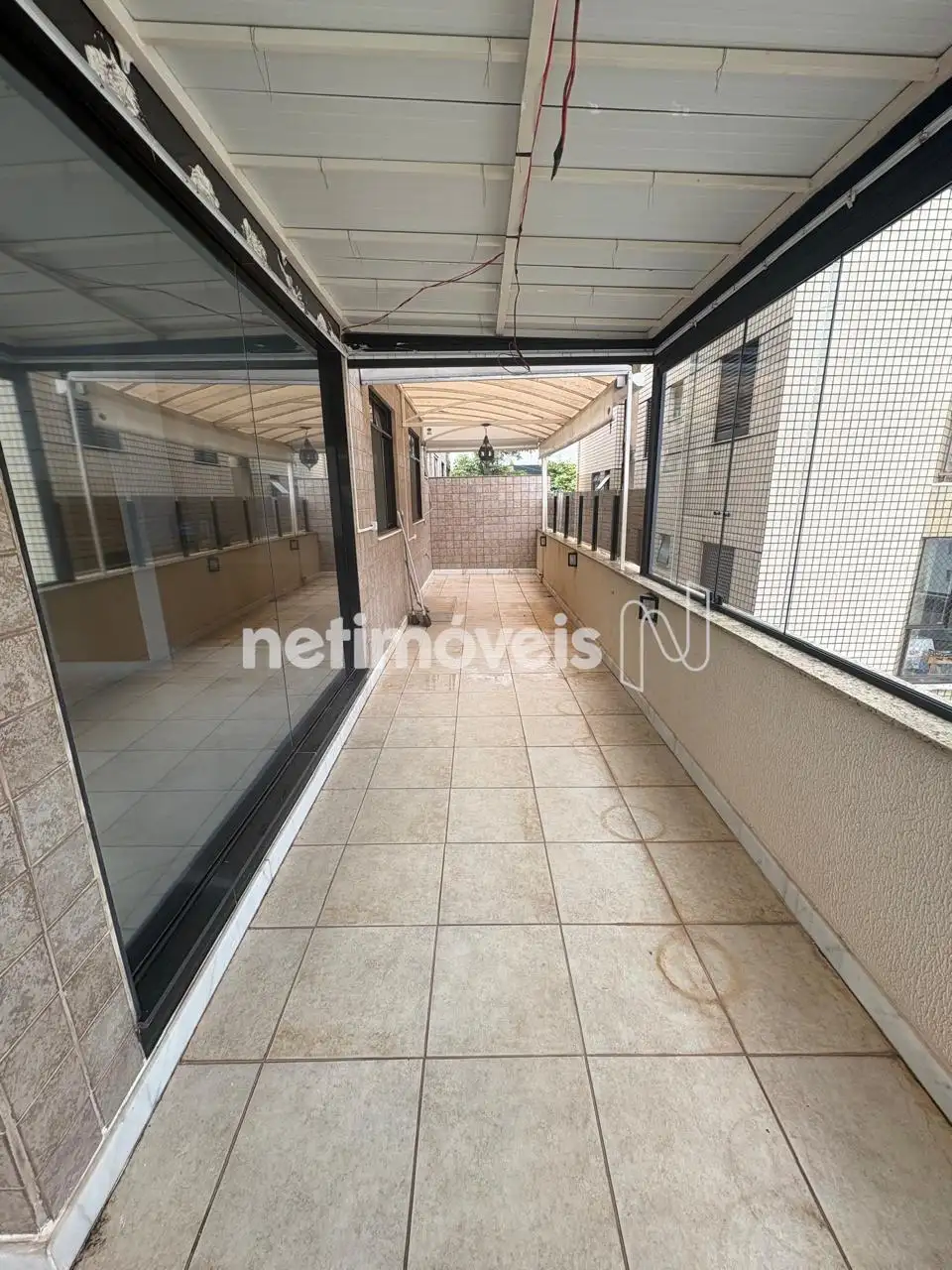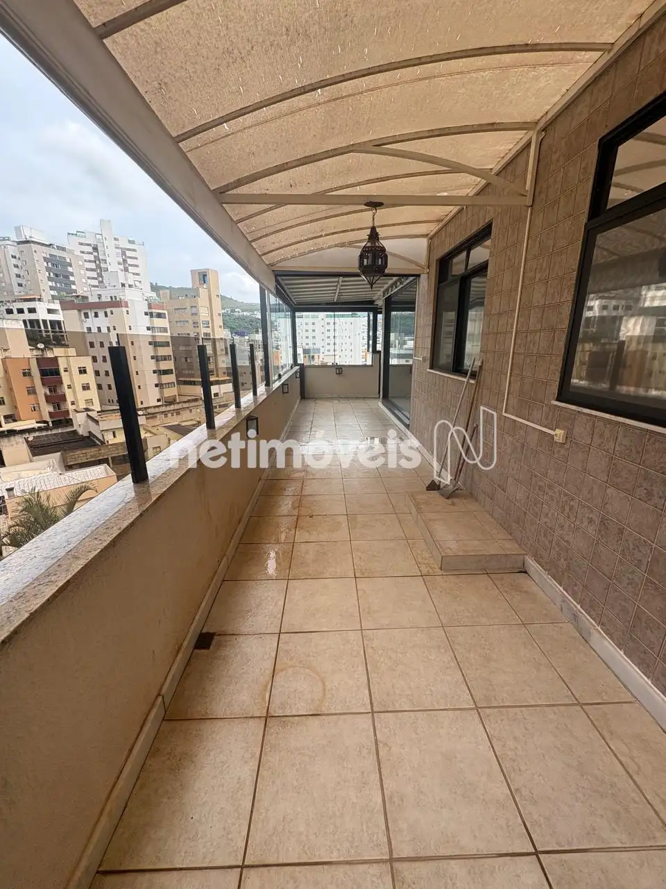 Ampla área privativa que contorna todo o apartamento, parte dela coberta e parte descoberta.