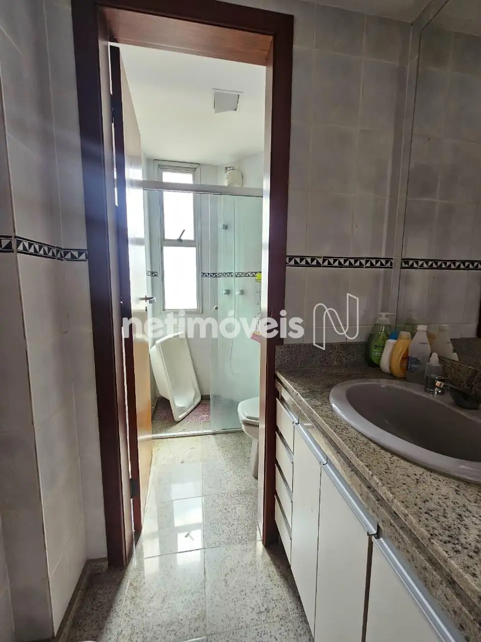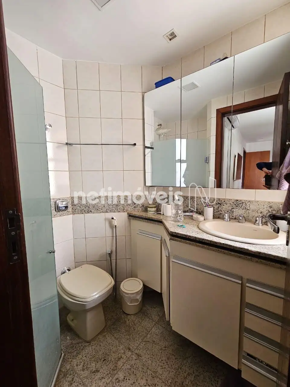 - Banheiro social com box blindex e armário.