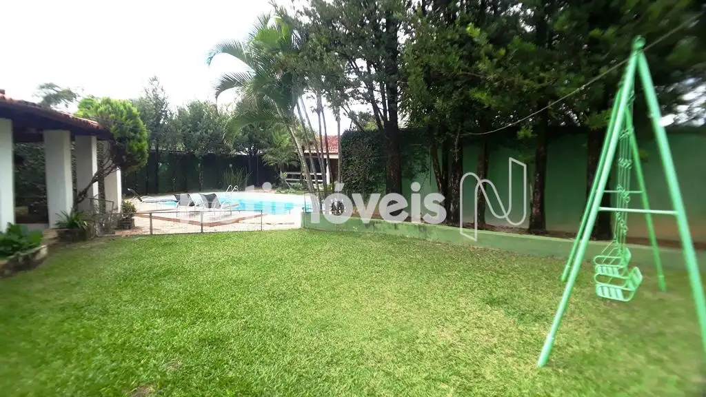 A área externa conta com varanda, piscina (5x15m), jardins impecáveis, aquecimento solar e sistema de segurança com câmeras, cerca elétrica e concertina. Segundo lote com espaço gourmet completo, edícula, quadra, pomar e horta. Garagem para até 12 carros. Estuda permuta.