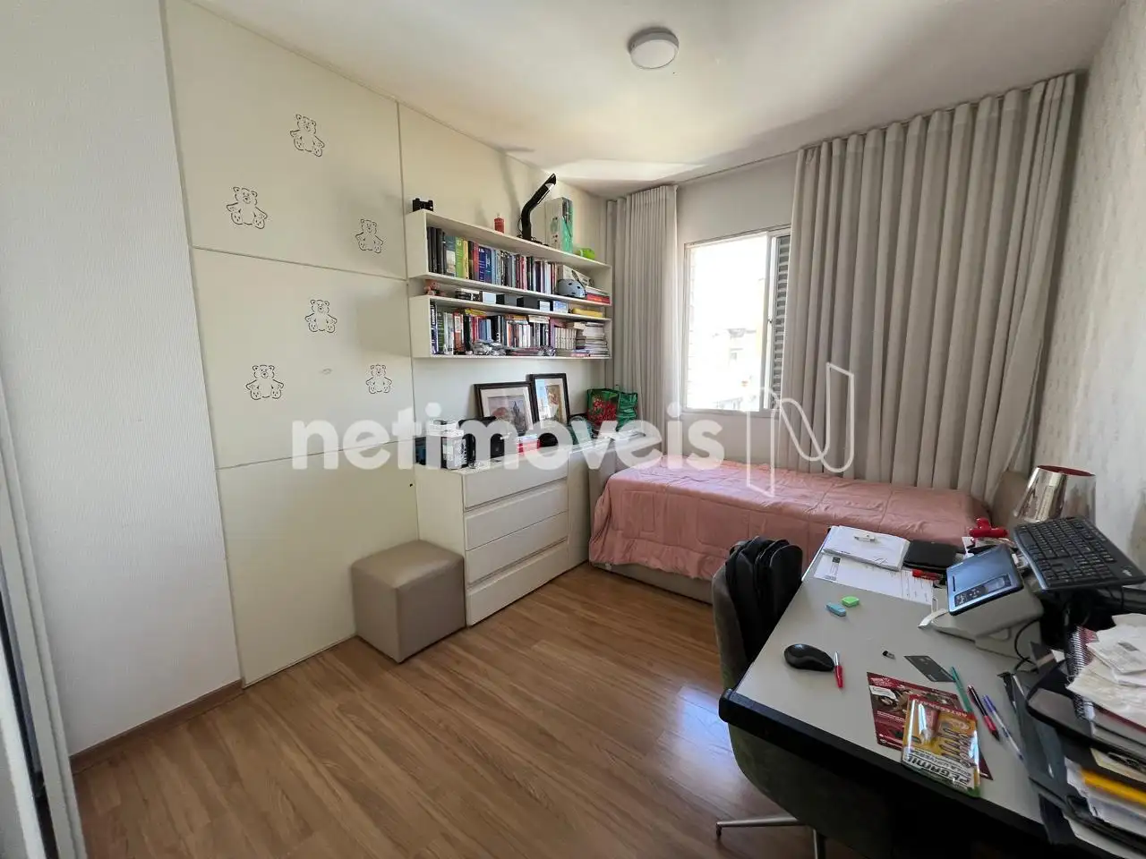 1°Piso: Sala dois ambientes com varanda, ante sala usada como escritório, 03 quartos com armários sendo 01 suíte, banho social e suíte com box armários e espelho, cozinha planejada com armários, área de serviço com DCE.