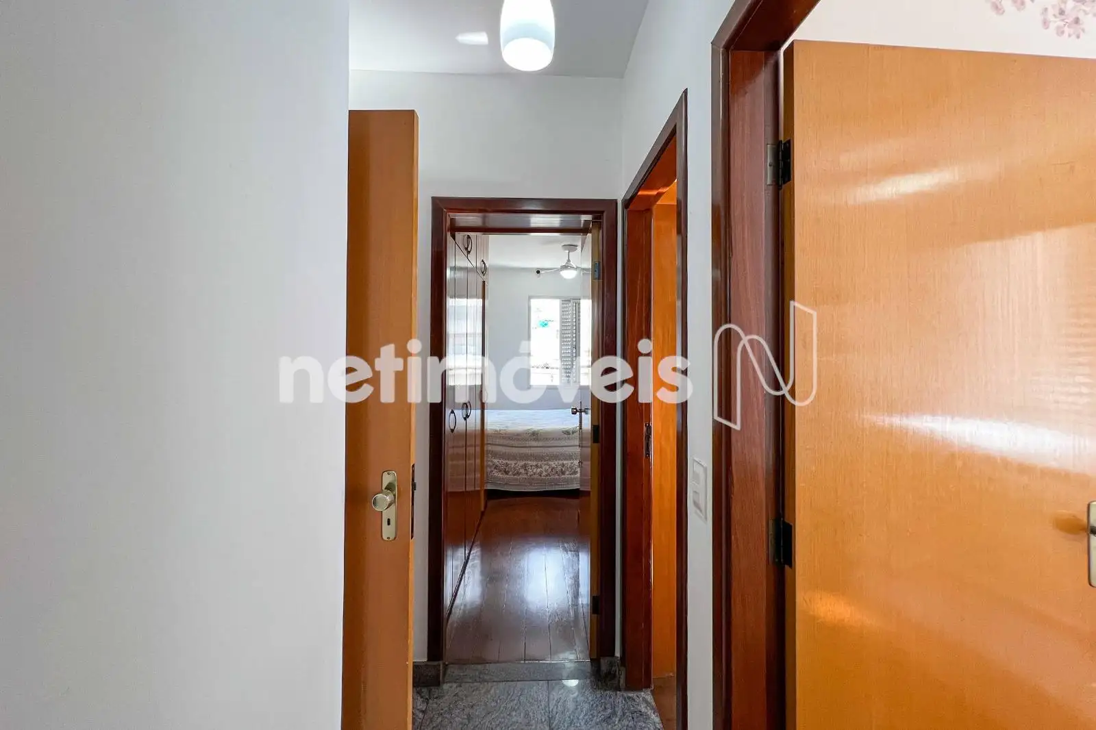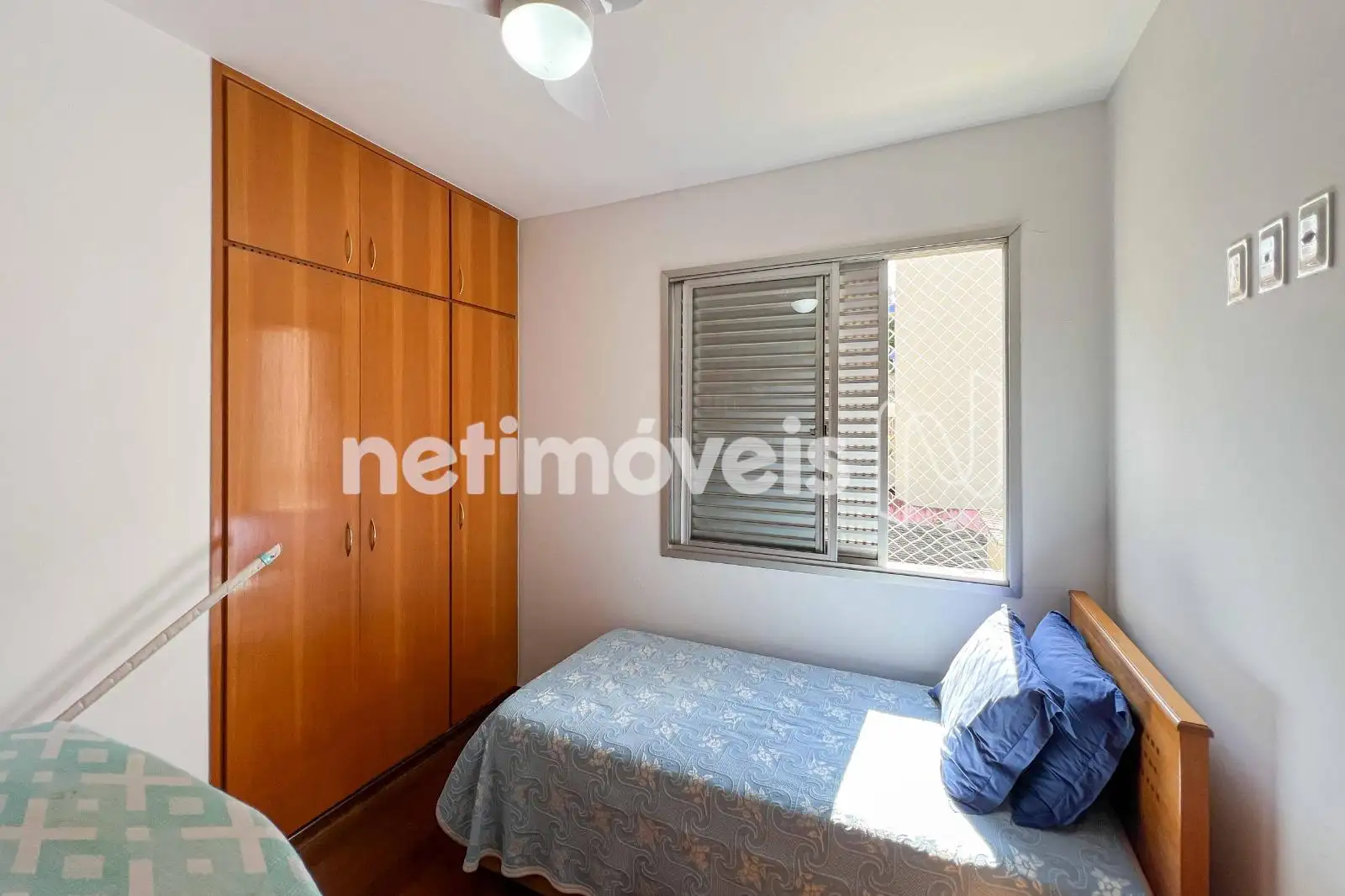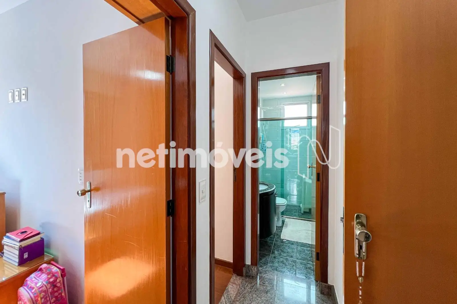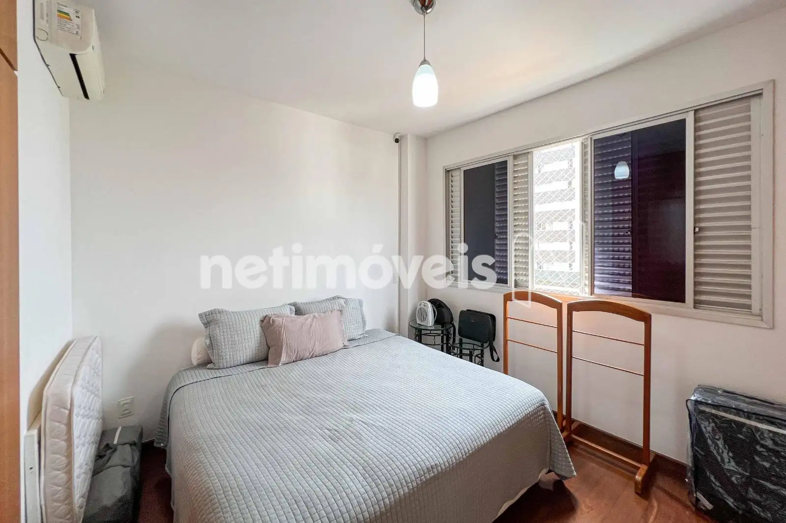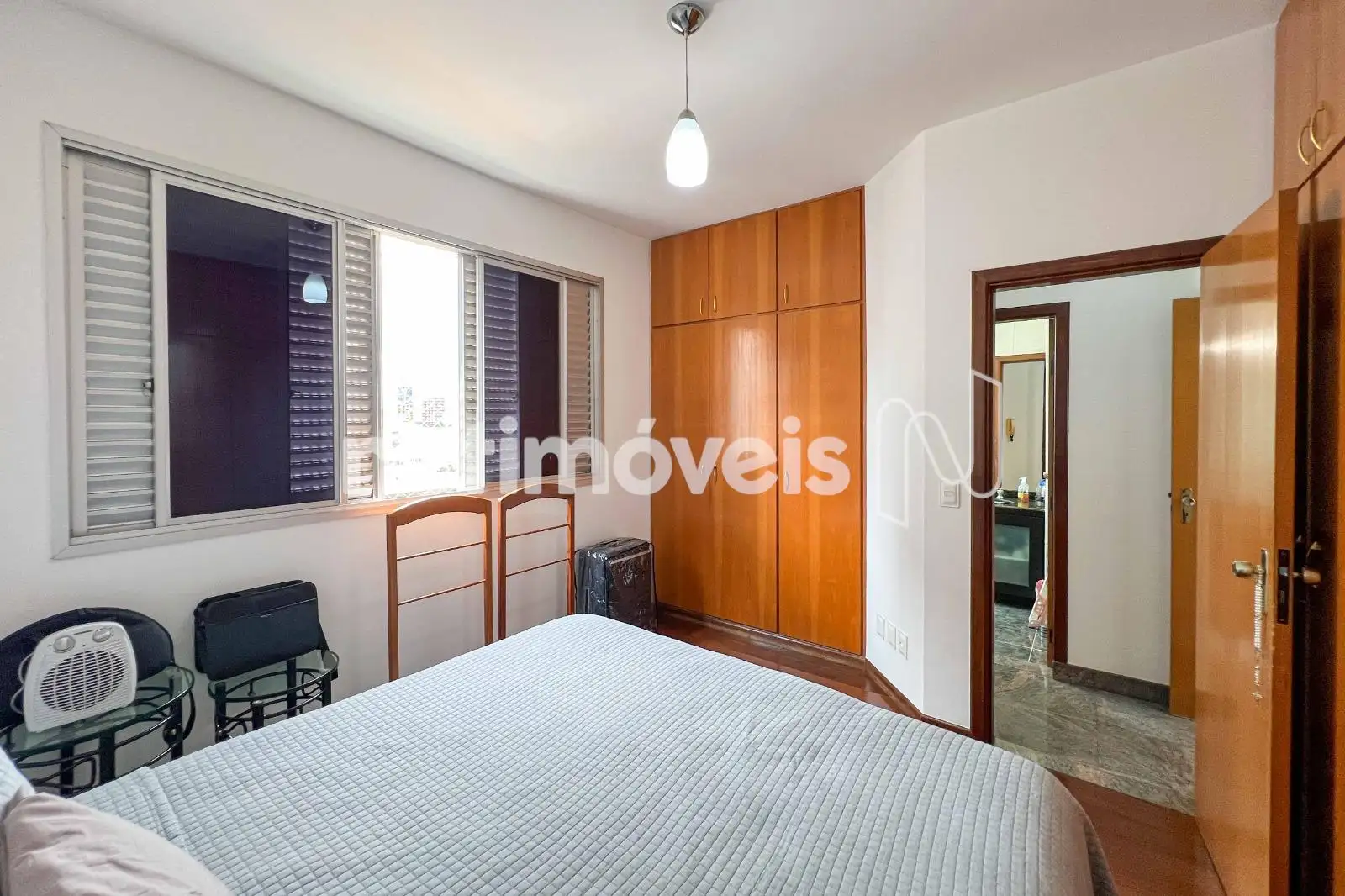 São 03 quartos com armários planejados, sendo 01 suíte. O banheiro social conta com bancada em granito e box em blindex. As janelas têm esquadrias de alumínio com venezianas.
