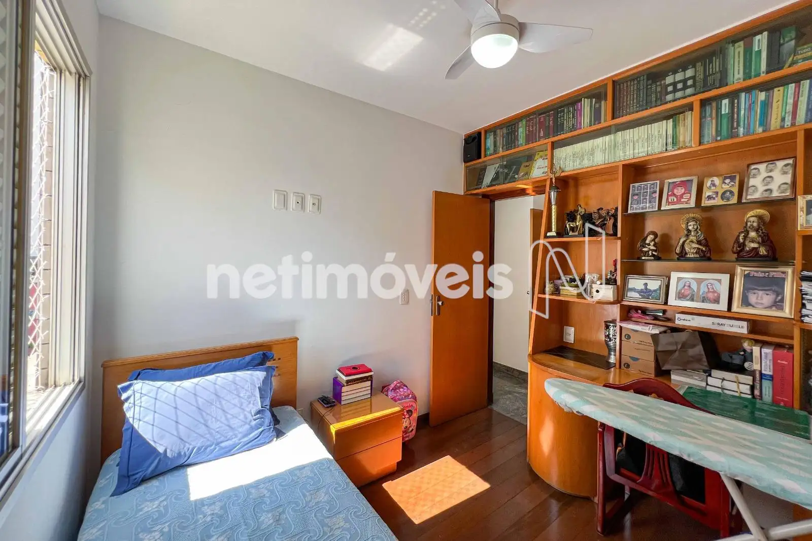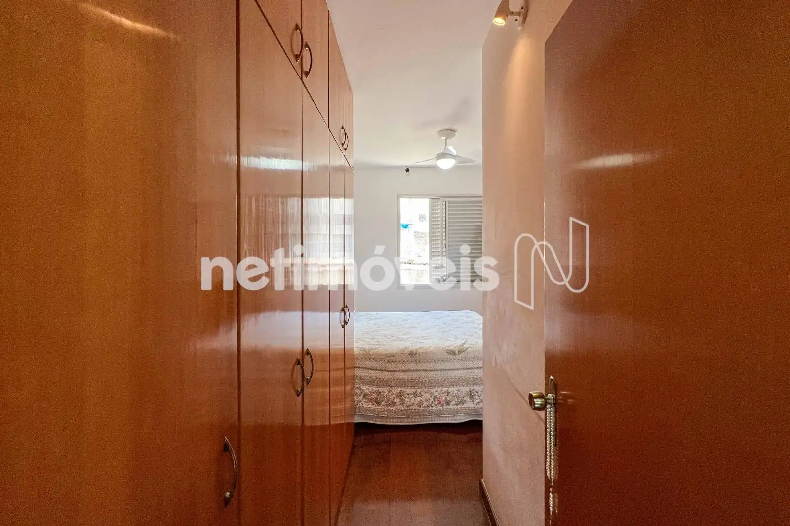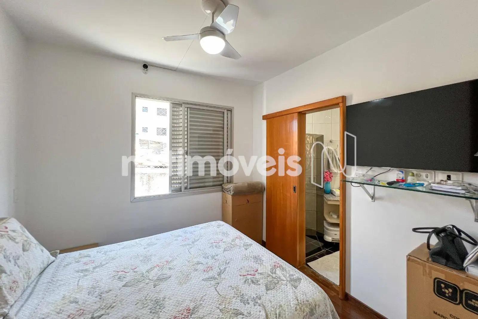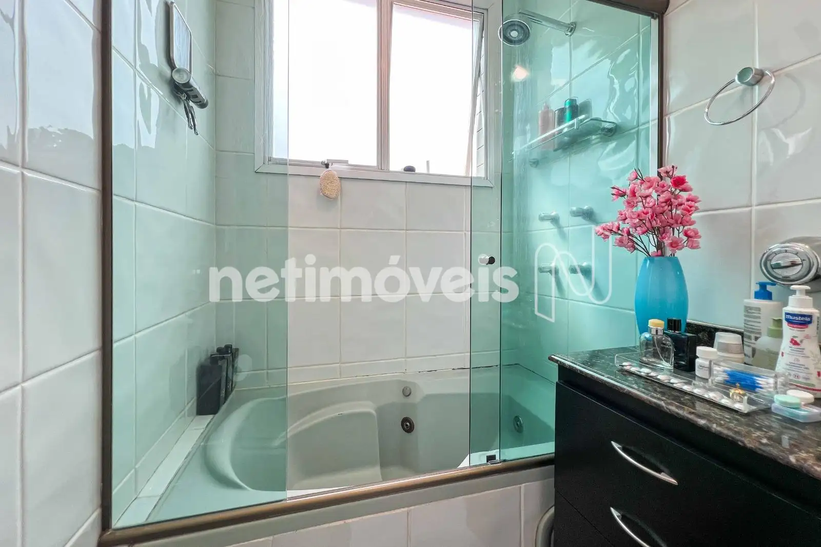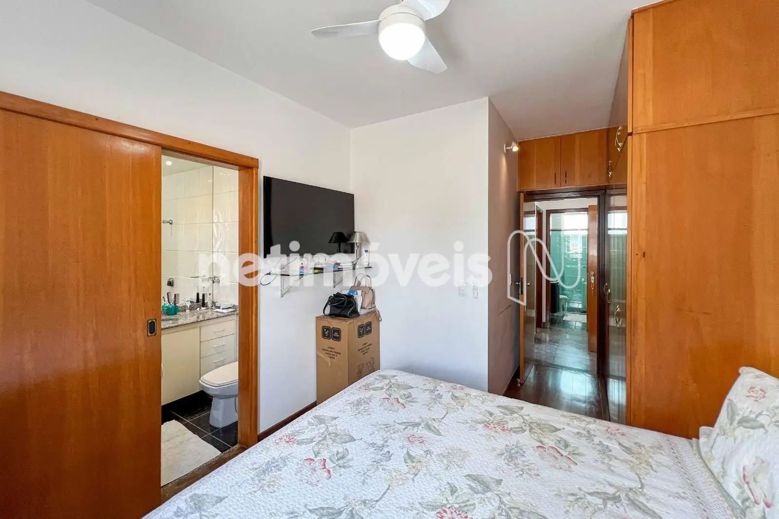 São 03 quartos com armários planejados, sendo 01 suíte. O banheiro social conta com bancada em granito e box em blindex. As janelas têm esquadrias de alumínio com venezianas.