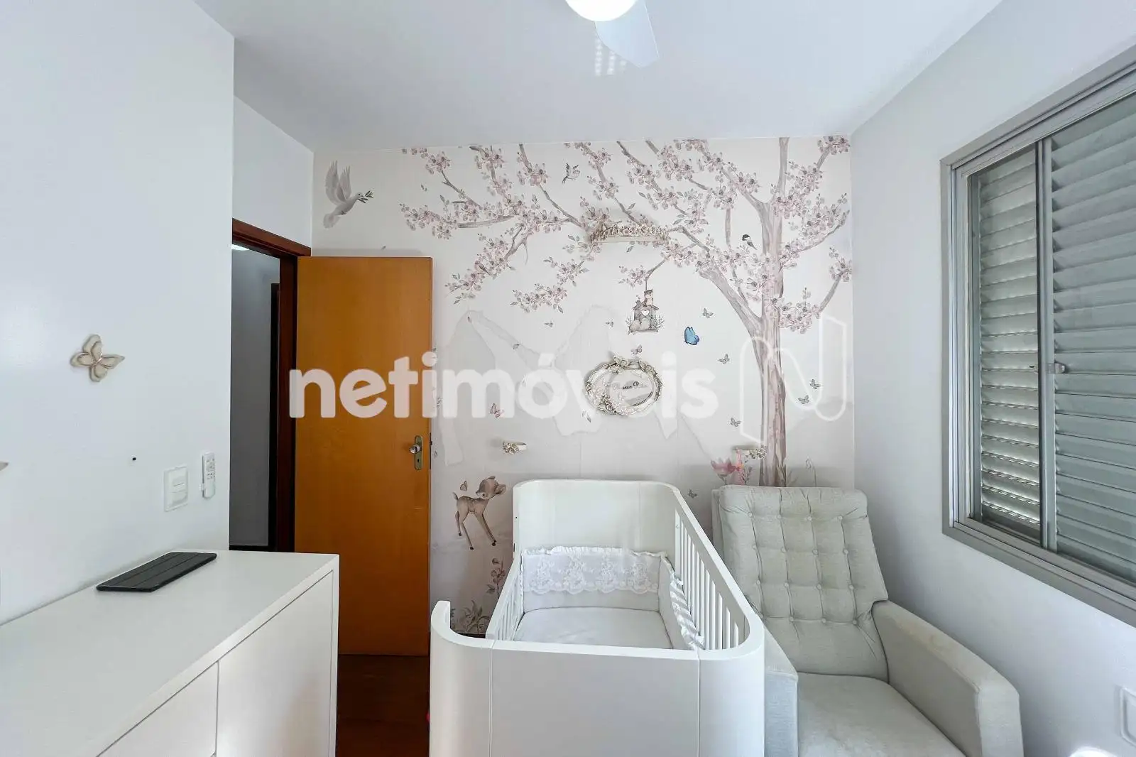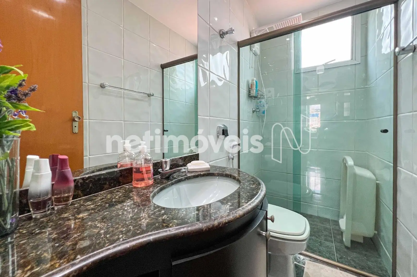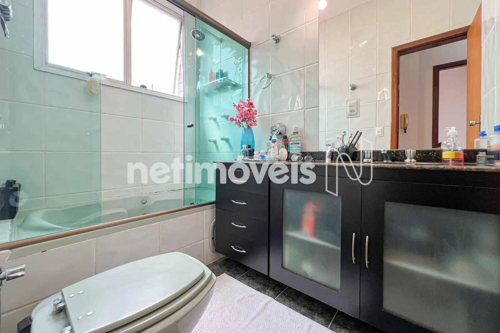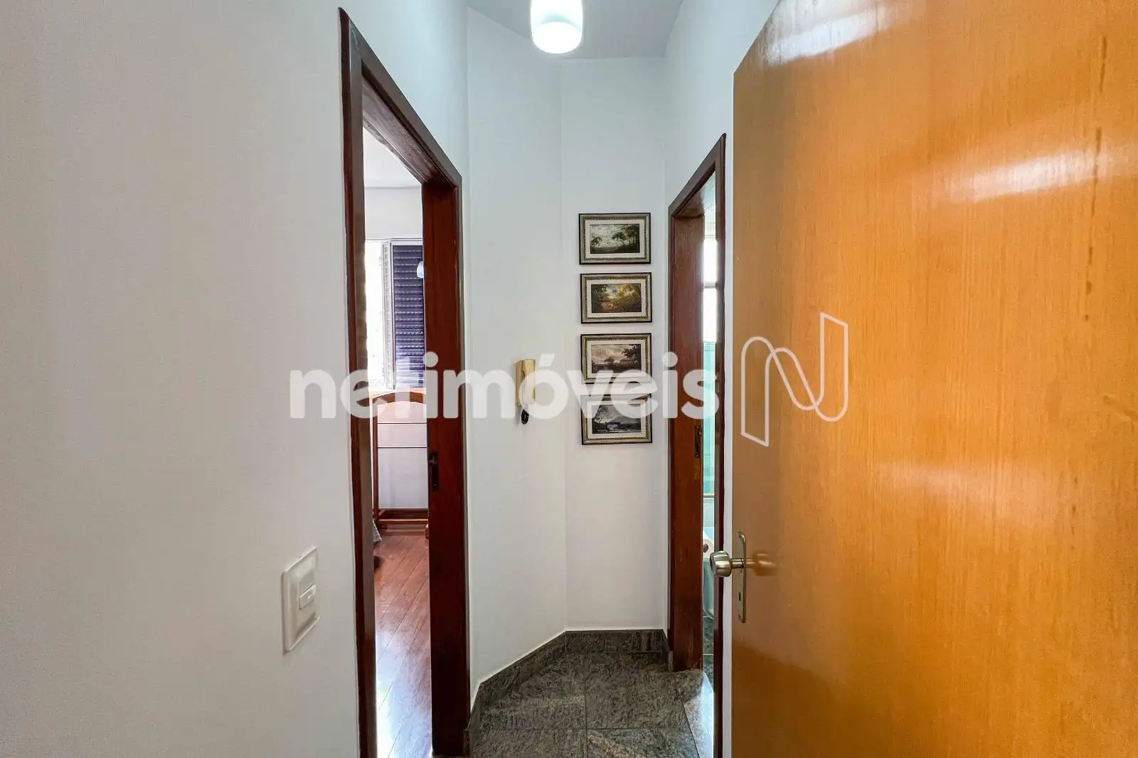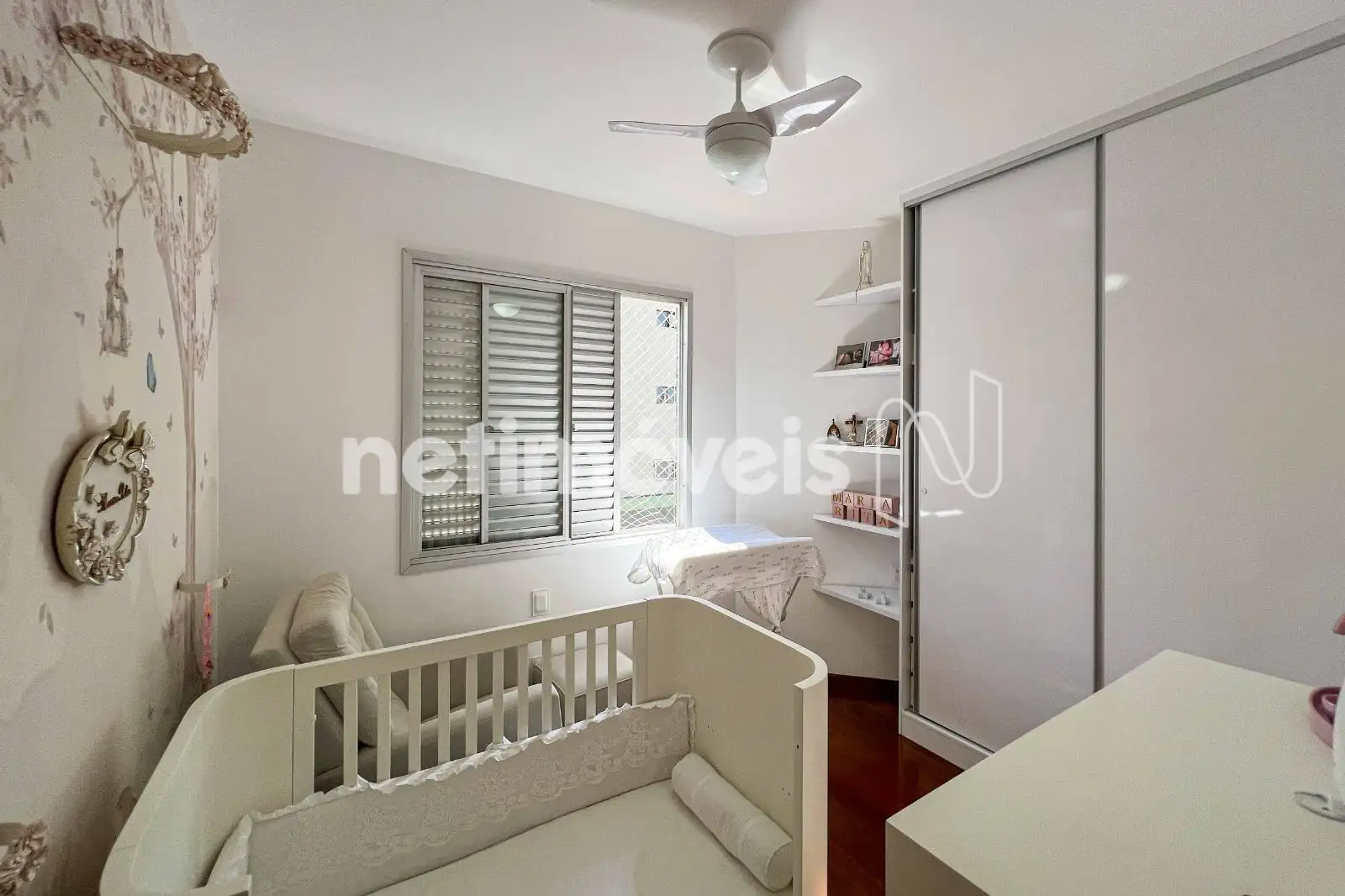 São 03 quartos com armários planejados, sendo 01 suíte. O banheiro social conta com bancada em granito e box em blindex. As janelas têm esquadrias de alumínio com venezianas.