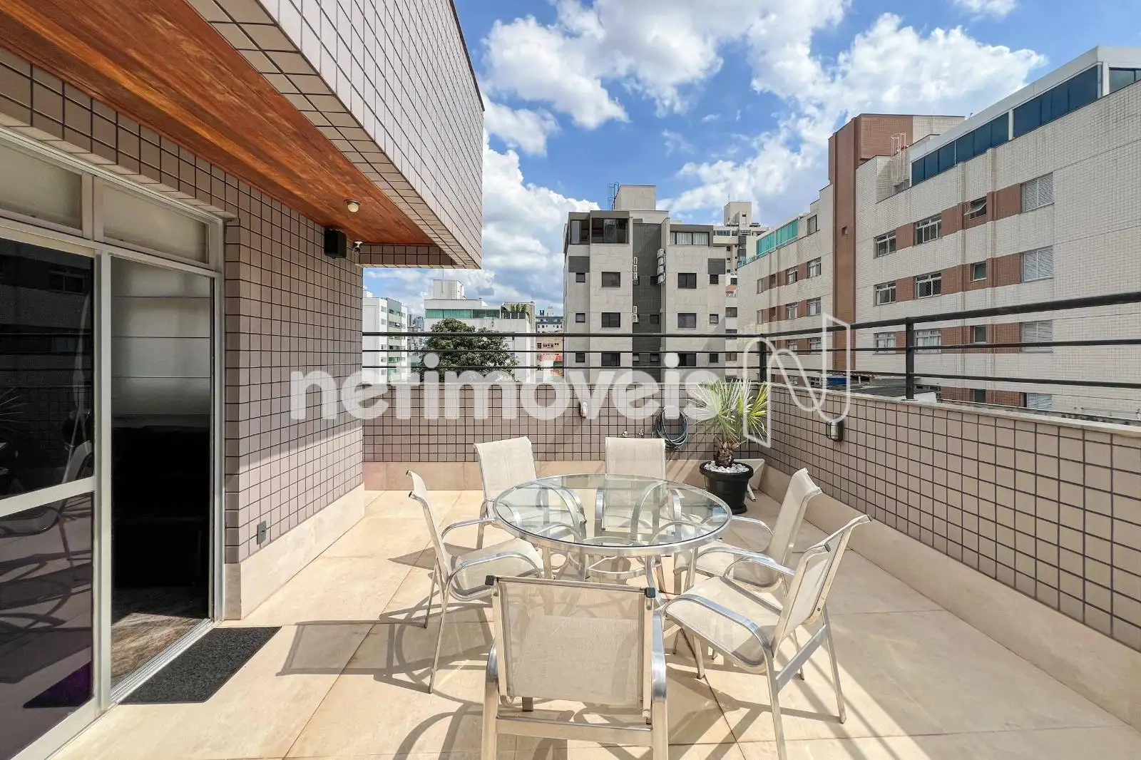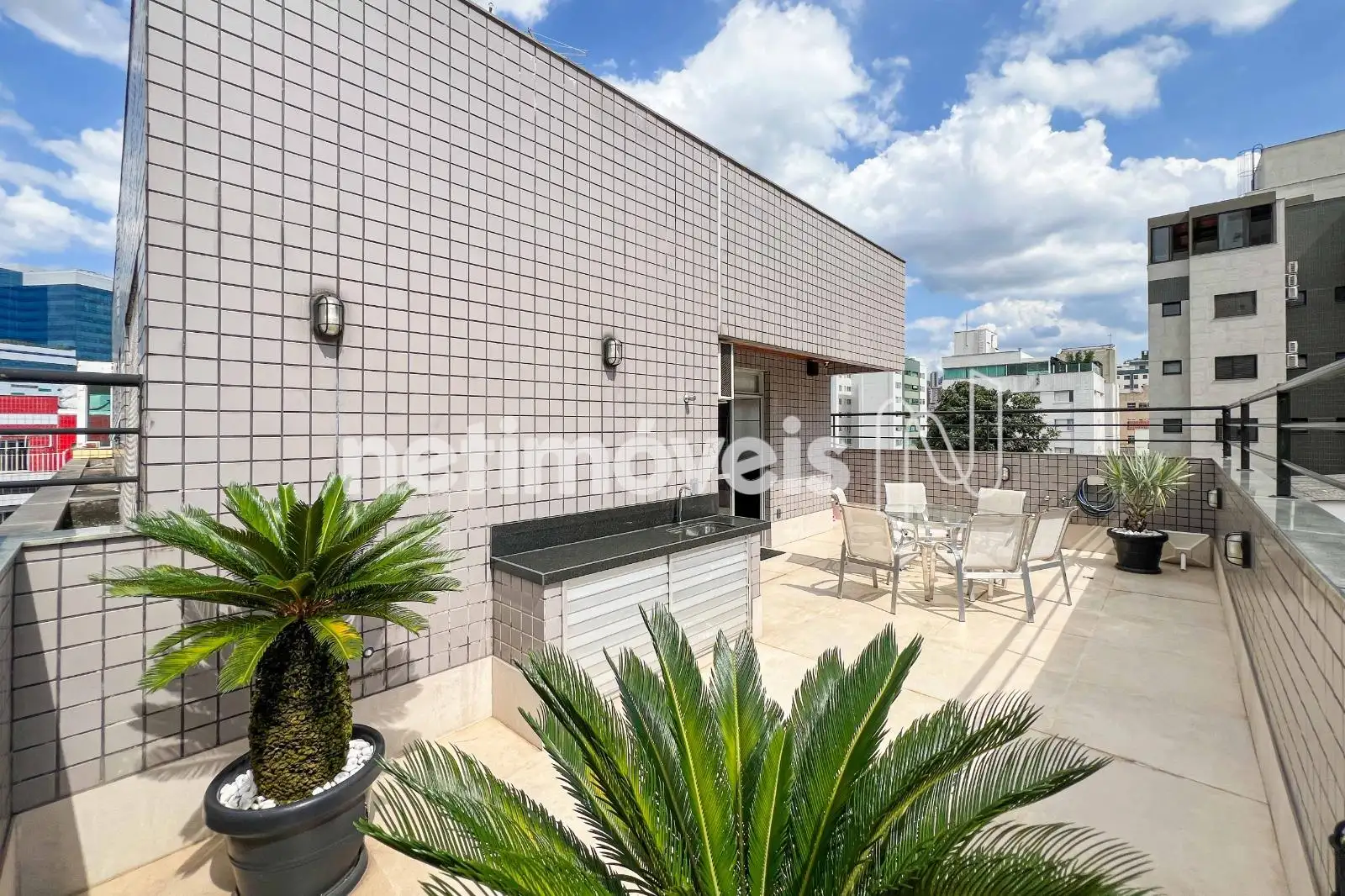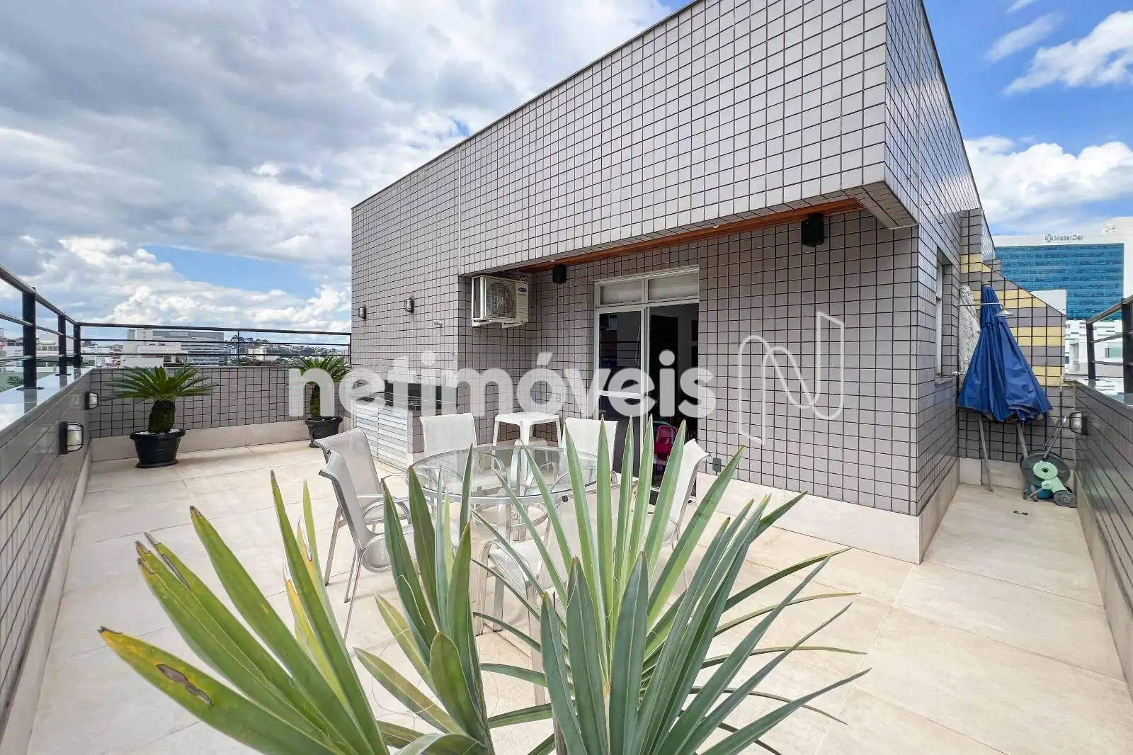 Cobertura com 165 m², quatro quartos e duas suítes, além de terraço amplo que complementa a área social do imóvel.