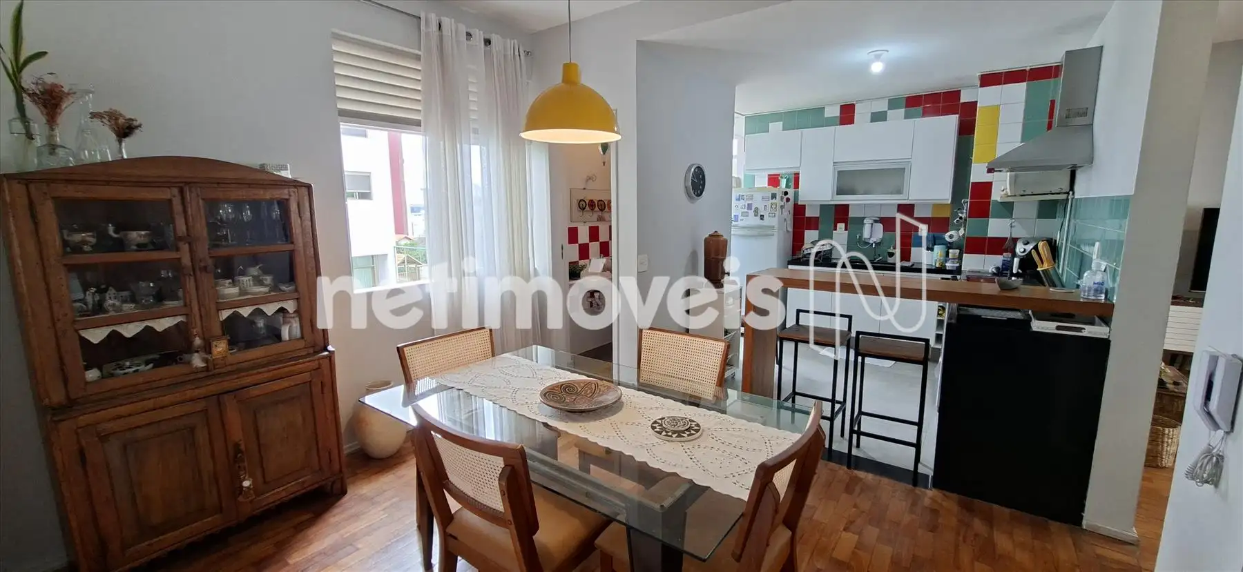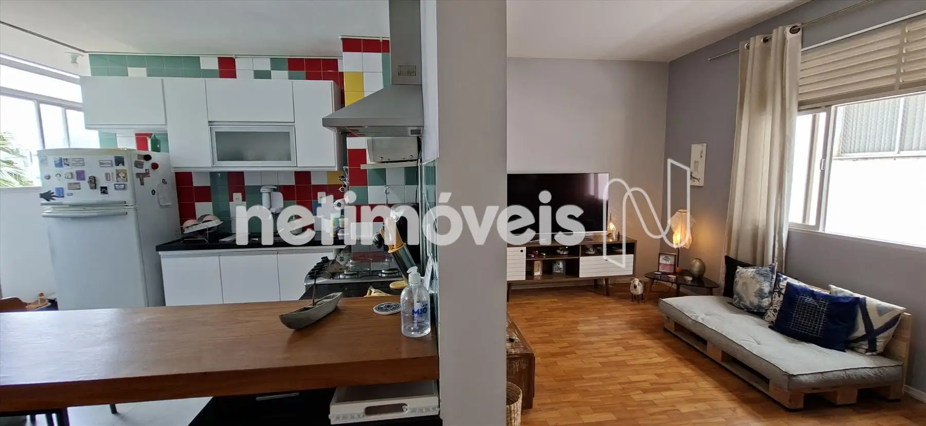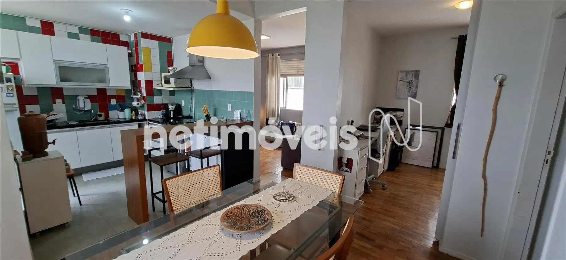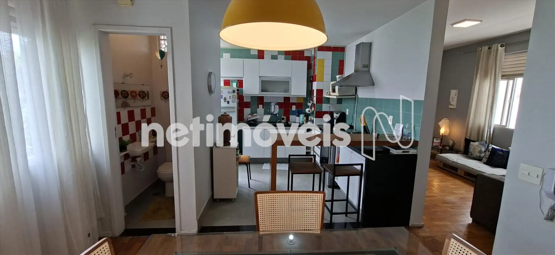 Sala ampla e iluminada, com piso em tacos. Copa com bancada aberta para a cozinha, super bem reformado e com lavabo.