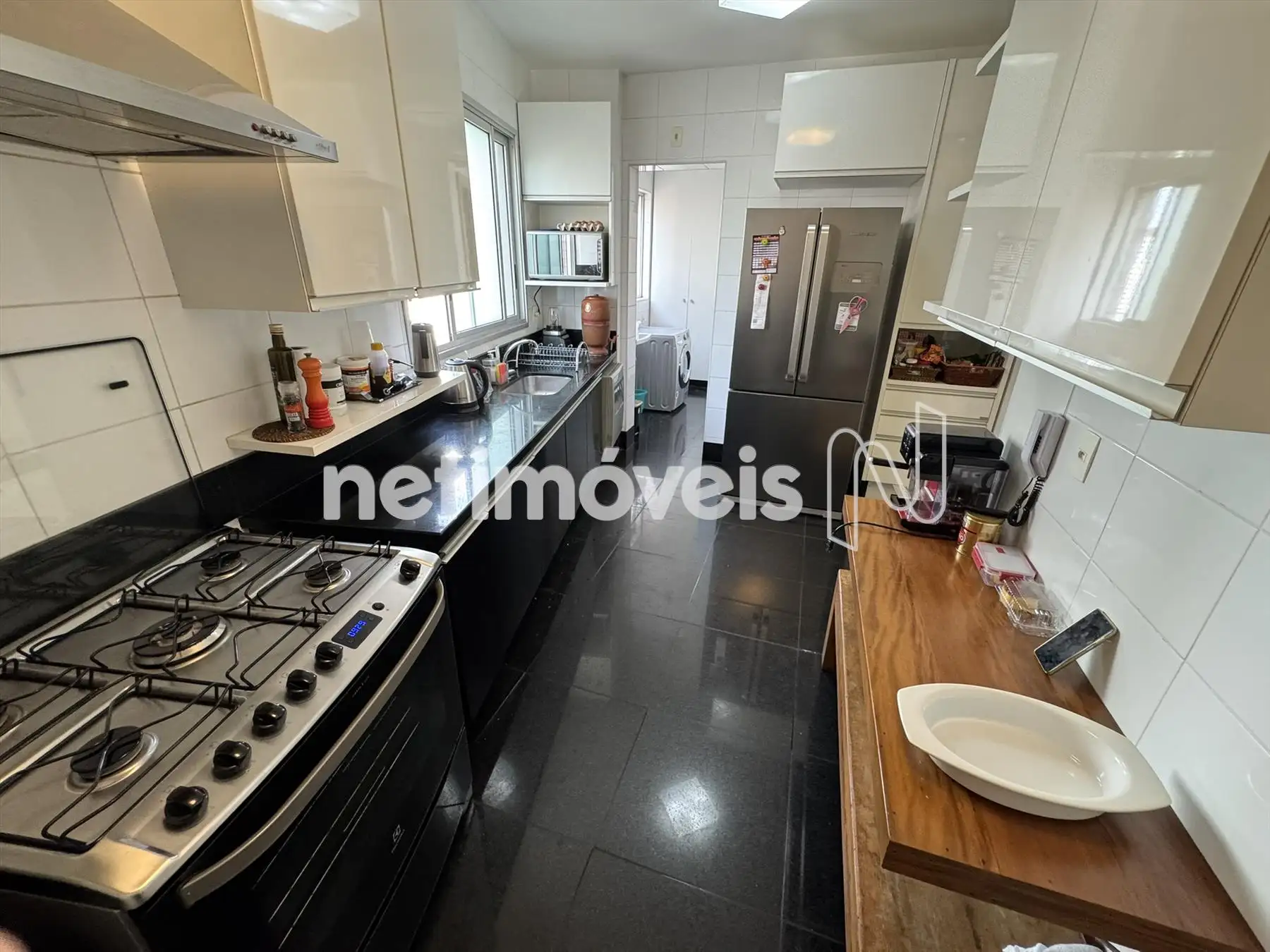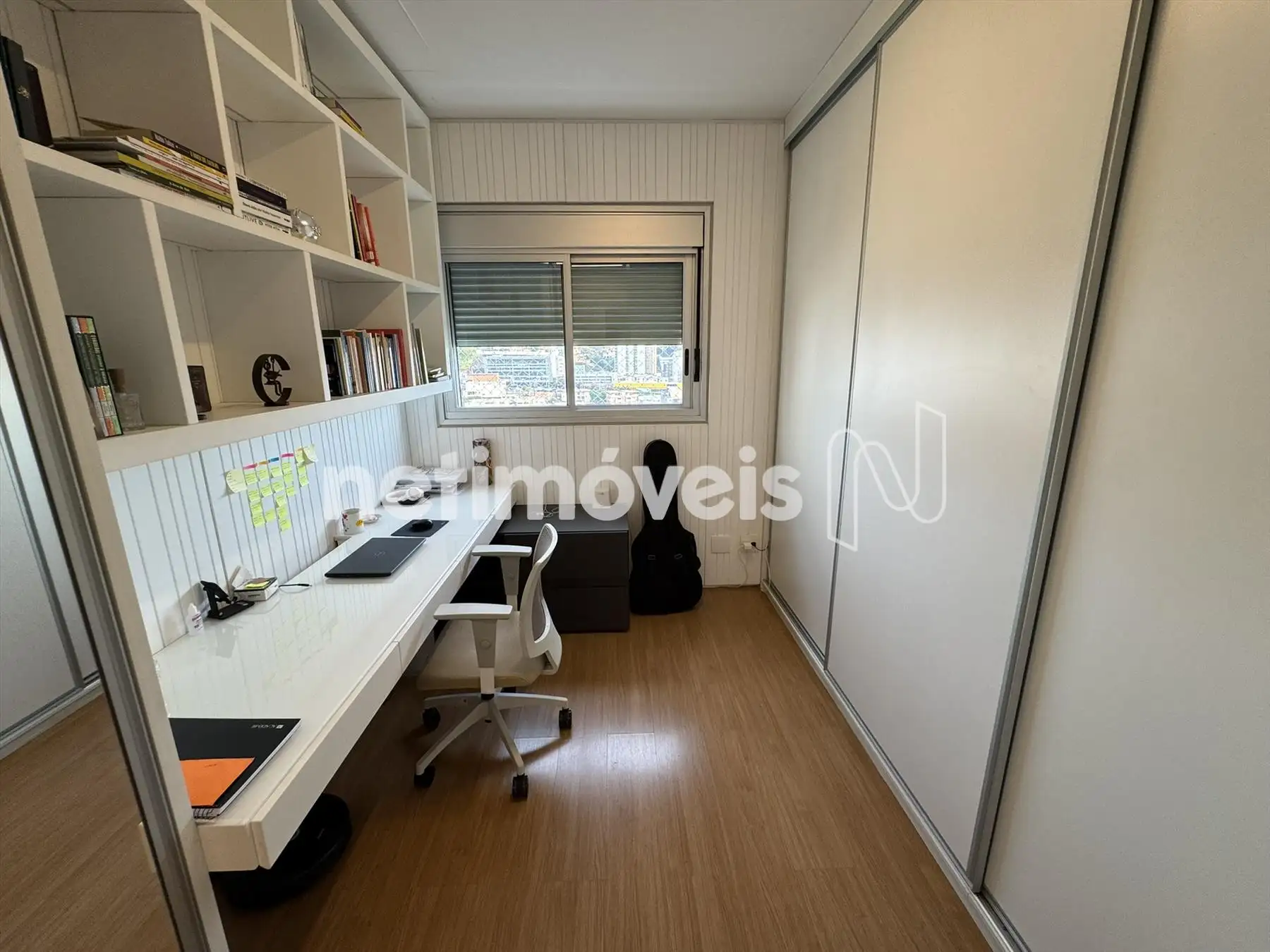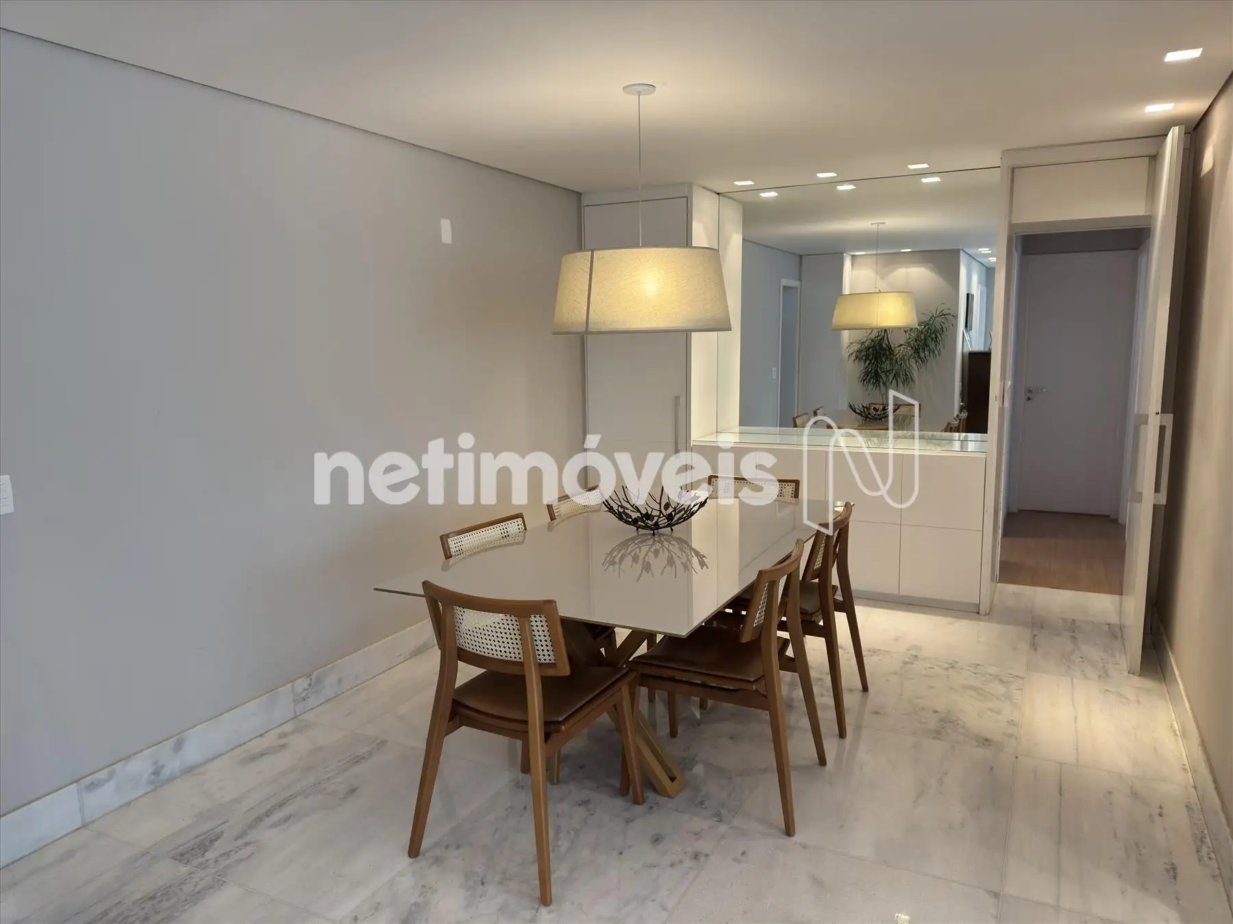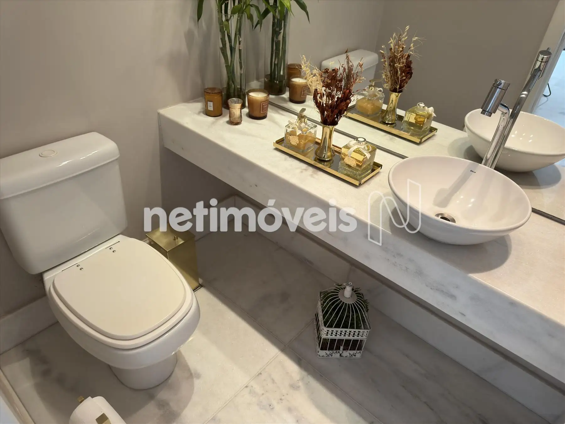 Salão em mármore para 3 ambientes amplos com varanda integrada e lavabo. Cozinha com armários, área de serviço com despensa e banheiro de serviço. Área de circulação com rouparia. A planta original do apartamento tem 2 suítes e 2 semi-suítes. Os proprietários integraram um quarto da semi-suíte ao quarto da suíte master (como closet e escritório) e o apartamento atualmente possui 3 suítes. Todas as suítes com armários e ar condicionado.