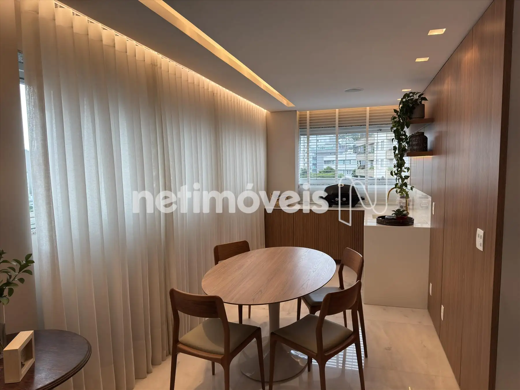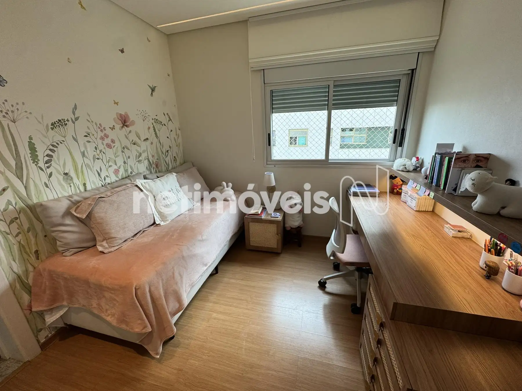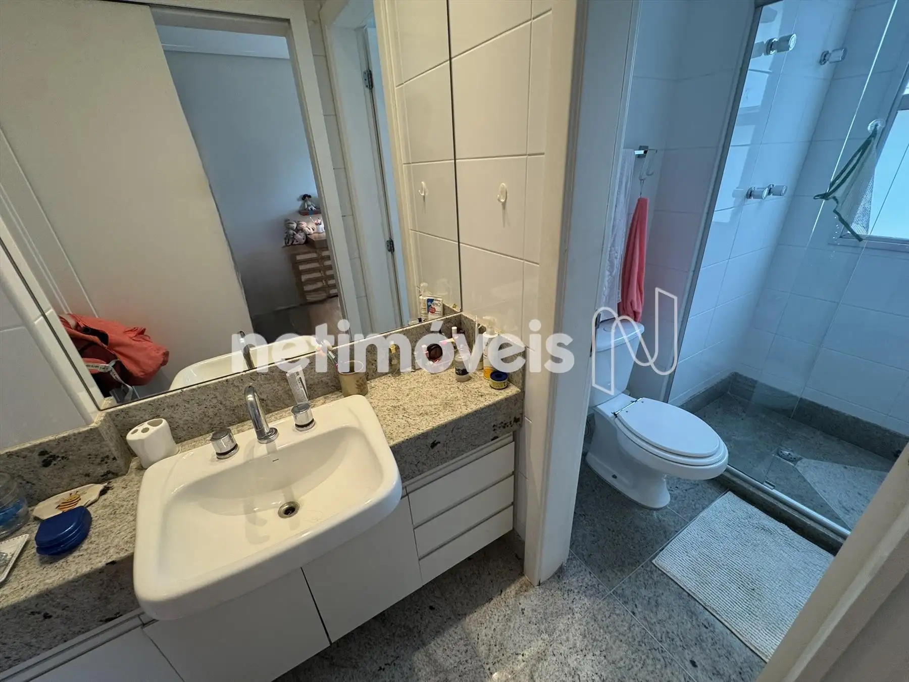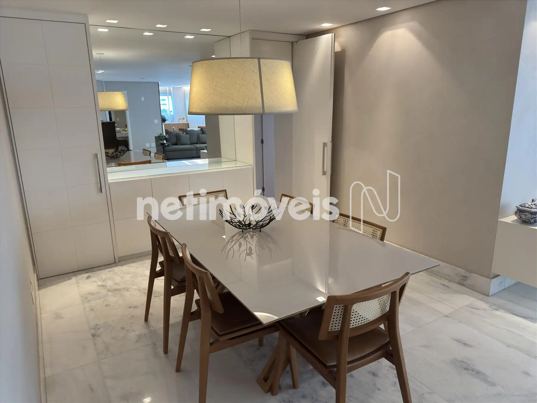 Salão em mármore para 3 ambientes amplos com varanda integrada e lavabo. Cozinha com armários, área de serviço com despensa e banheiro de serviço. Área de circulação com rouparia. A planta original do apartamento tem 2 suítes e 2 semi-suítes. Os proprietários integraram um quarto da semi-suíte ao quarto da suíte master (como closet e escritório) e o apartamento atualmente possui 3 suítes. Todas as suítes com armários e ar condicionado.