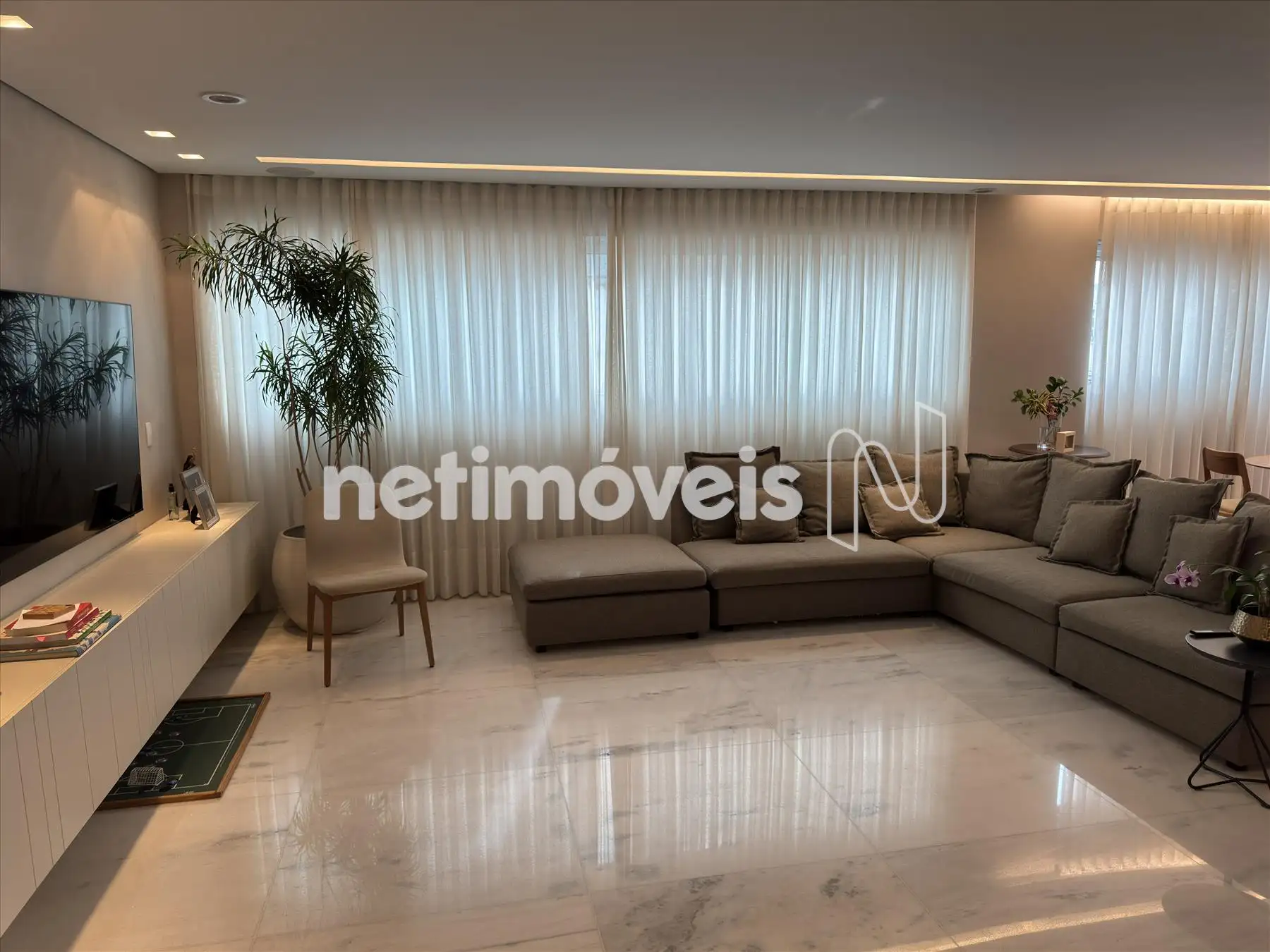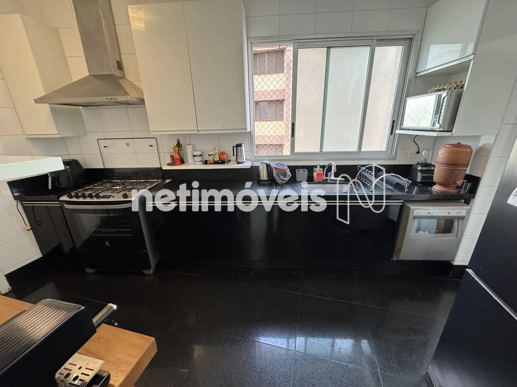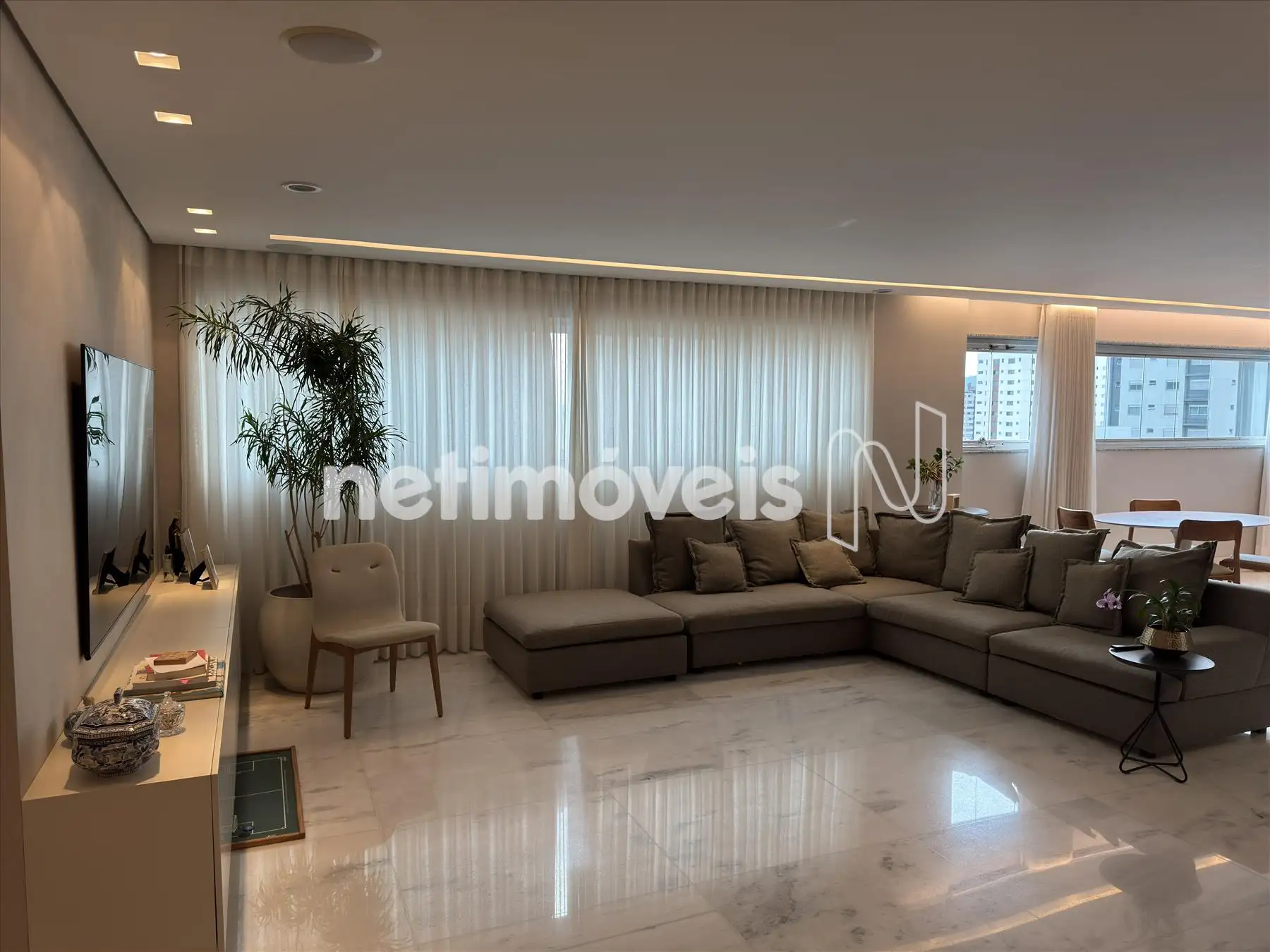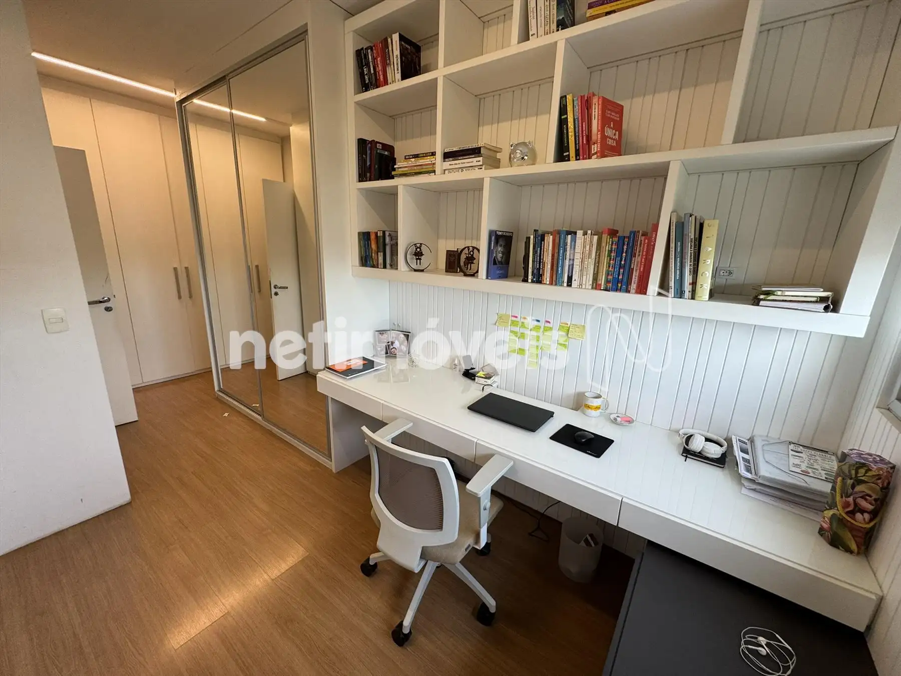 Salão em mármore para 3 ambientes amplos com varanda integrada e lavabo. Cozinha com armários, área de serviço com despensa e banheiro de serviço. Área de circulação com rouparia. A planta original do apartamento tem 2 suítes e 2 semi-suítes. Os proprietários integraram um quarto da semi-suíte ao quarto da suíte master (como closet e escritório) e o apartamento atualmente possui 3 suítes. Todas as suítes com armários e ar condicionado.