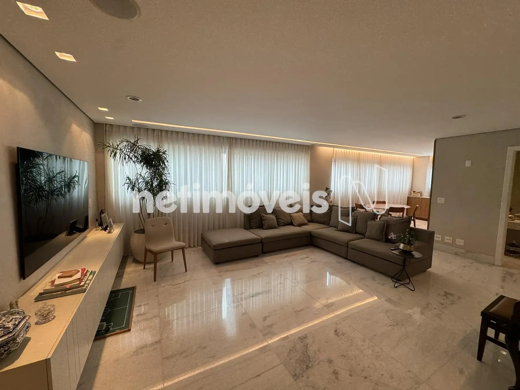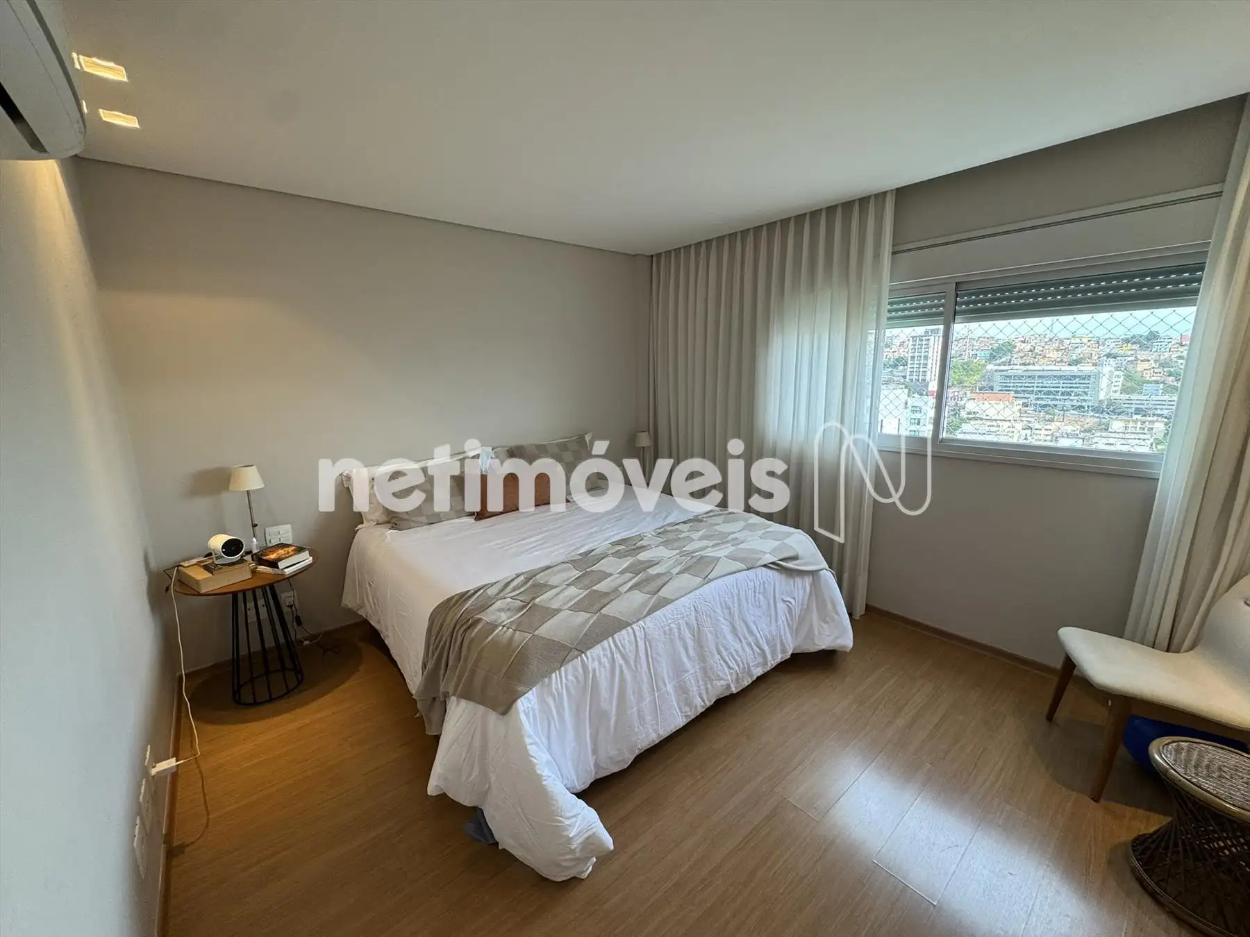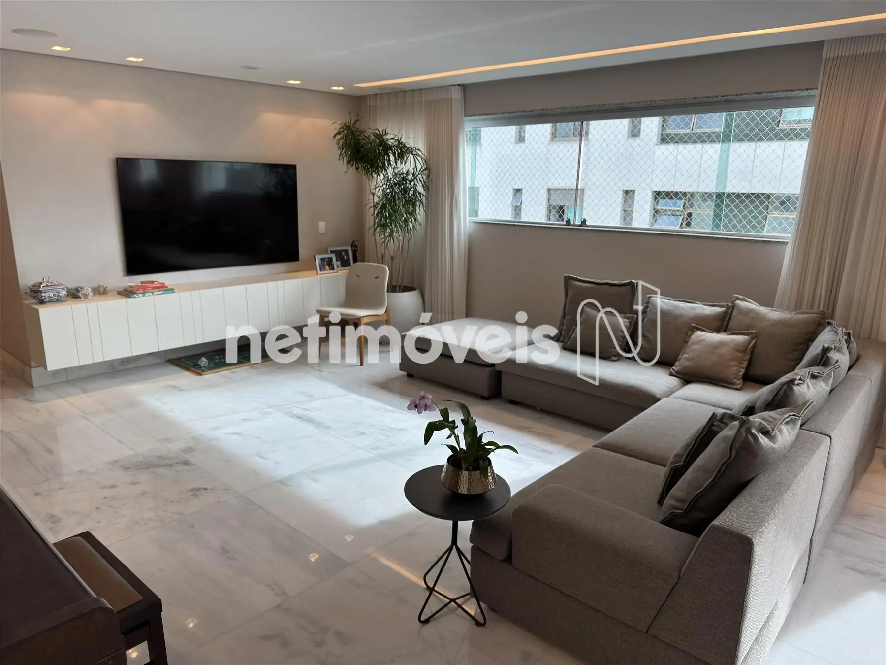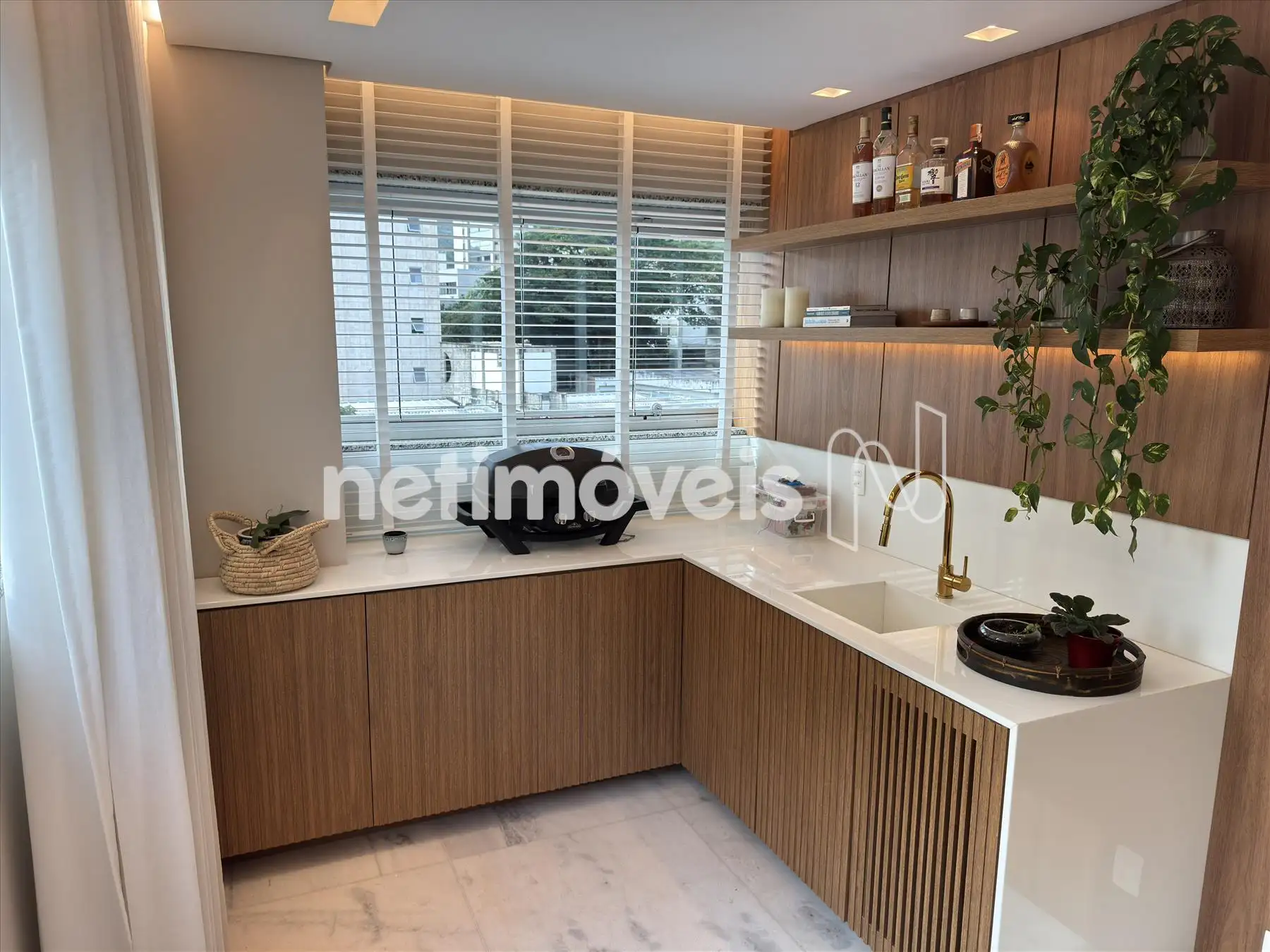 Salão em mármore para 3 ambientes amplos com varanda integrada e lavabo. Cozinha com armários, área de serviço com despensa e banheiro de serviço. Área de circulação com rouparia. A planta original do apartamento tem 2 suítes e 2 semi-suítes. Os proprietários integraram um quarto da semi-suíte ao quarto da suíte master (como closet e escritório) e o apartamento atualmente possui 3 suítes. Todas as suítes com armários e ar condicionado.
