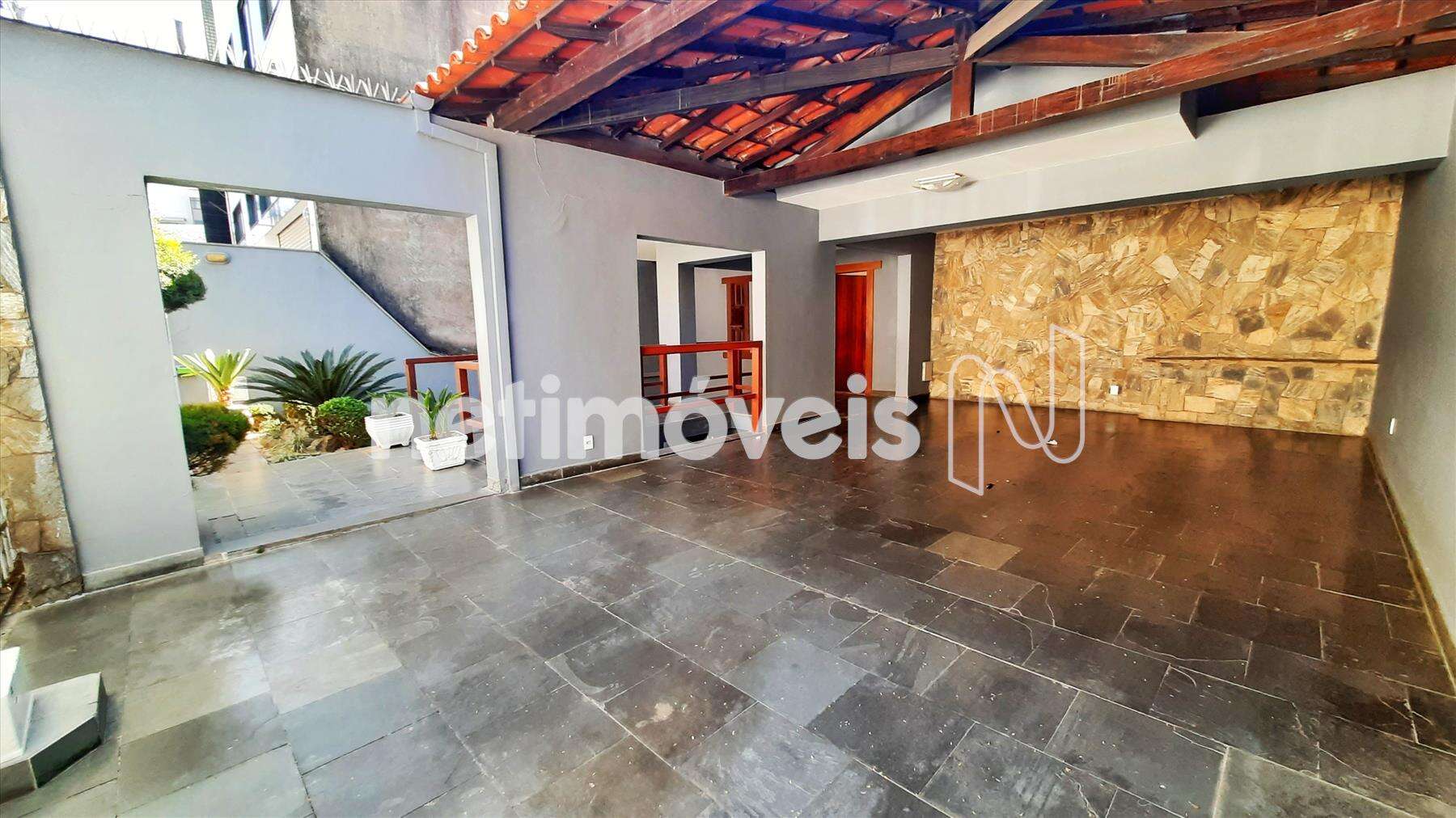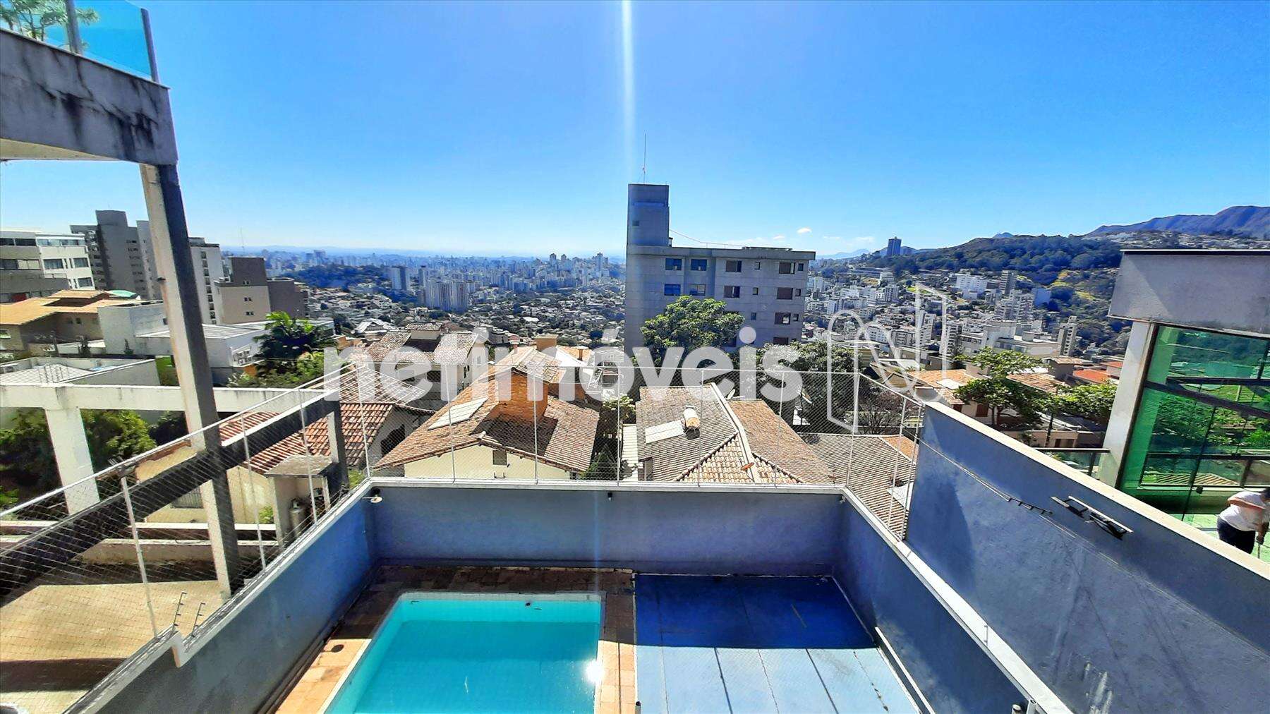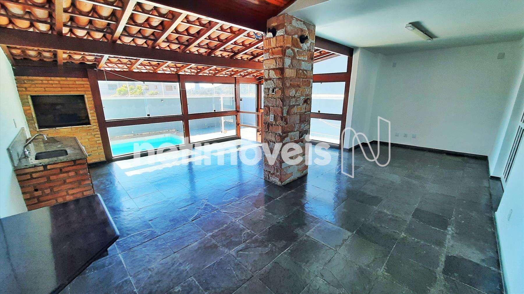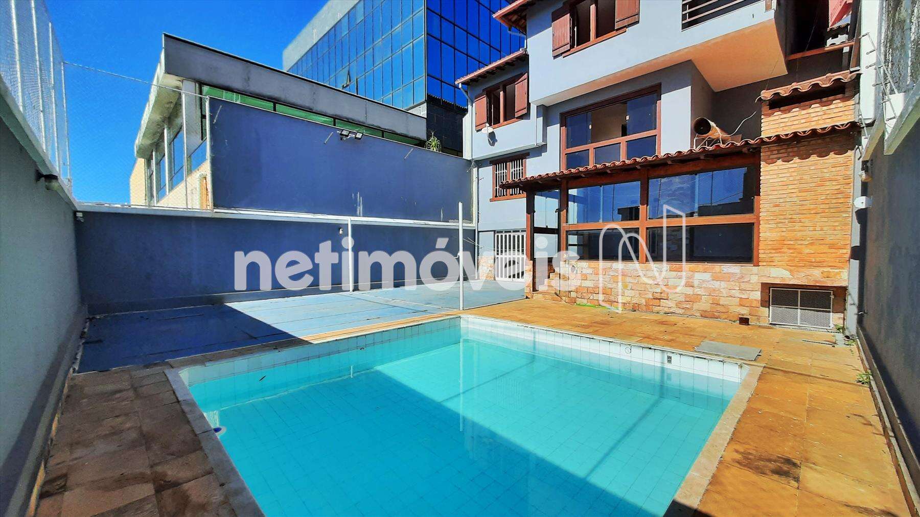 - Área externa com piscina e quadra.
