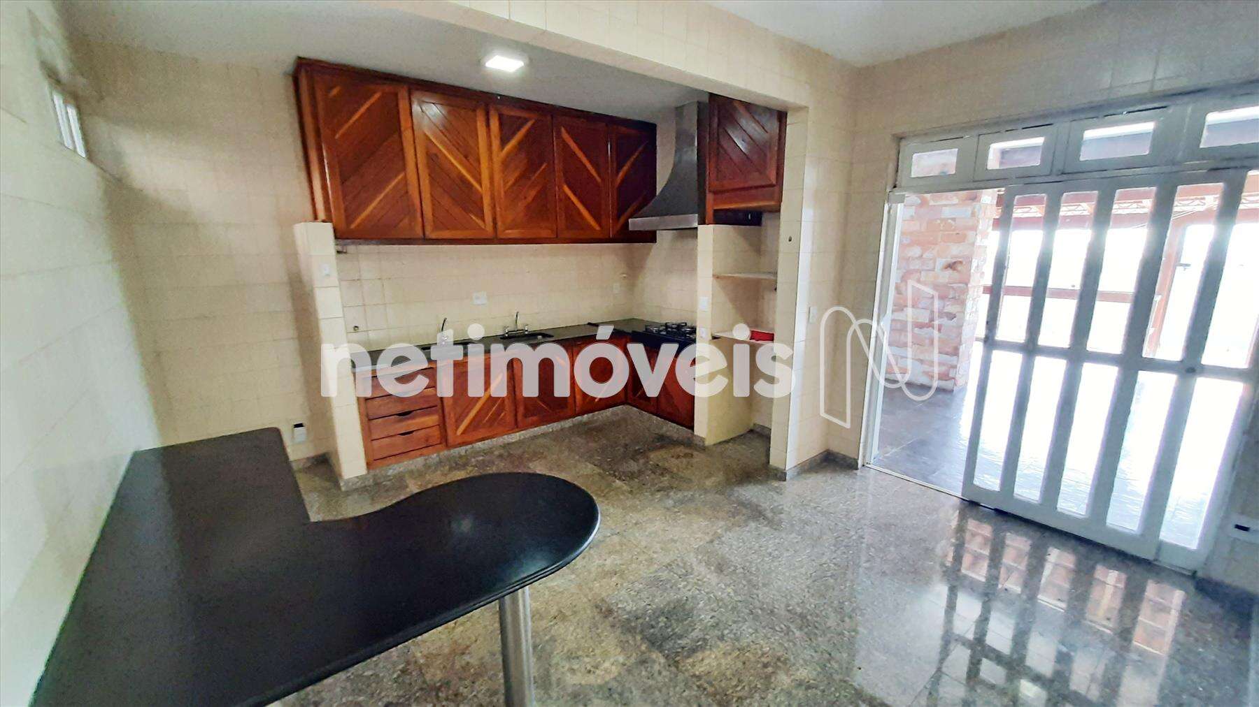 - Cozinha com piso em porcelanato, armários planejados e bancada em granito.