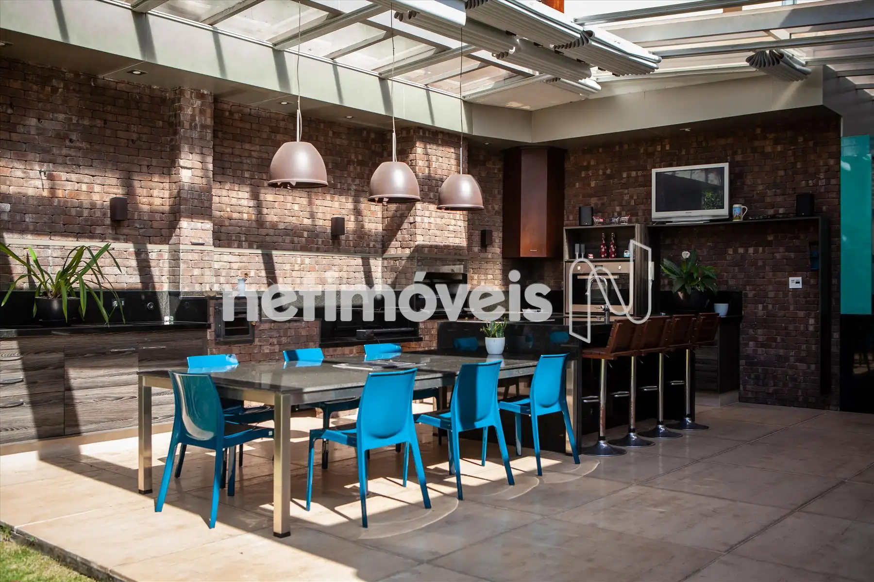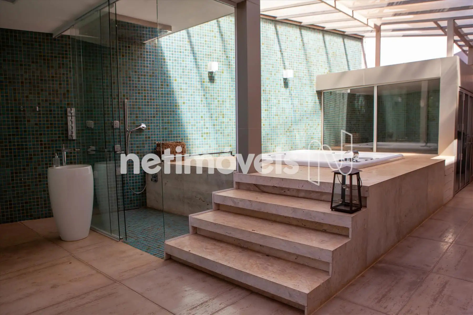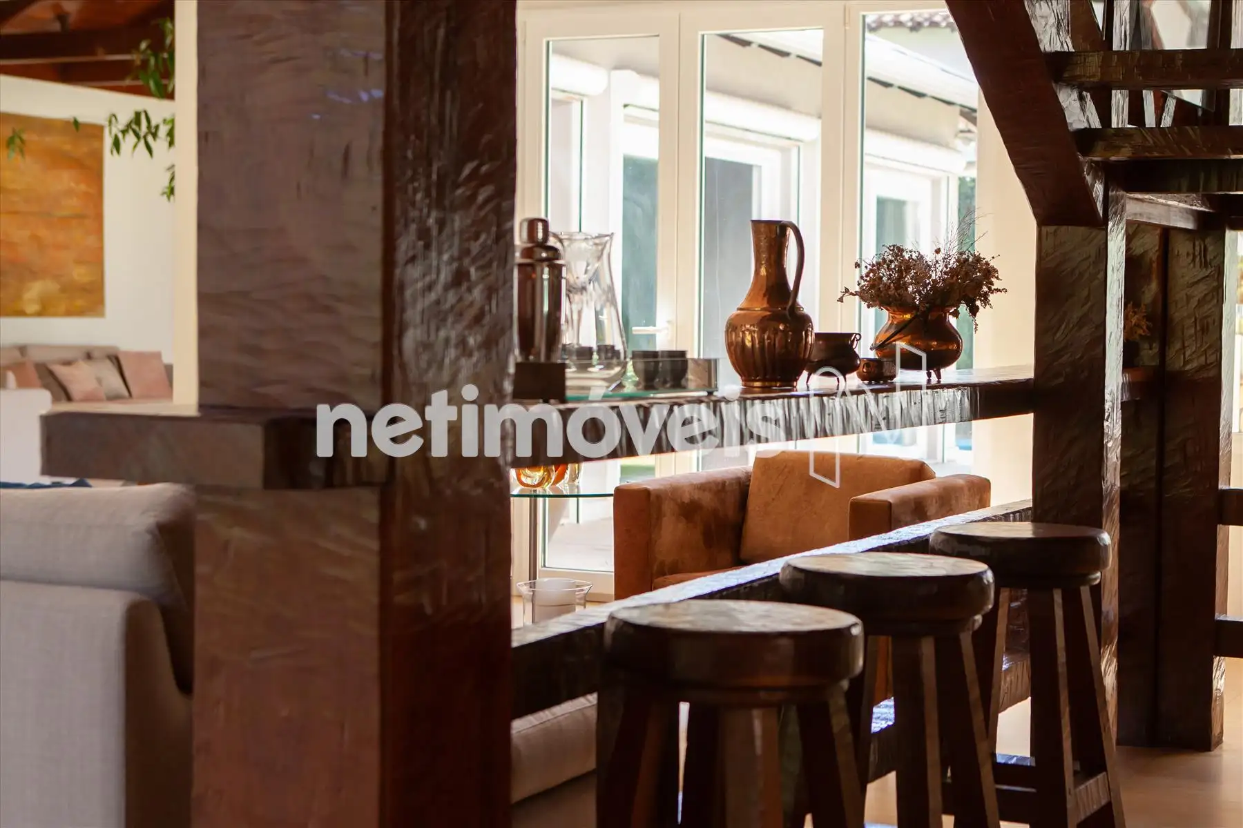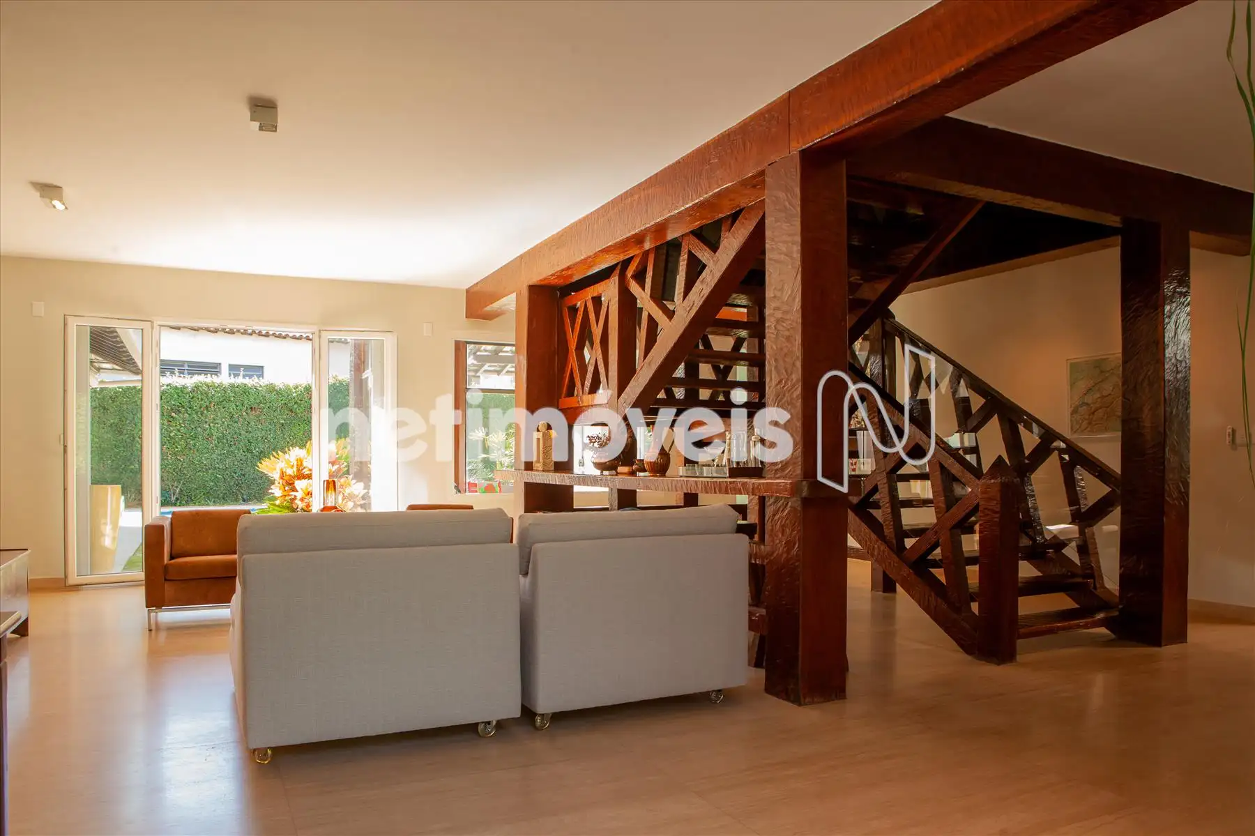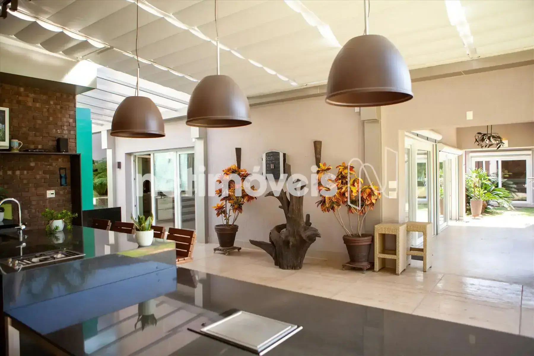 Os acabamentos são de alto padrão - mármore Travertino, mármore Translúcido, mármore Bronze Armani e madeira maciça IPÊ. As louças e metais são Laufen e Hansgrohe. Os espaços inteligentes da casa oferecem sistema de segurança com 5 monitores para 20 câmeras internas e externas, gerador de energia, irrigação automatizada, placas solares, pressurizador, água filtrada em todas as torneiras, projeto luminotécnico interno e externo.