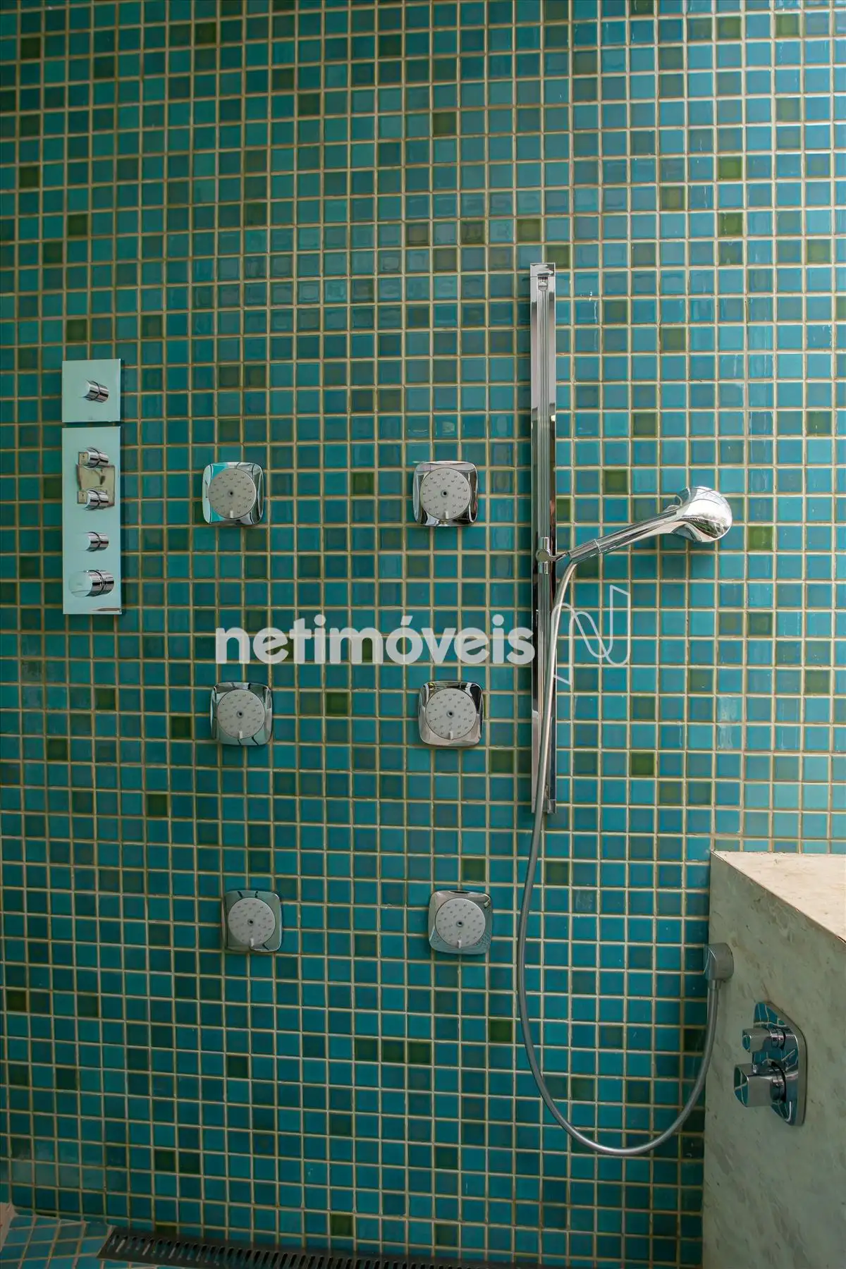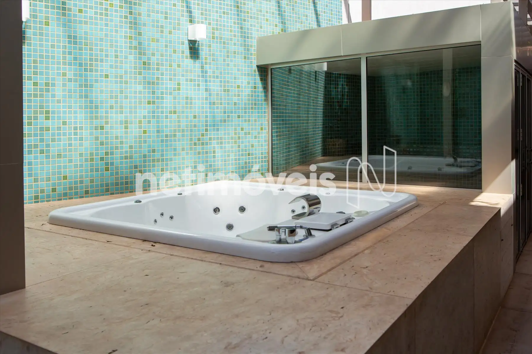 Lazer com piscina com aquecimento solar e iluminação, área molhada com chuveiro em tamanho especial para toda a família e monocomando com variações de queda d`agua, incluindo cascata, jacuzzi para 6 pessoas com cascata, sauna molhada a vapor com ducha cascata interna, vestiário feminino e masculino.