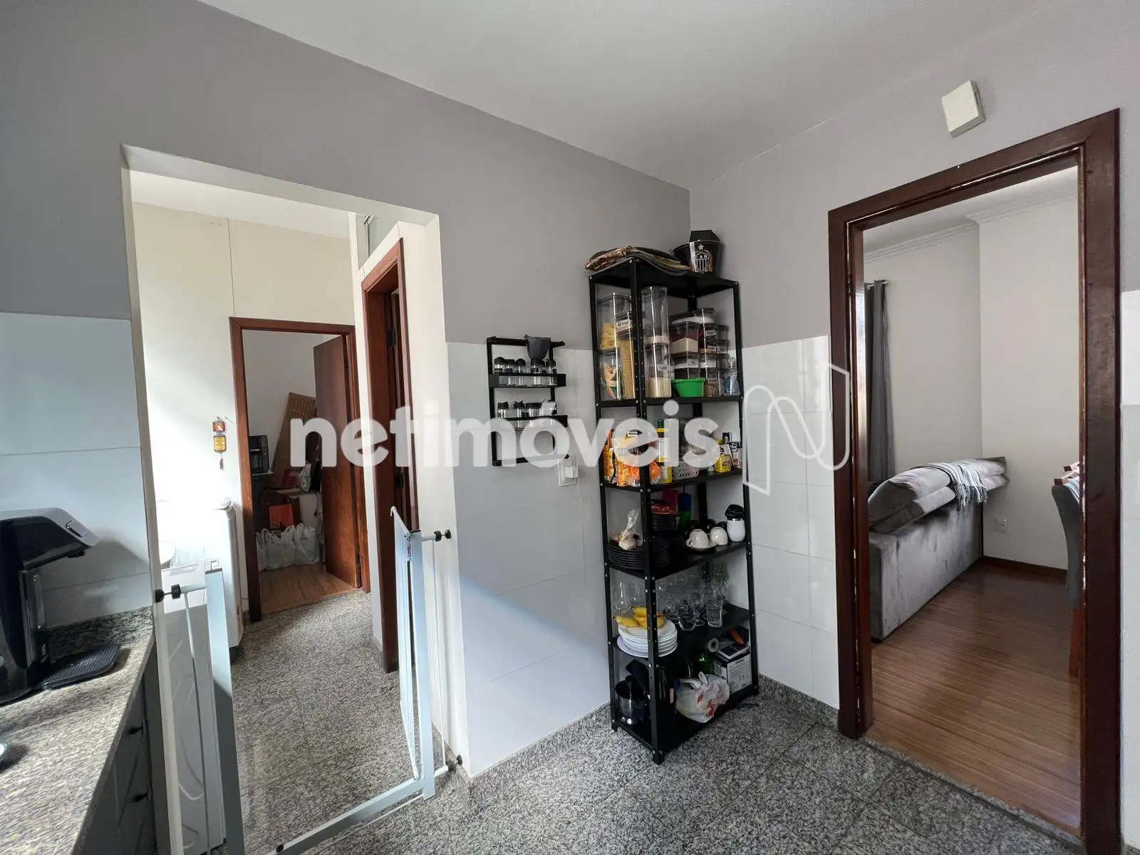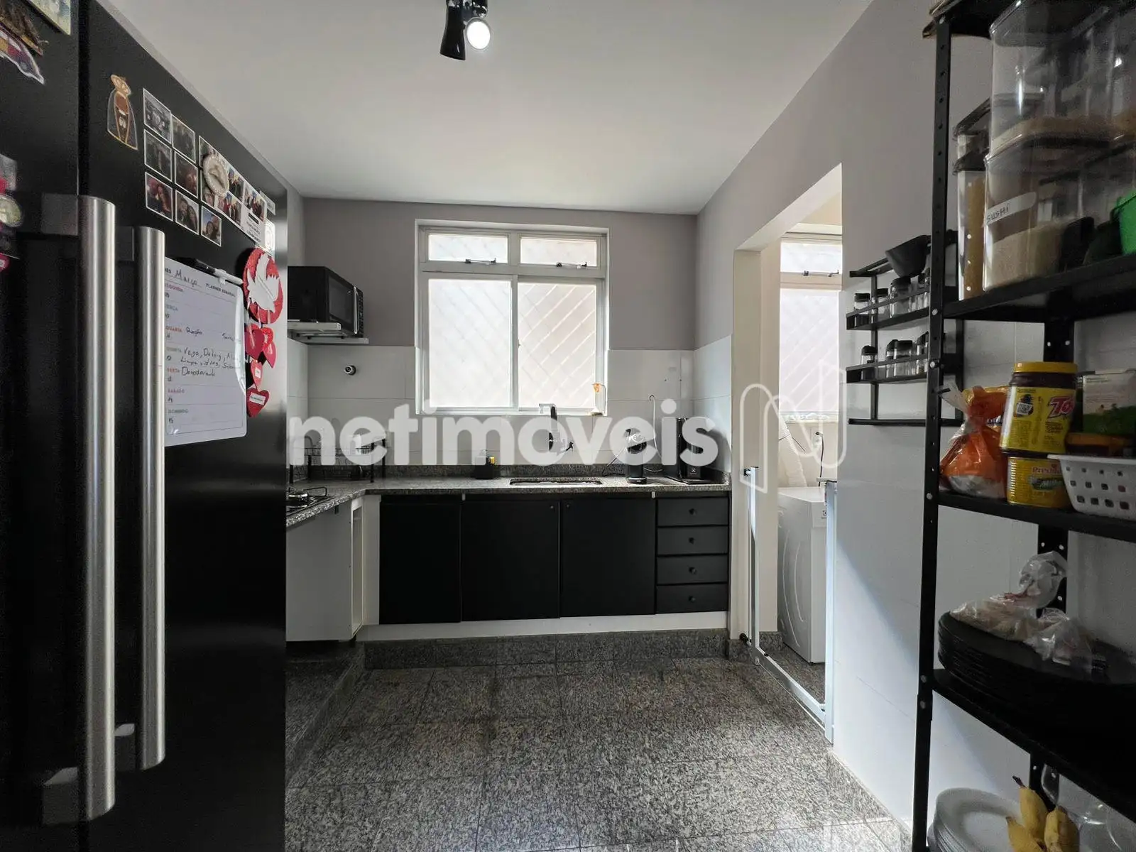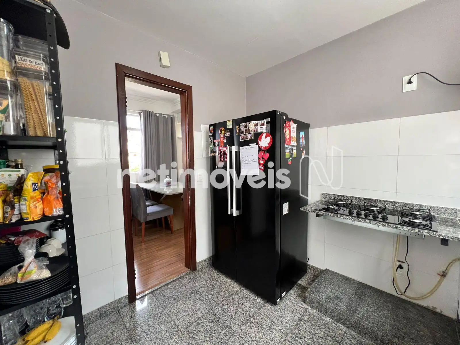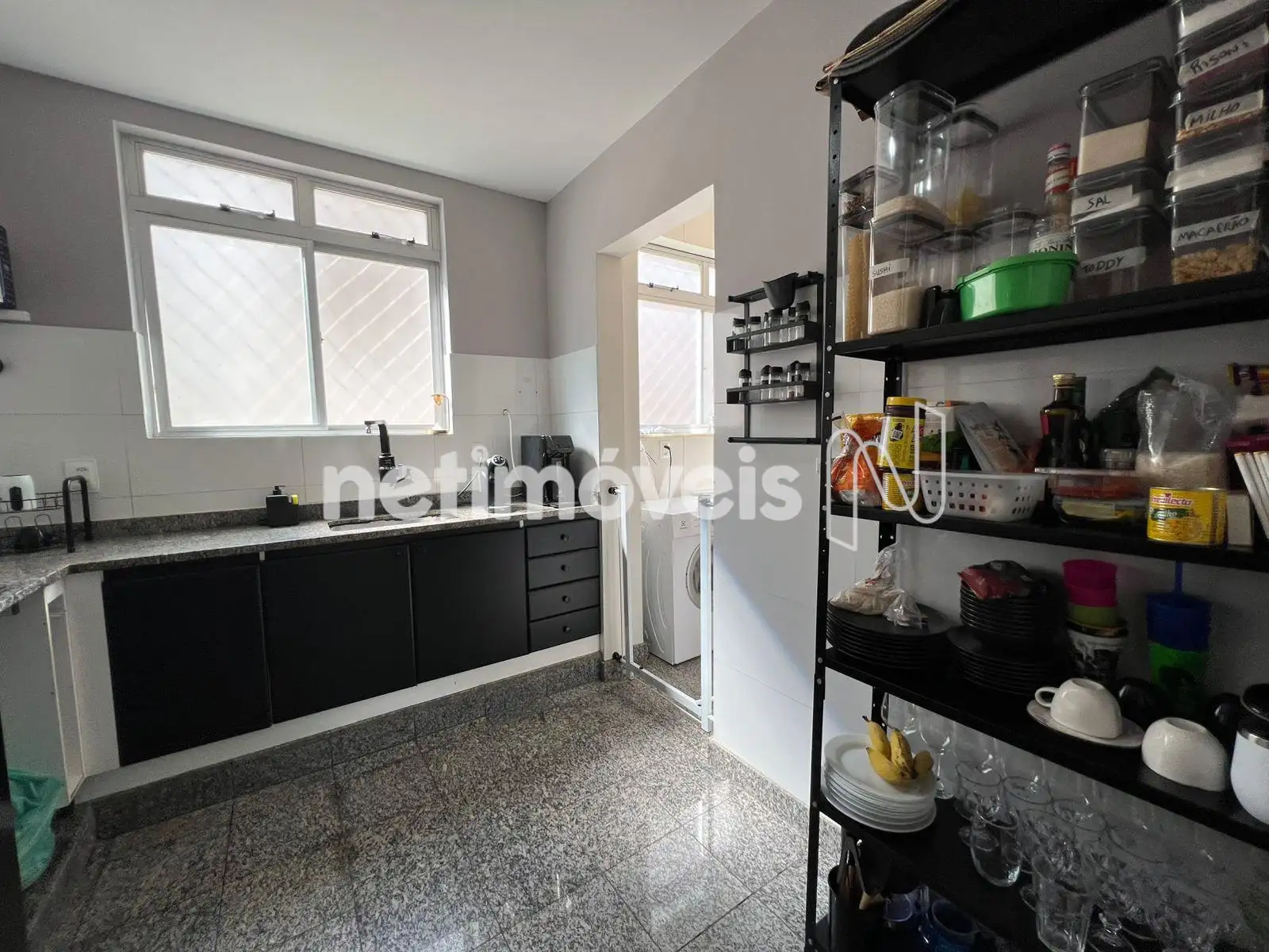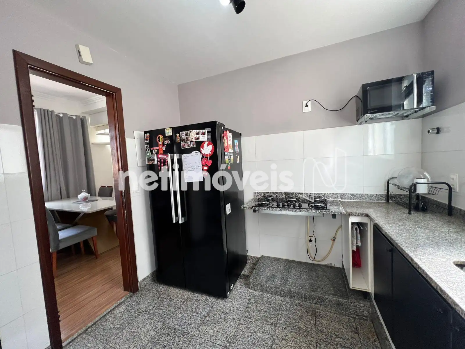 - Cozinha com armários planejados, piso e bancada em granito.