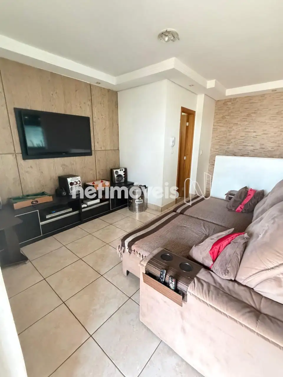 Sala com piso em cerâmica.