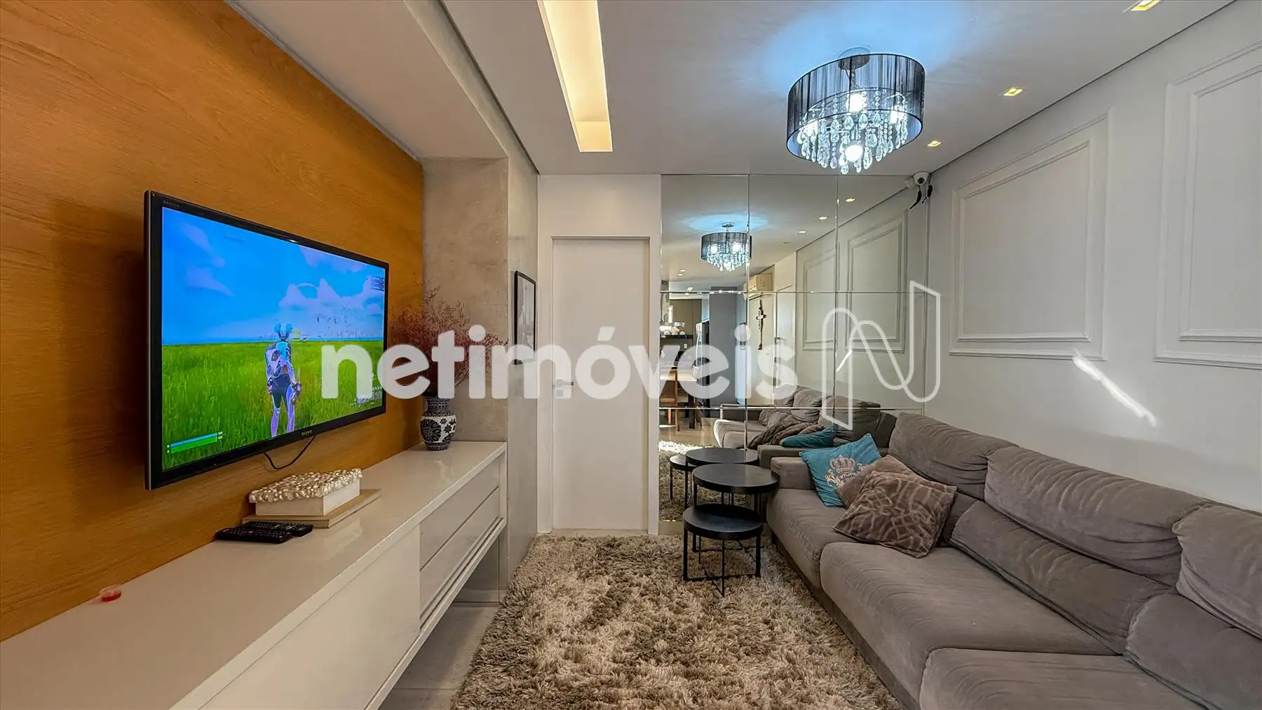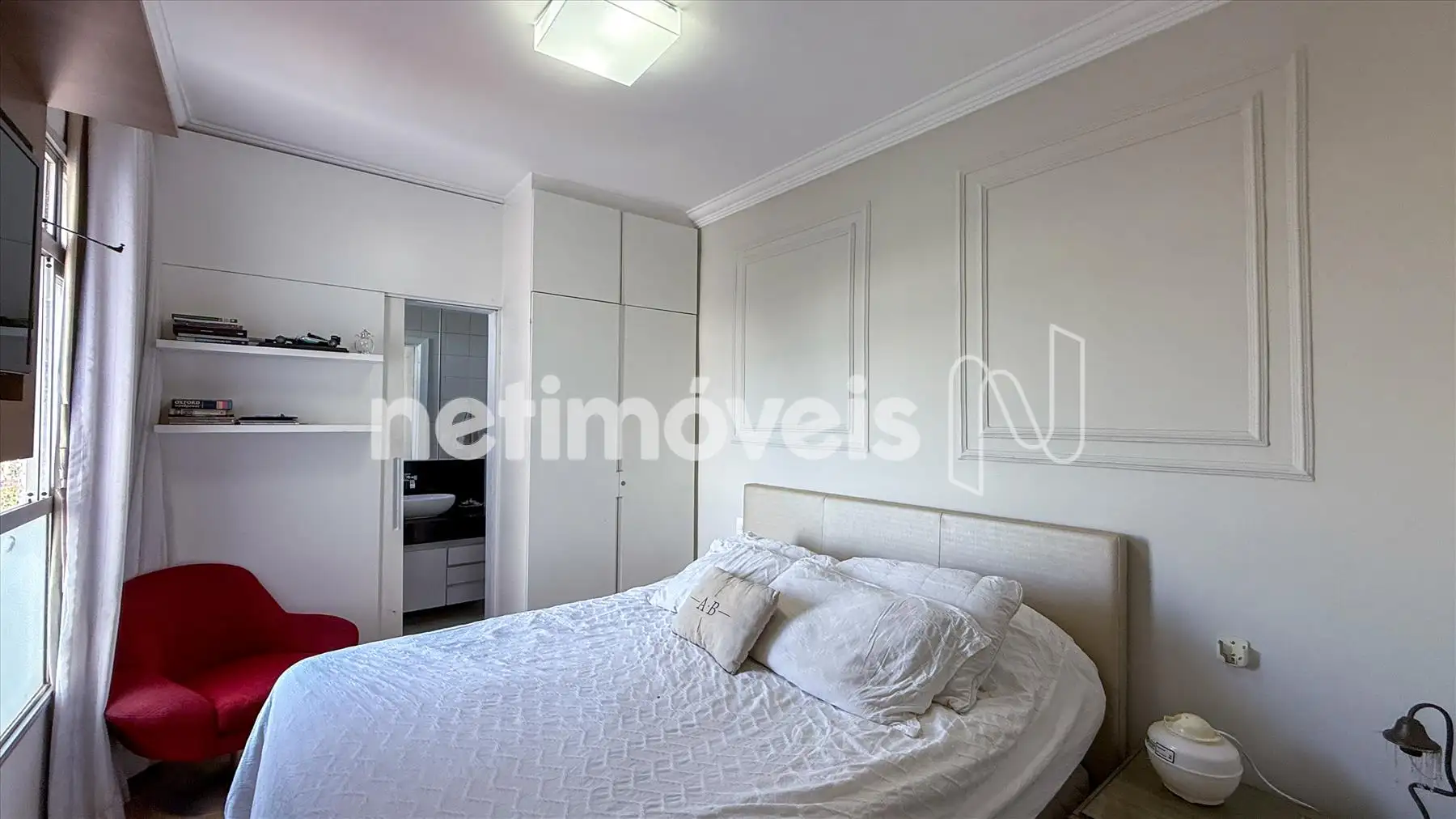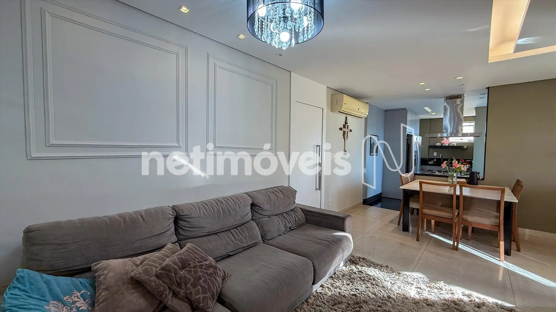- Uma sala para dois ambientes, com piso em porcelanato, varanda integrada;