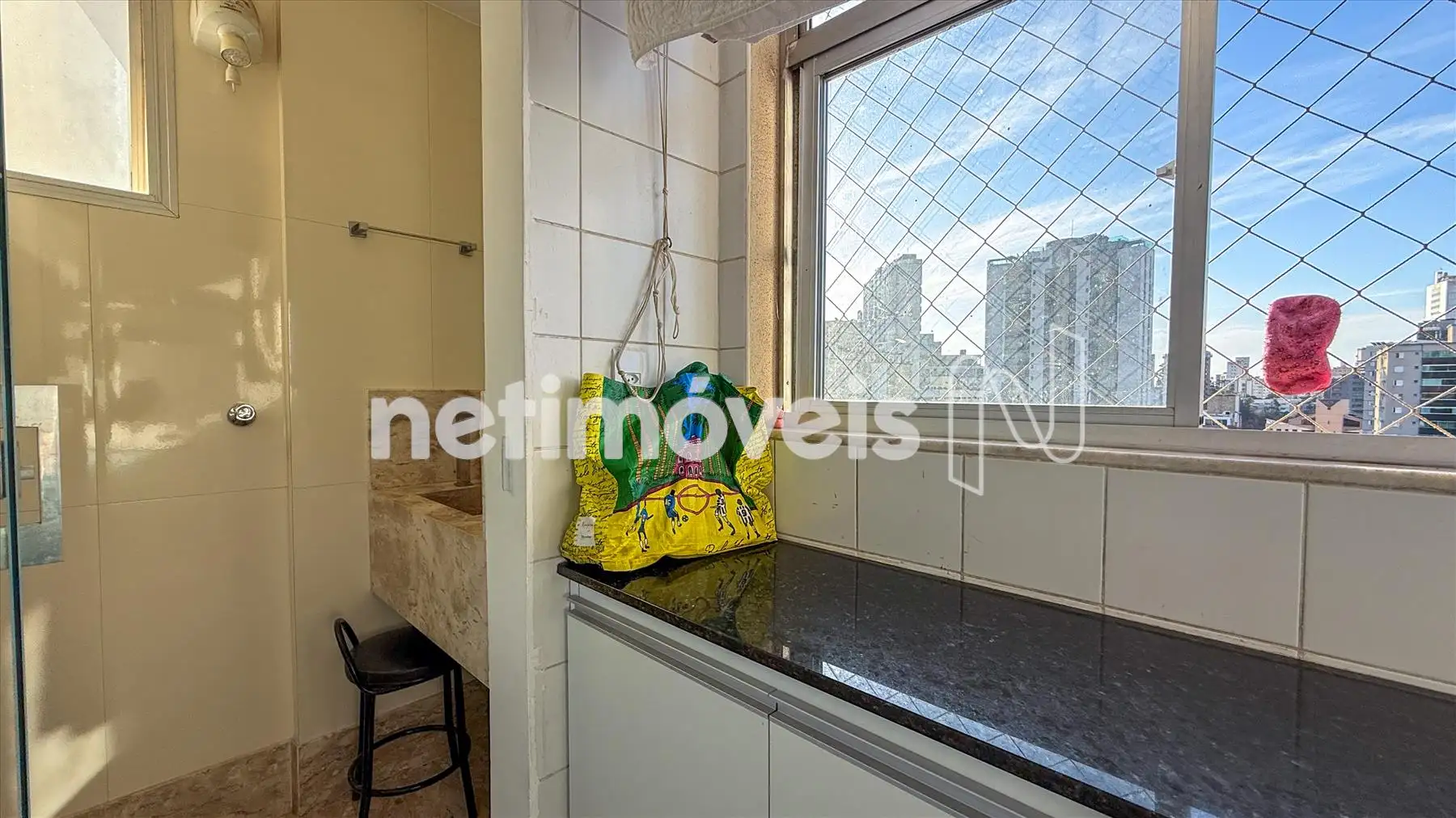 - Lavabo com piso e bancada em mármore;