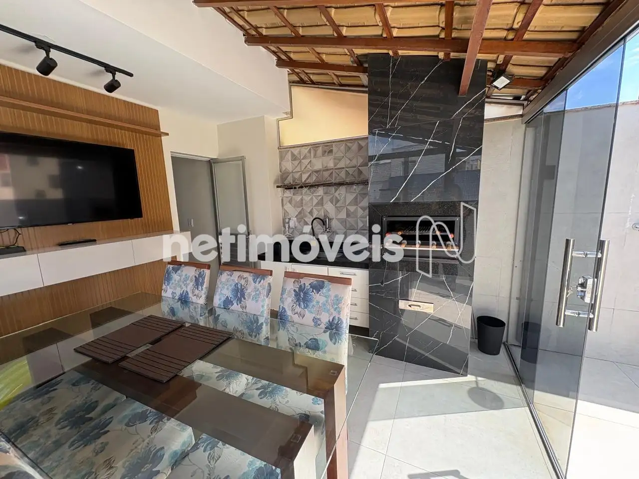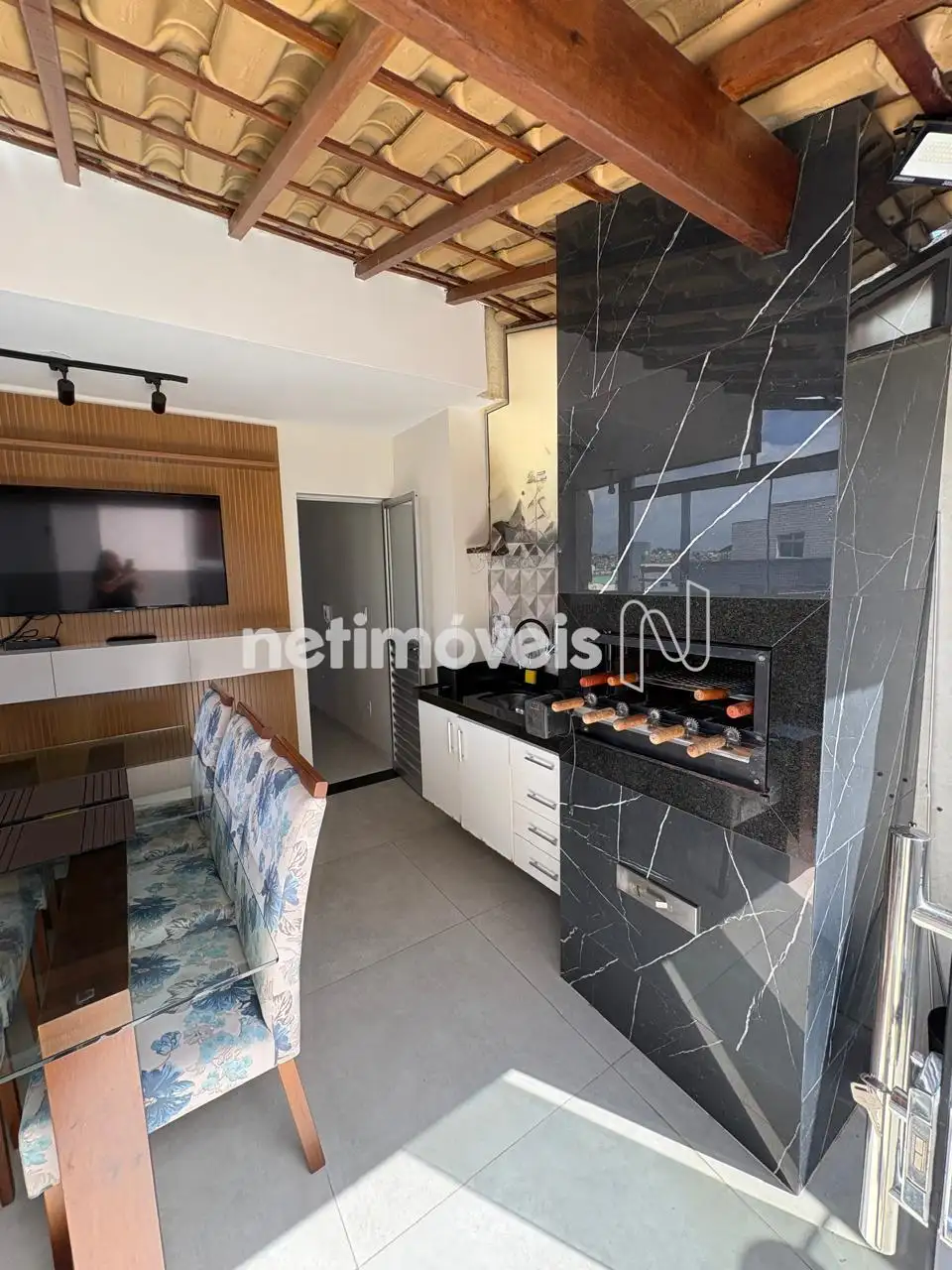 - Espaço gourmet completo (churrasqueira, bancada em granito com armários planejados e pia) em espaço coberto