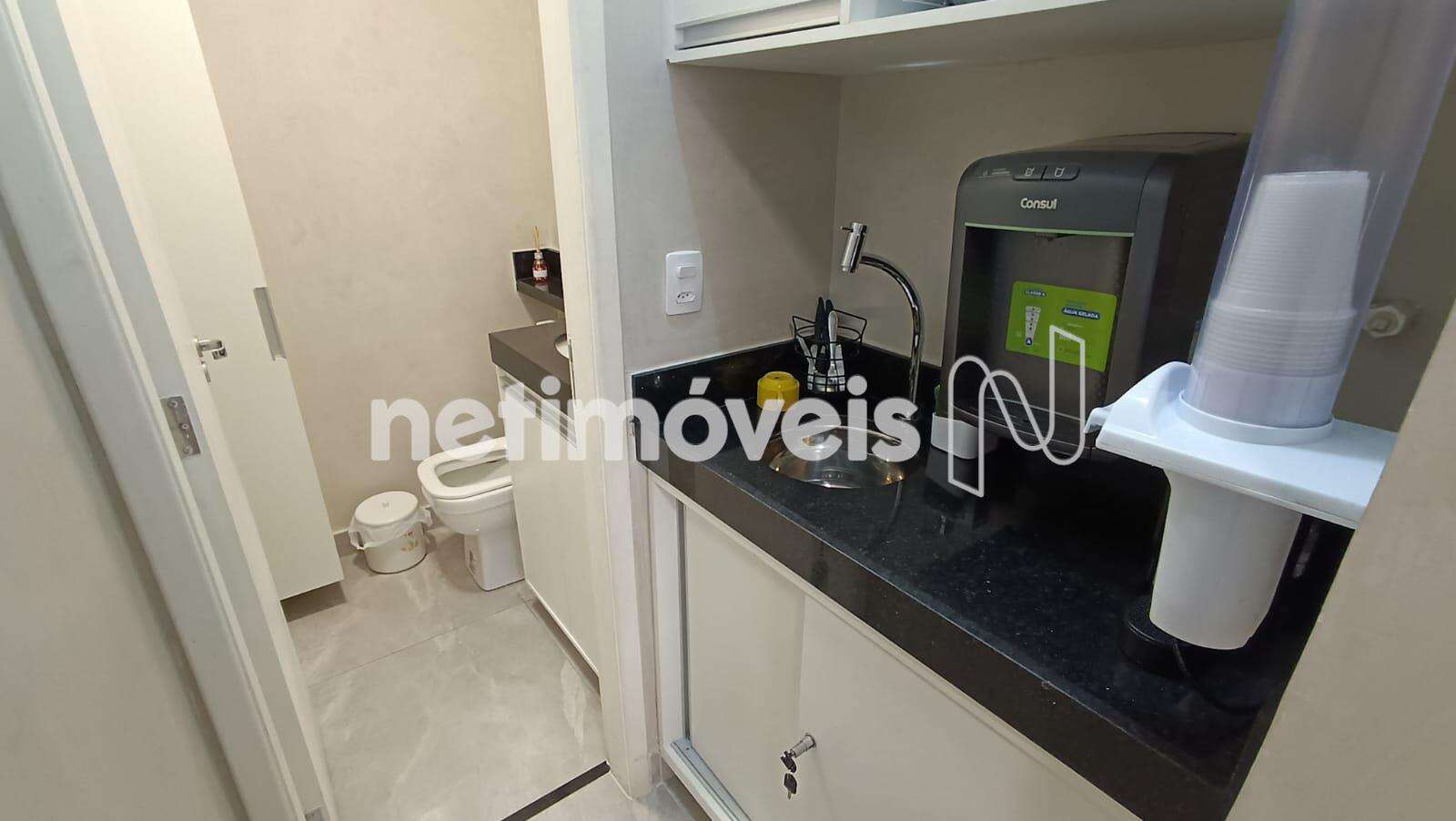 A sala tem aproximadamente 40m², distribuída em uma área de recepção e um ambiente privado, ideal para atender suas demandas profissionais. O banheiro dentro da sala proporciona maior comodidade. O piso em porcelanato confere um acabamento adequado ao espaço. É importante ressaltar que os móveis não estão incluídos na venda.
