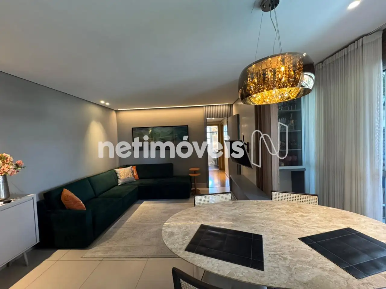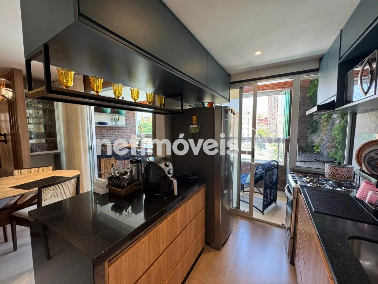 Sala para 2 ambientes, piso em porcelanato, iluminação, lavabo, varanda gourmet com cortina de vidro e linda vista, 3 quartos com armários piso laminado madeira, 1 quarto transformado em escritório de muito bom gosto, banho social e suíte, cozinha com armários novos, bancada em granito, área de serviço.