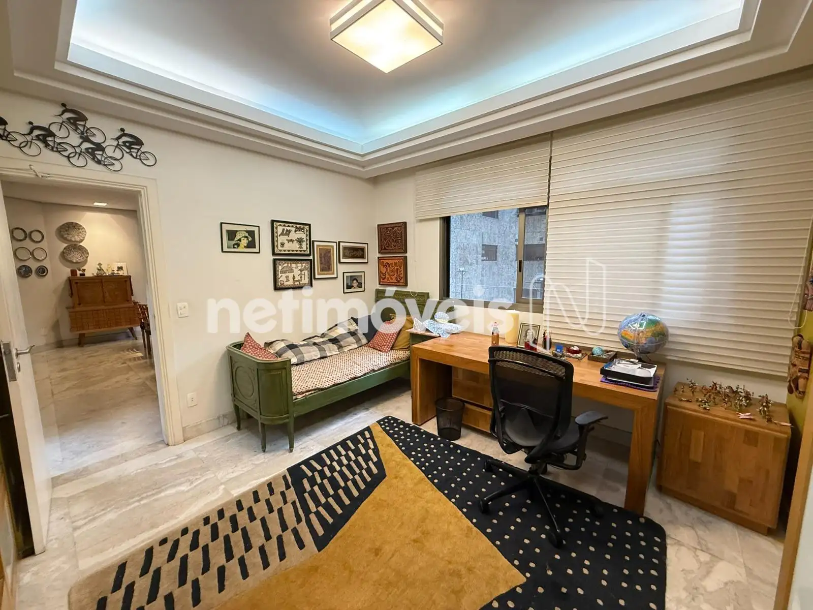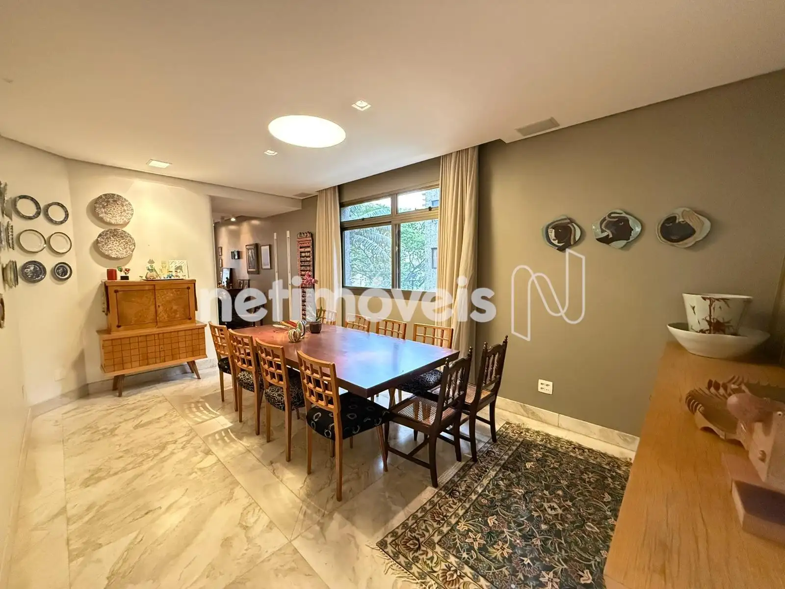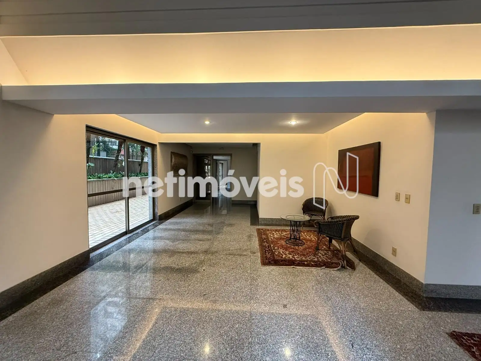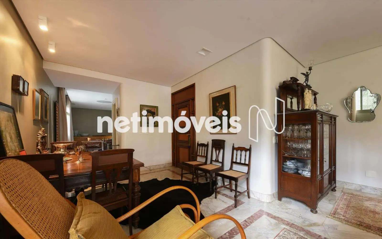 Sala em L para 3 ambientes com piso em mármore;