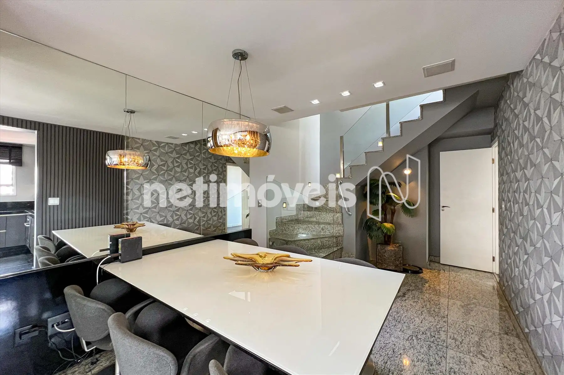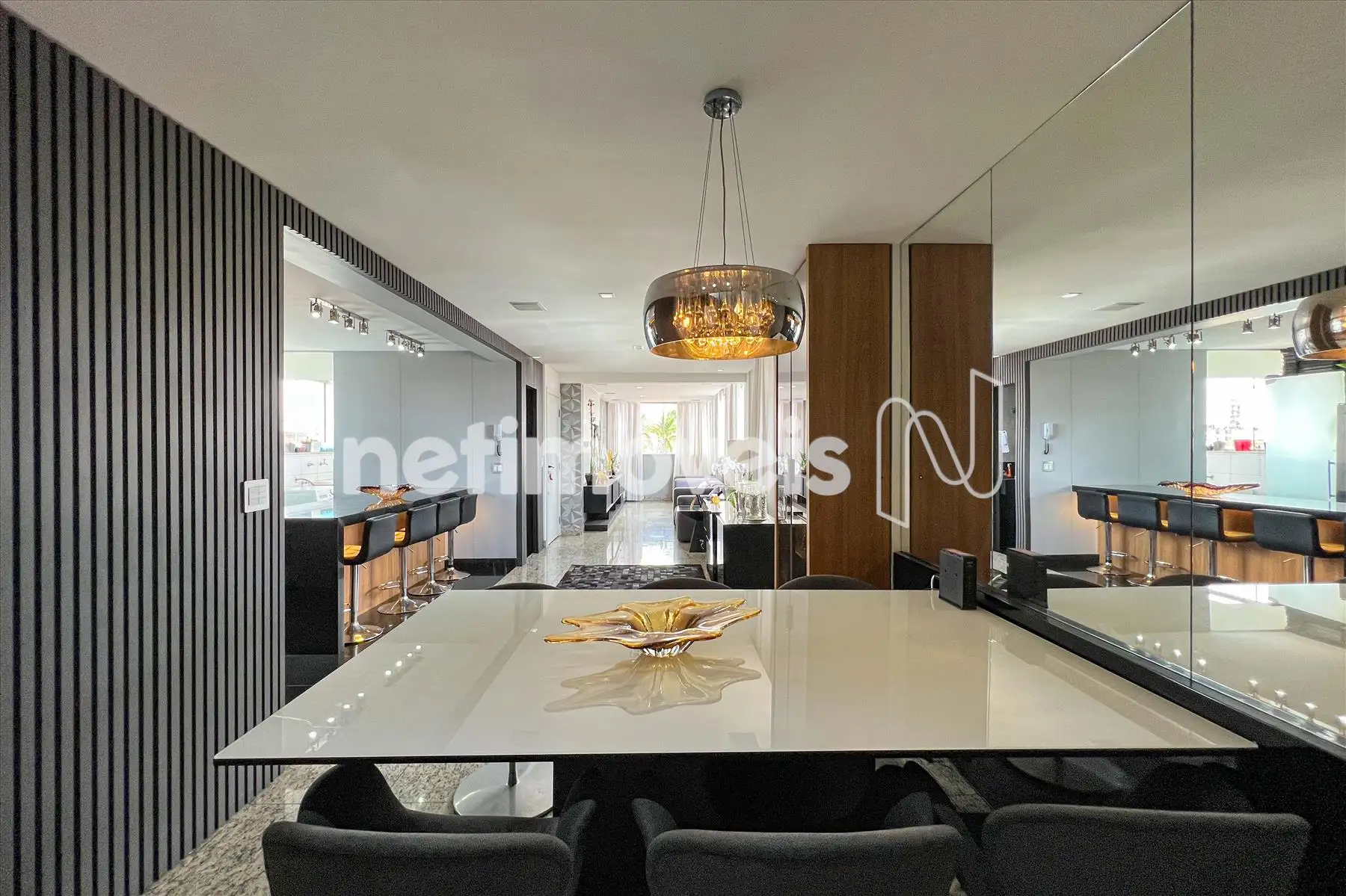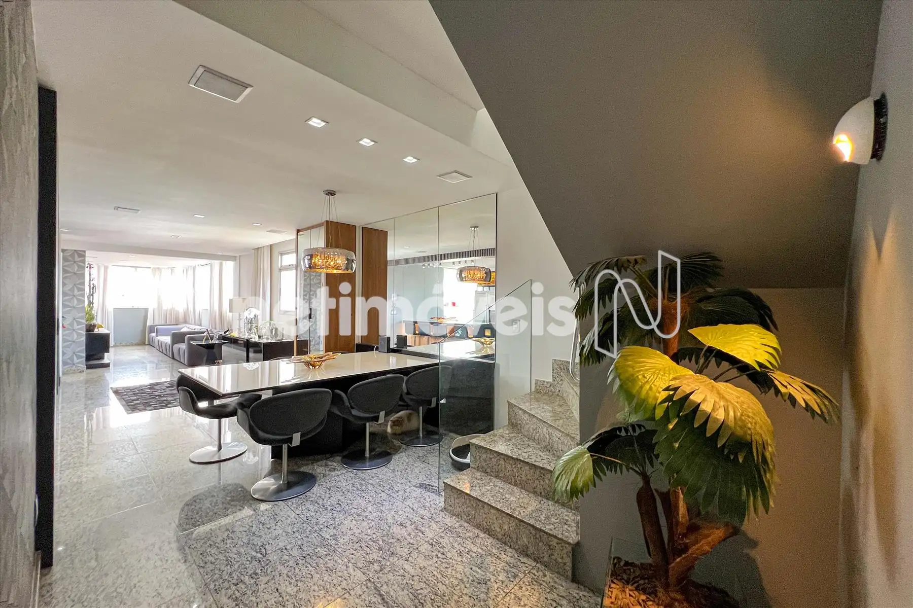 - Sala para 02 ambientes com piso em granito, teto rebaixado com luzes indiretas, home thaeter, cristaleira;