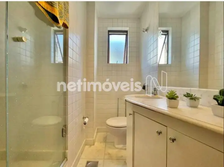02 Quartos com piso em laminado, armários, closet., sendo duas suítes com piso em cerâmica e bancadas em mármore, com armários sob pia, espelho e box blindex.