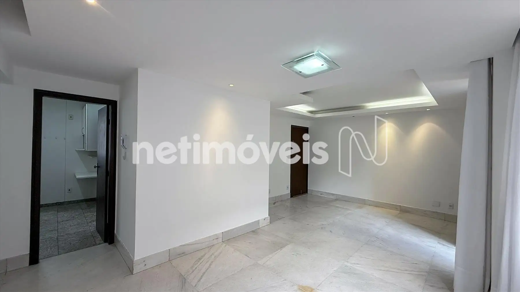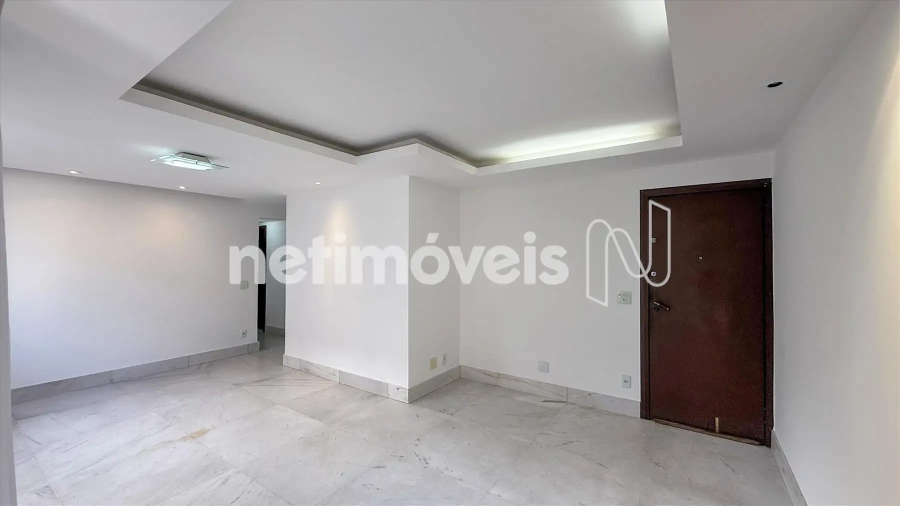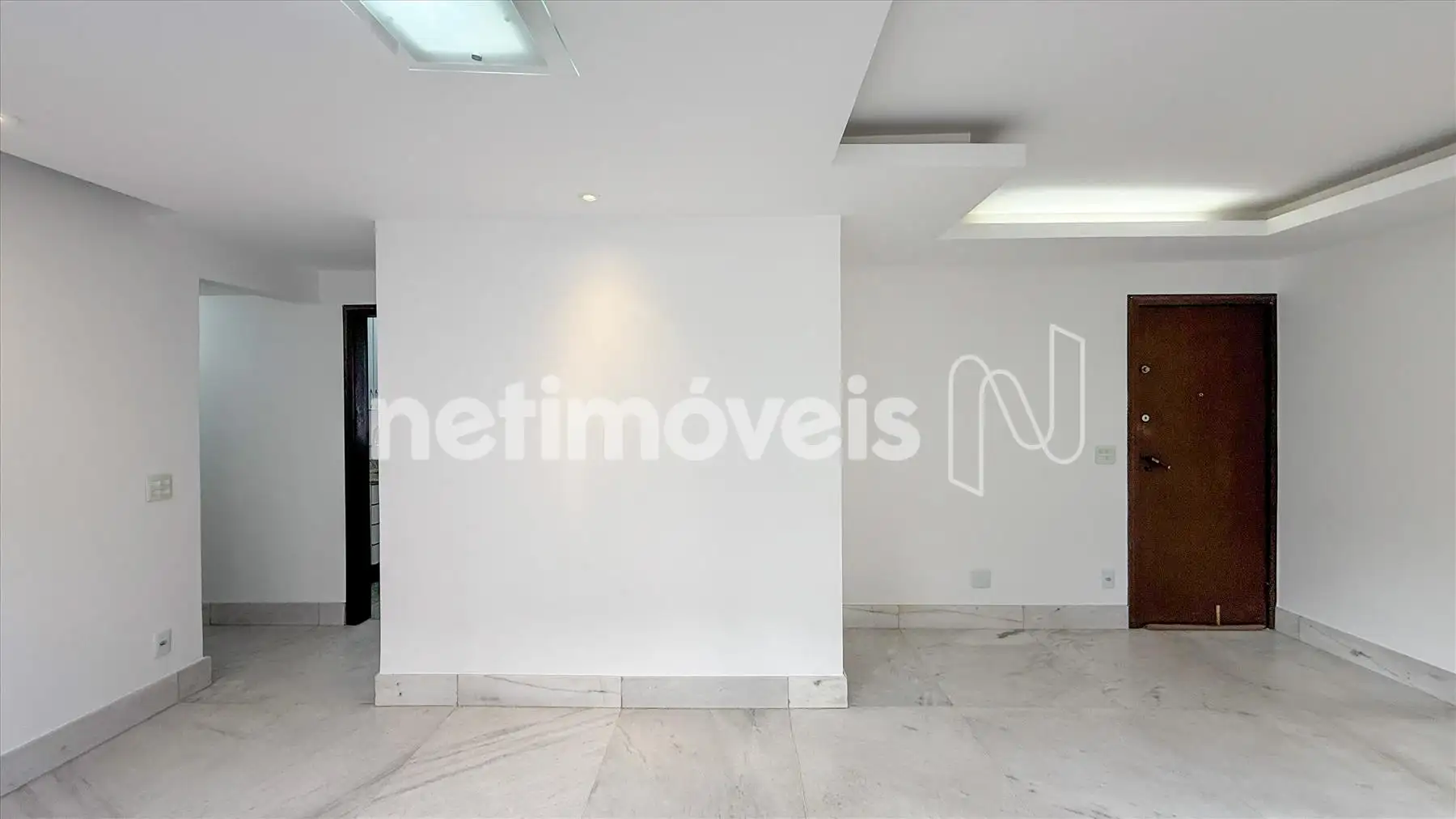 Sala ampla para dois ambientes com iluminação planejada.