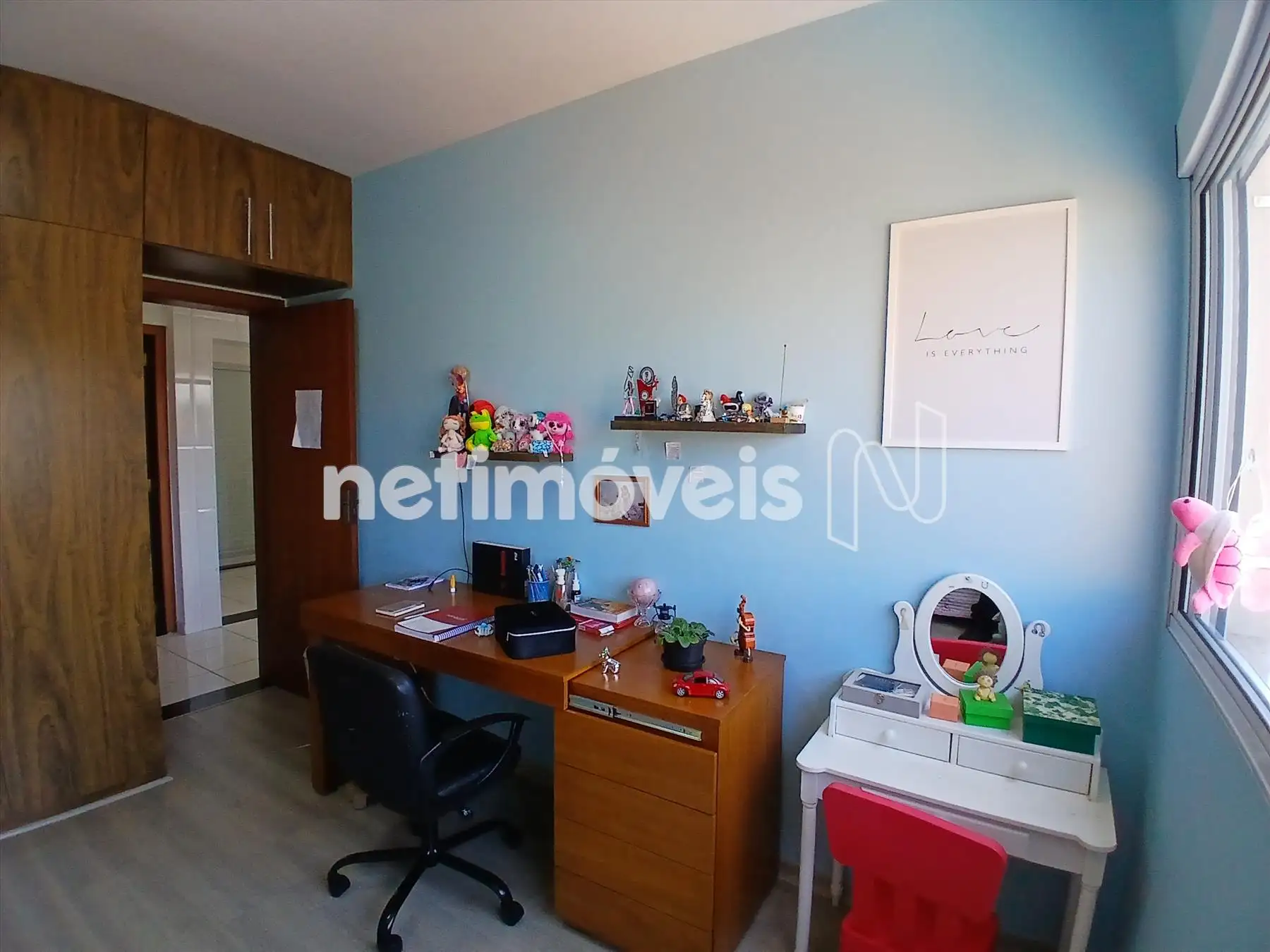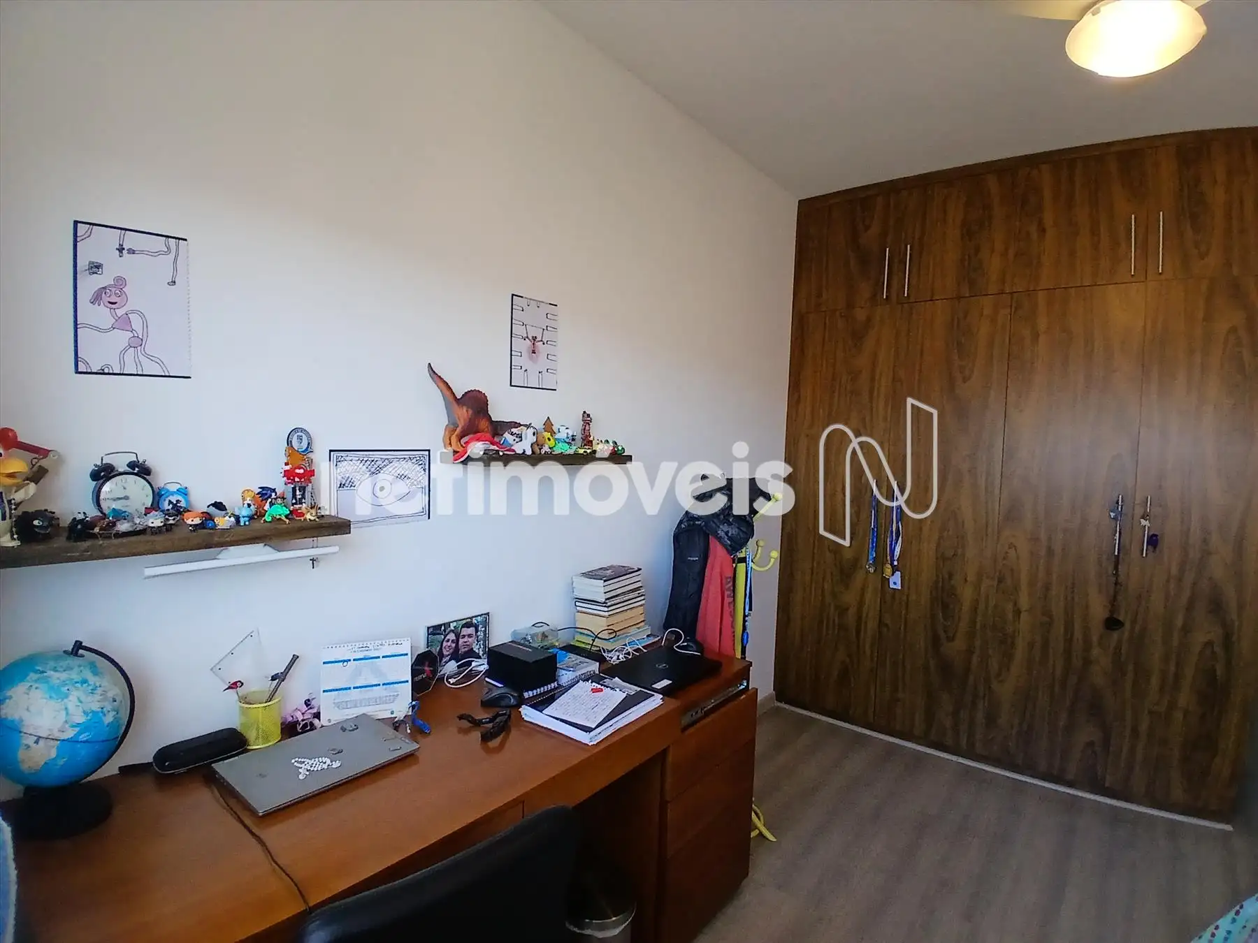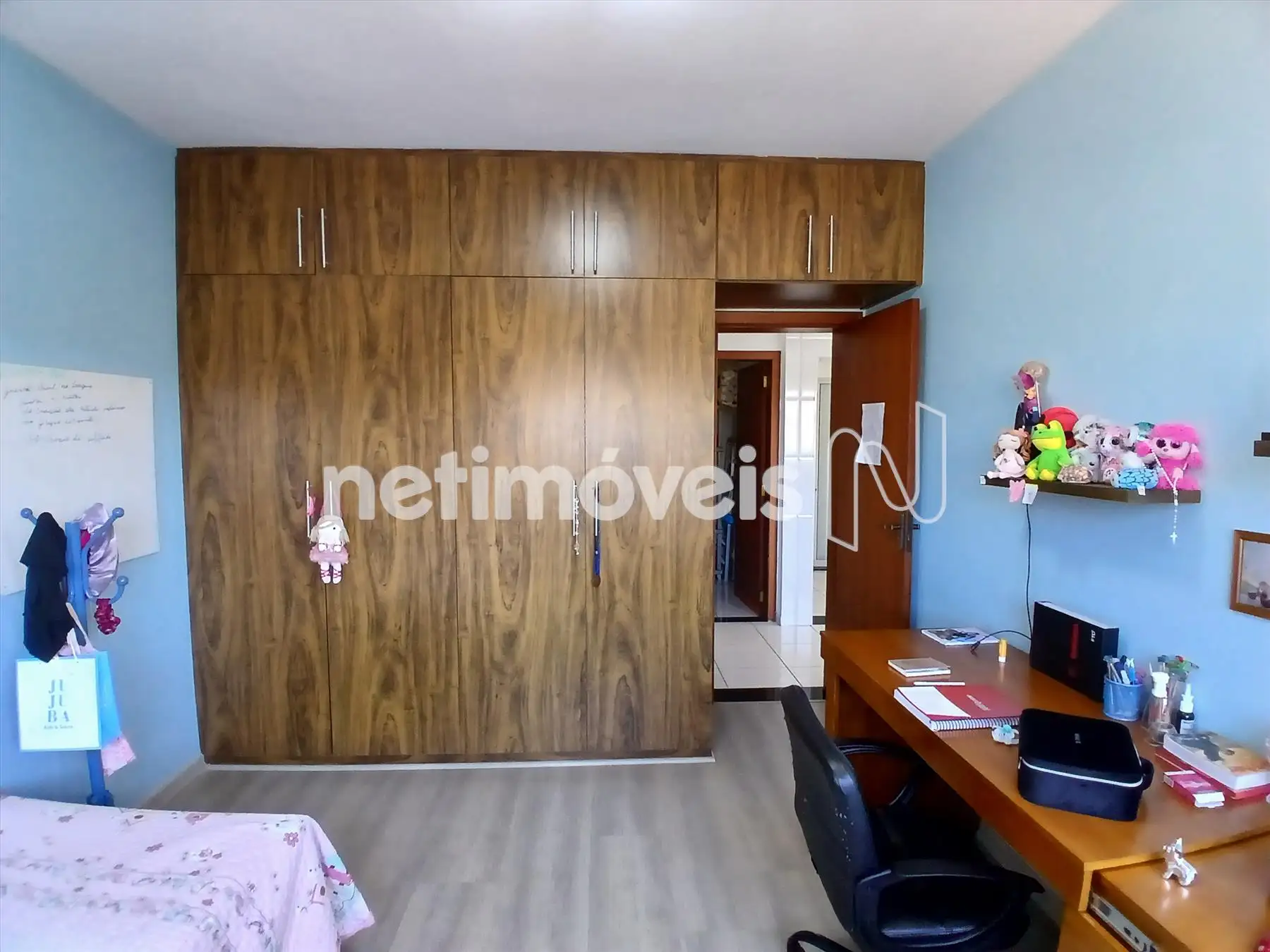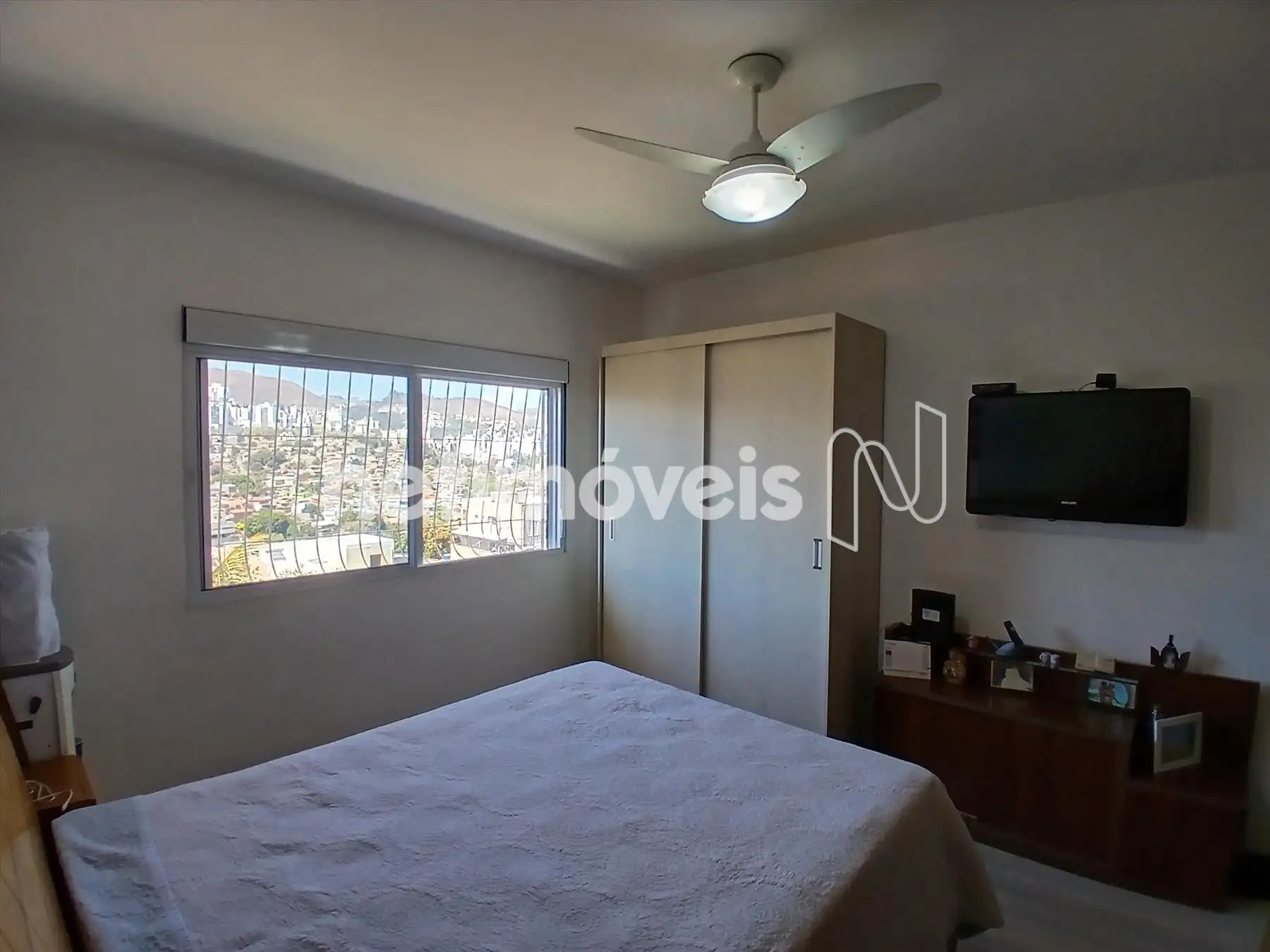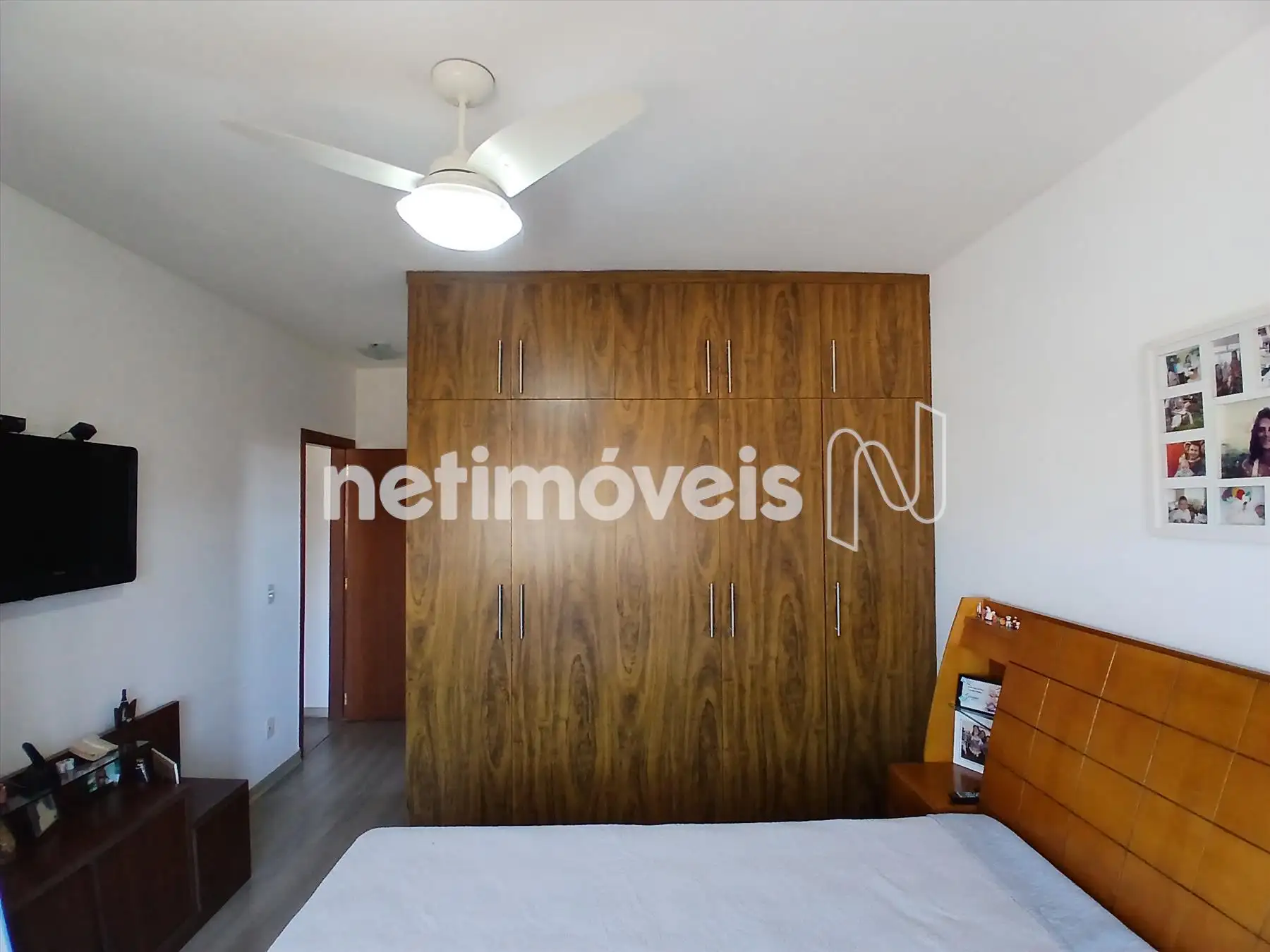 3 quartos, sendo 1 suíte, todos com armários planejados e ventiladores de teto.