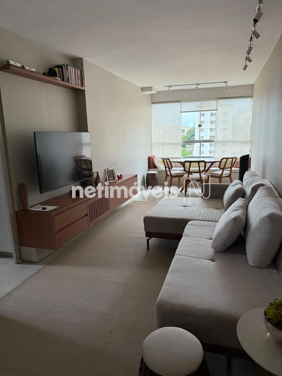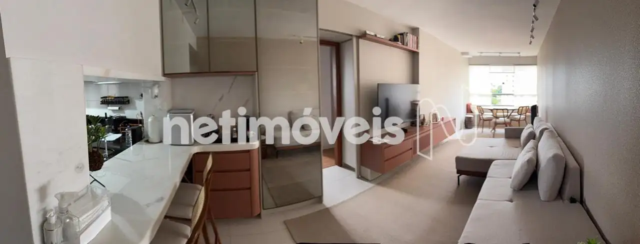 Apartamento: Sala para dois ambientes com cozinha integrada (americana), 02 quartos sendo 01 suíte, banho social, área de serviço independente.