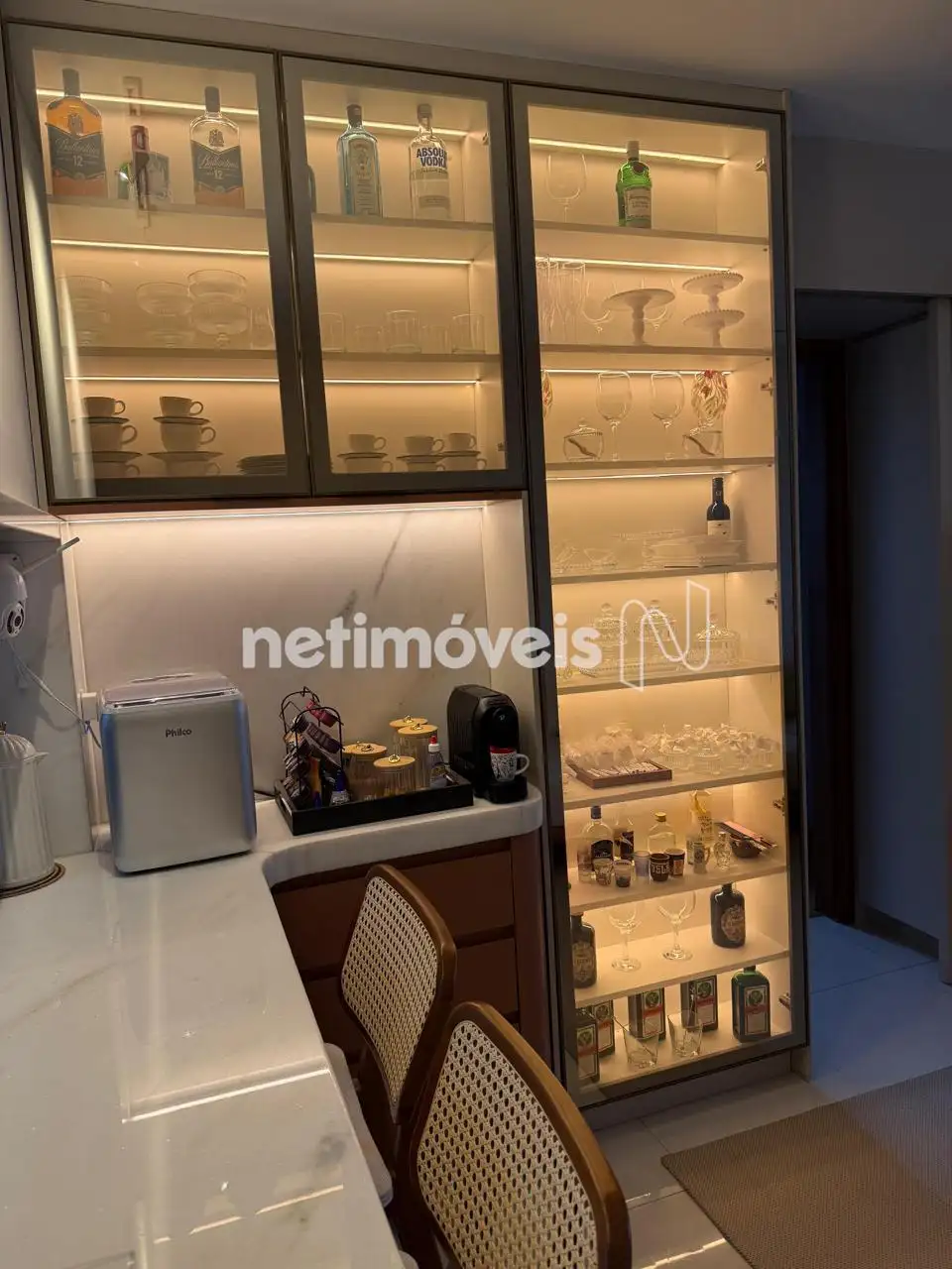 Acabamentos e armários de alto padrão, projeto luminotécnico e de automatização.