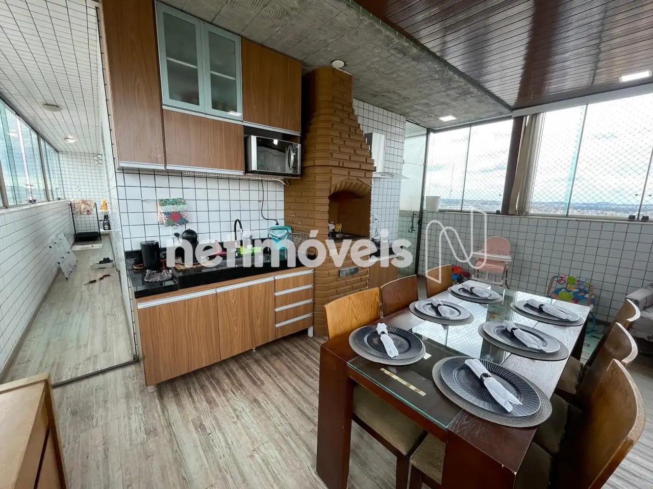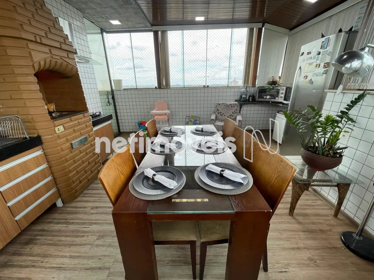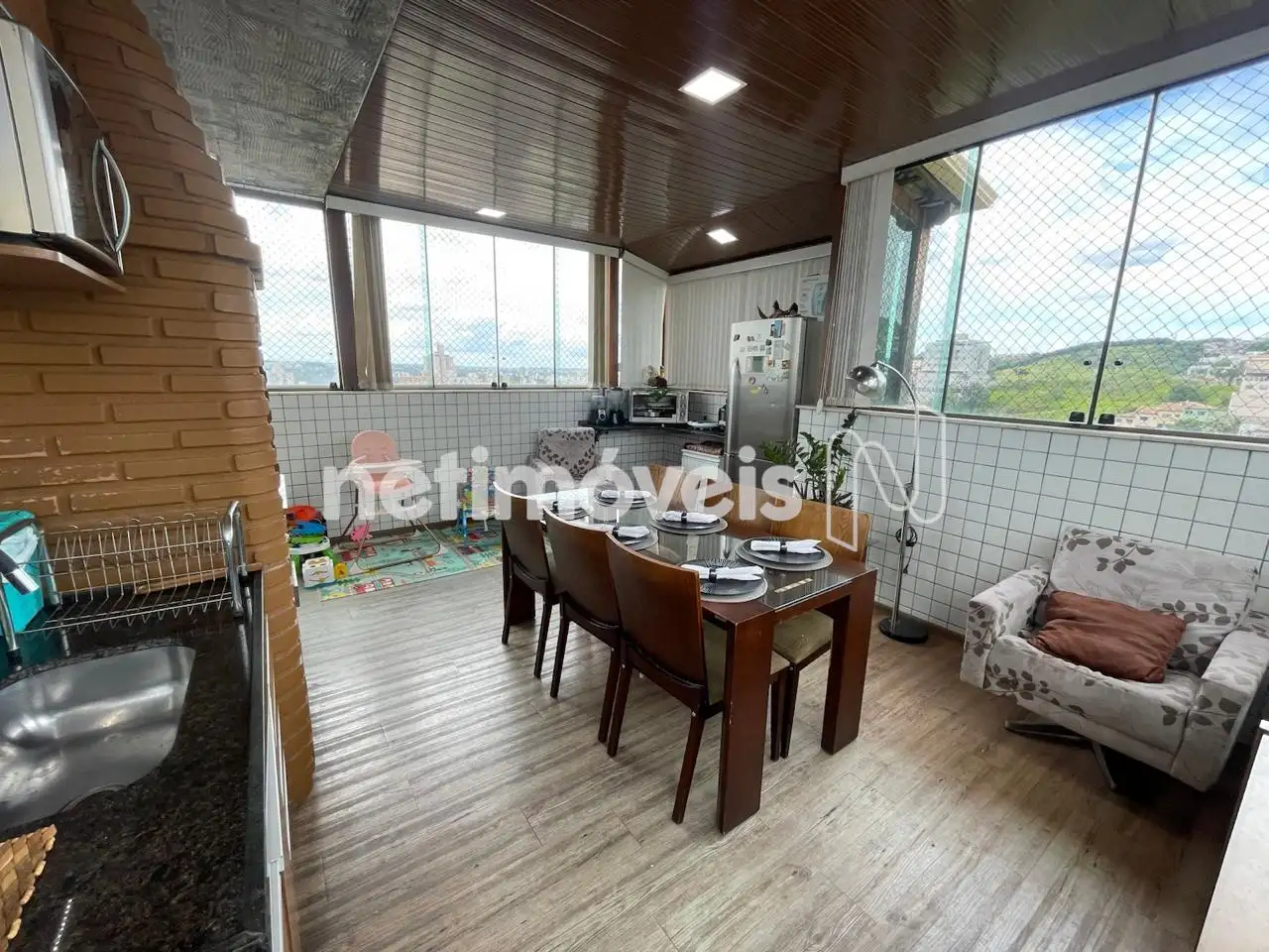 01 espaço gourmet fechado com vidro blindex no entorno da cobertura, com churrasqueira, com uma cozinha montada com muito bom gosto, e com uma vista incrivel para o amanhecer e pôr do sol para momentos memoráveis com familiares e amigos!!!