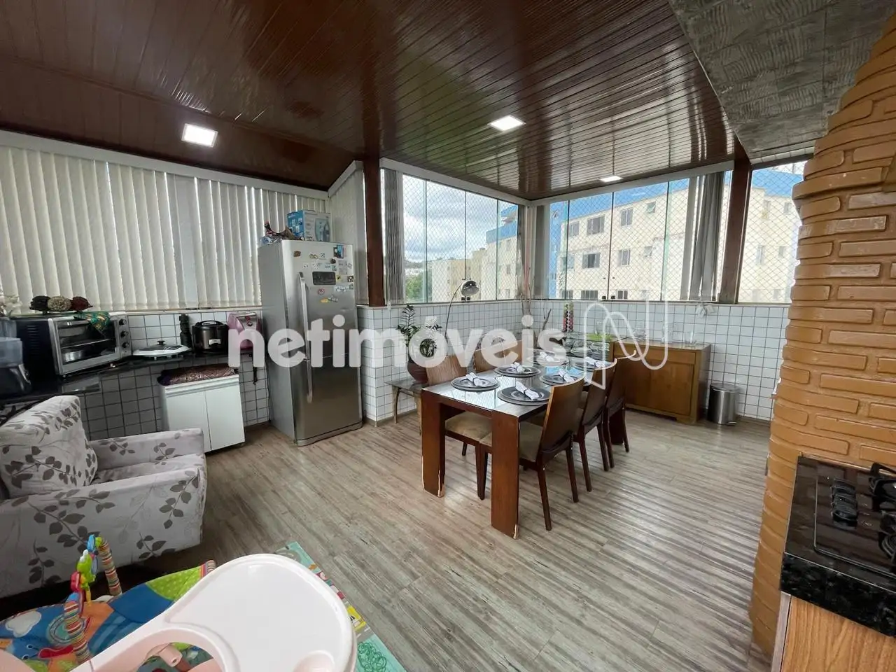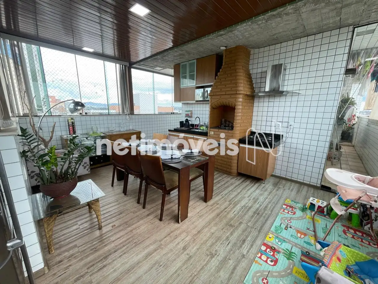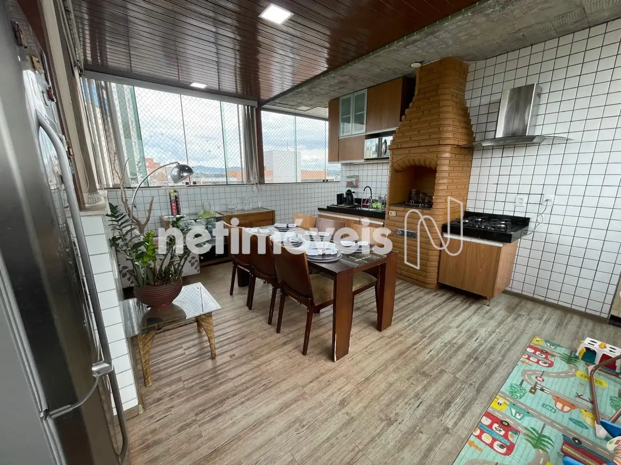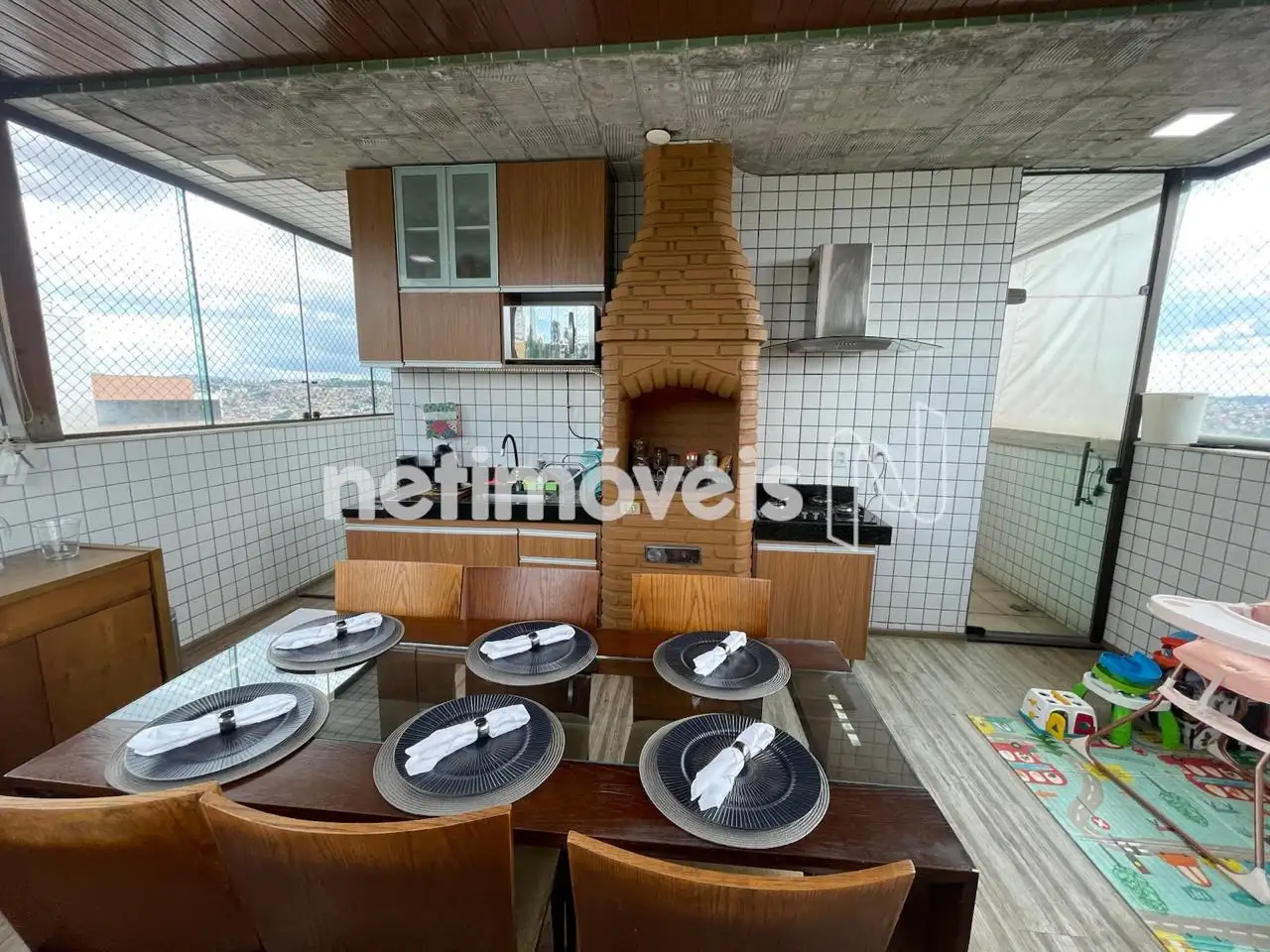 01 espaço gourmet fechado com vidro blindex no entorno da cobertura, com churrasqueira, com uma cozinha montada com muito bom gosto, e com uma vista incrivel para o amanhecer e pôr do sol para momentos memoráveis com familiares e amigos!!!