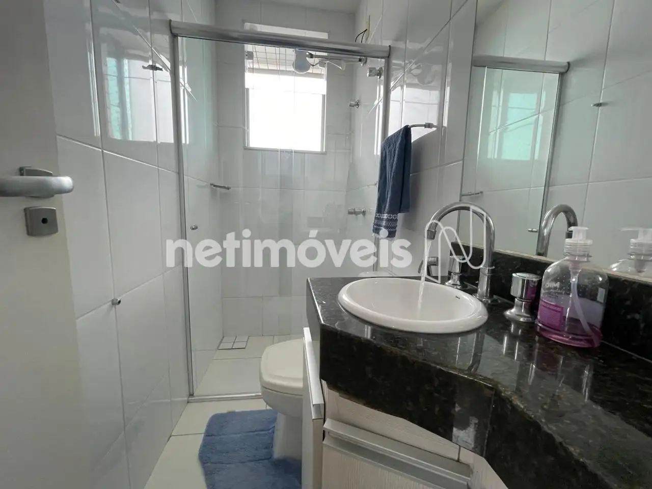 * 01 Banho social com acabamento nas bancadas em granito, piso em porcelanato