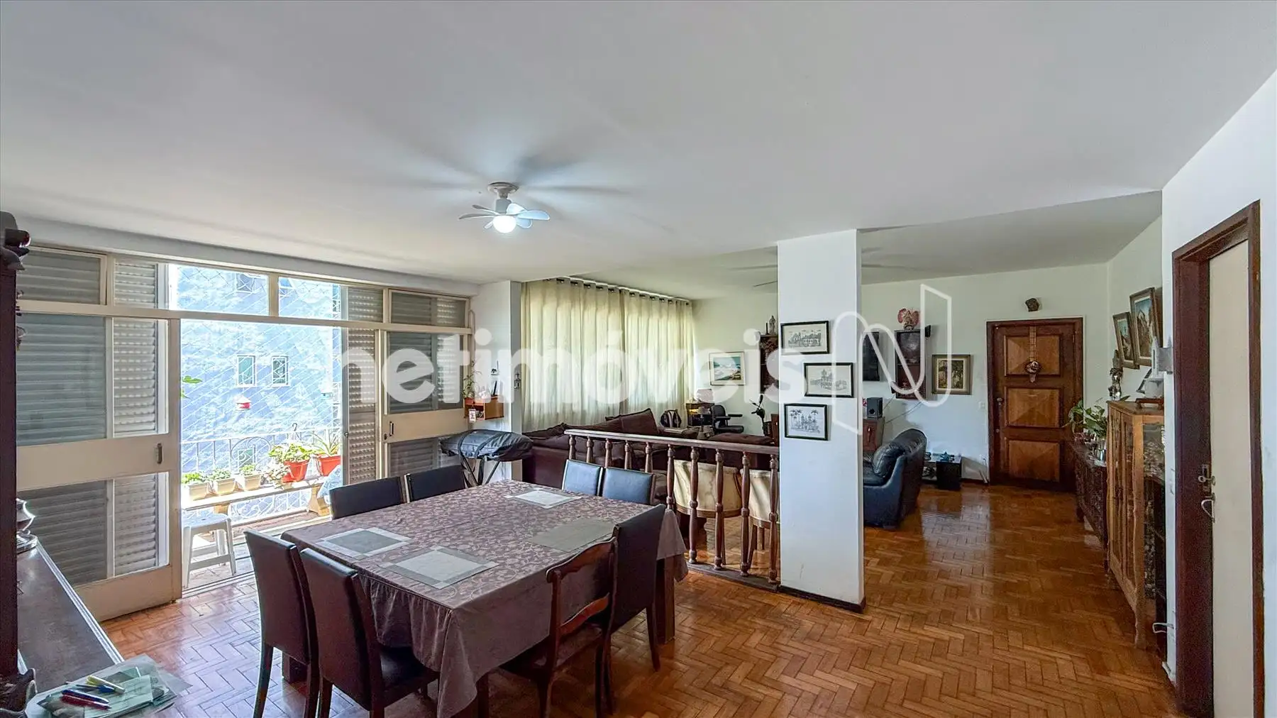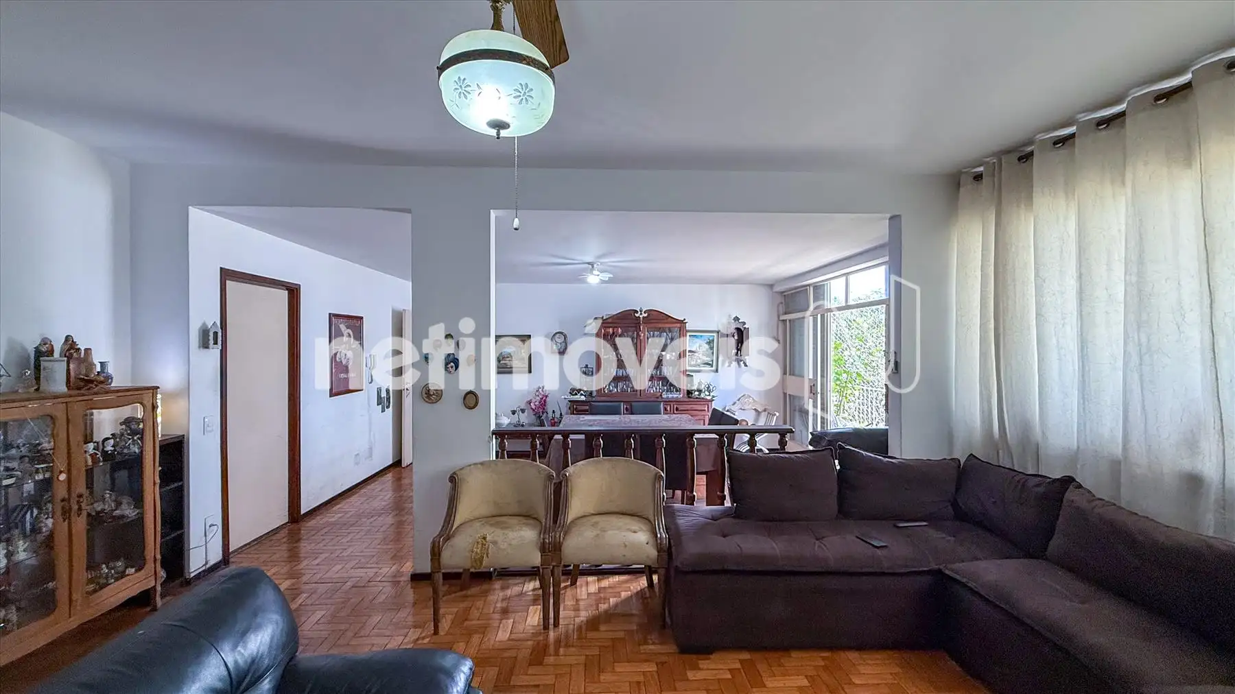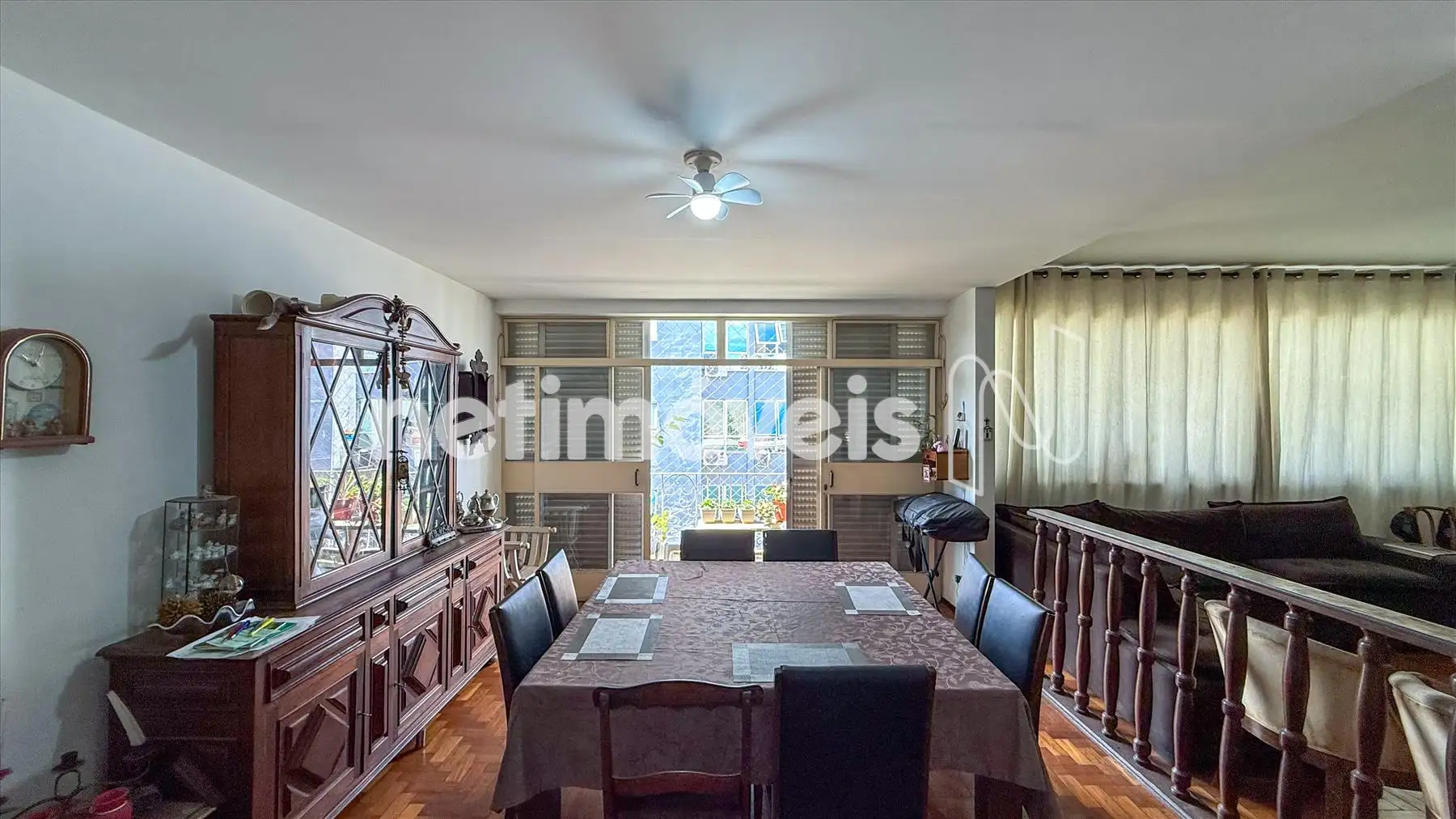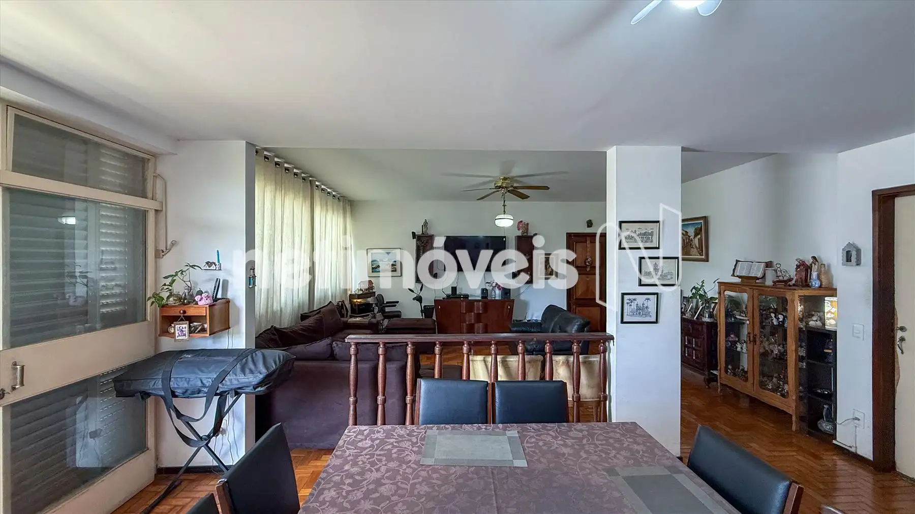 No interior do imóvel, há uma ampla sala para três ambientes com piso em tábua corrida e um varandão espaçoso com piso em granito. A sala de jantar, que foi um quarto, proporciona um espaço versátil.