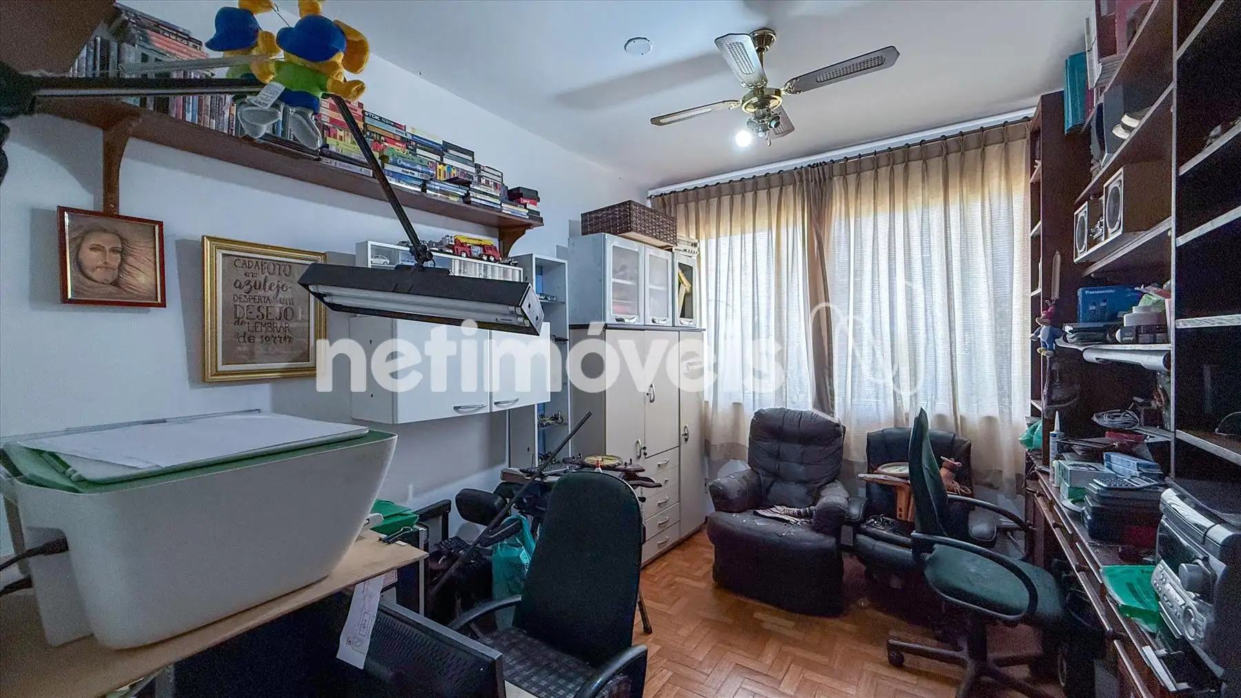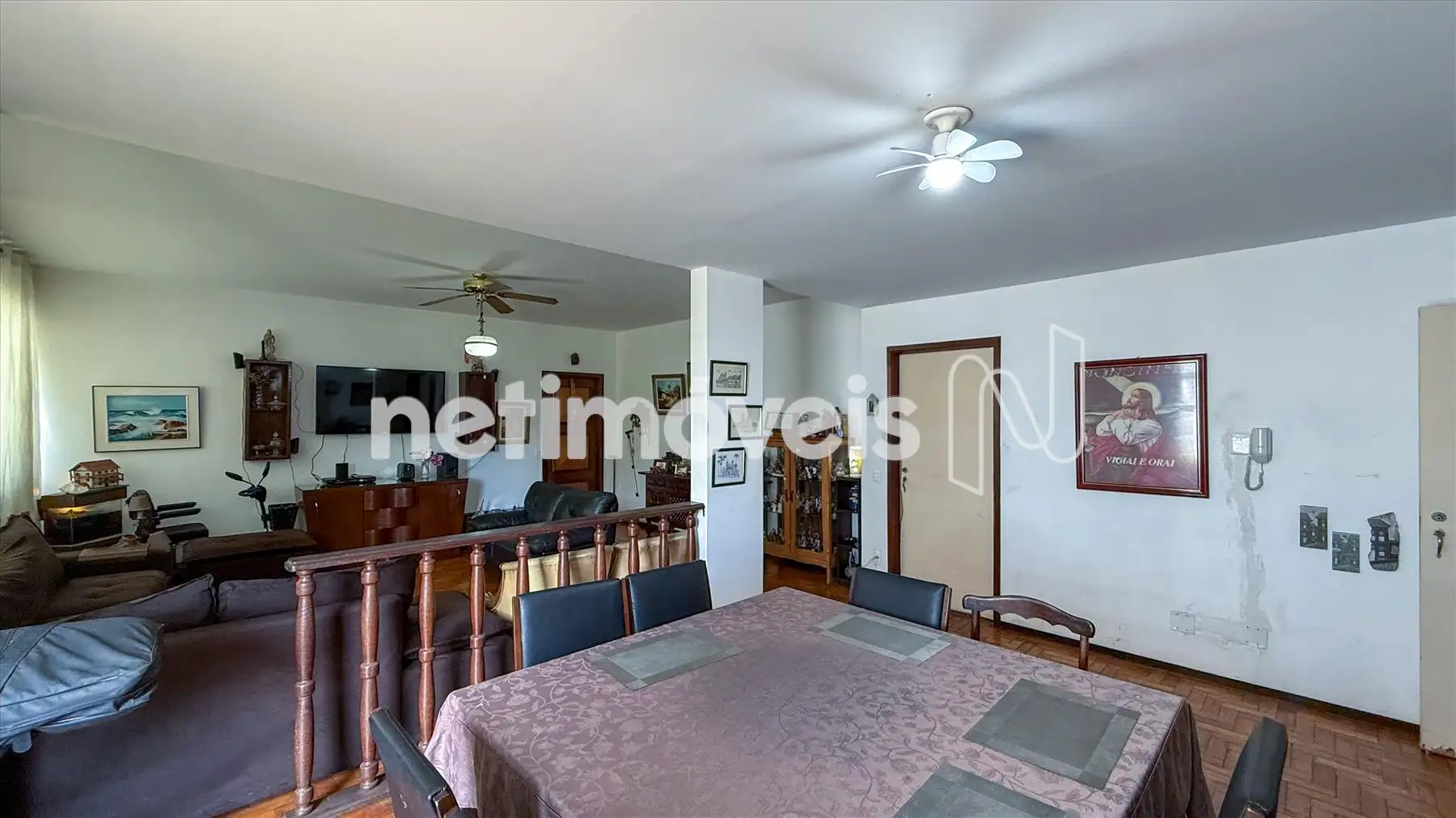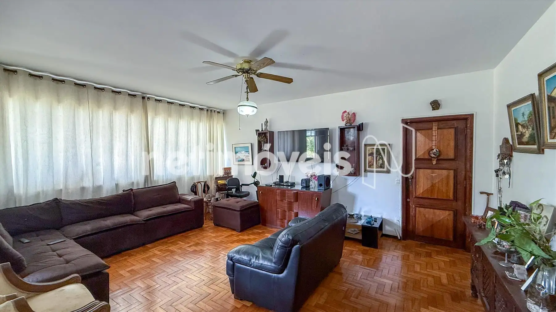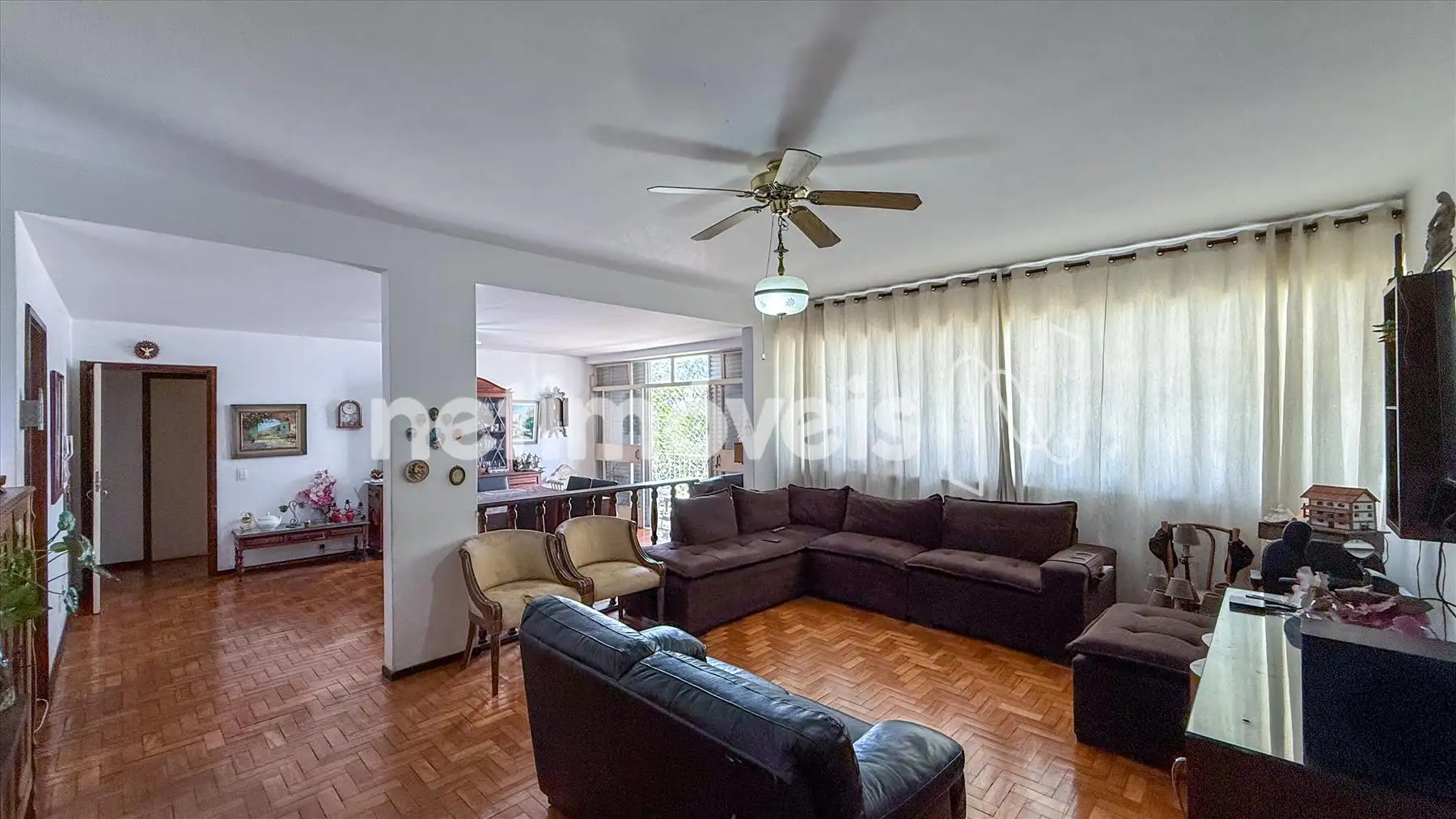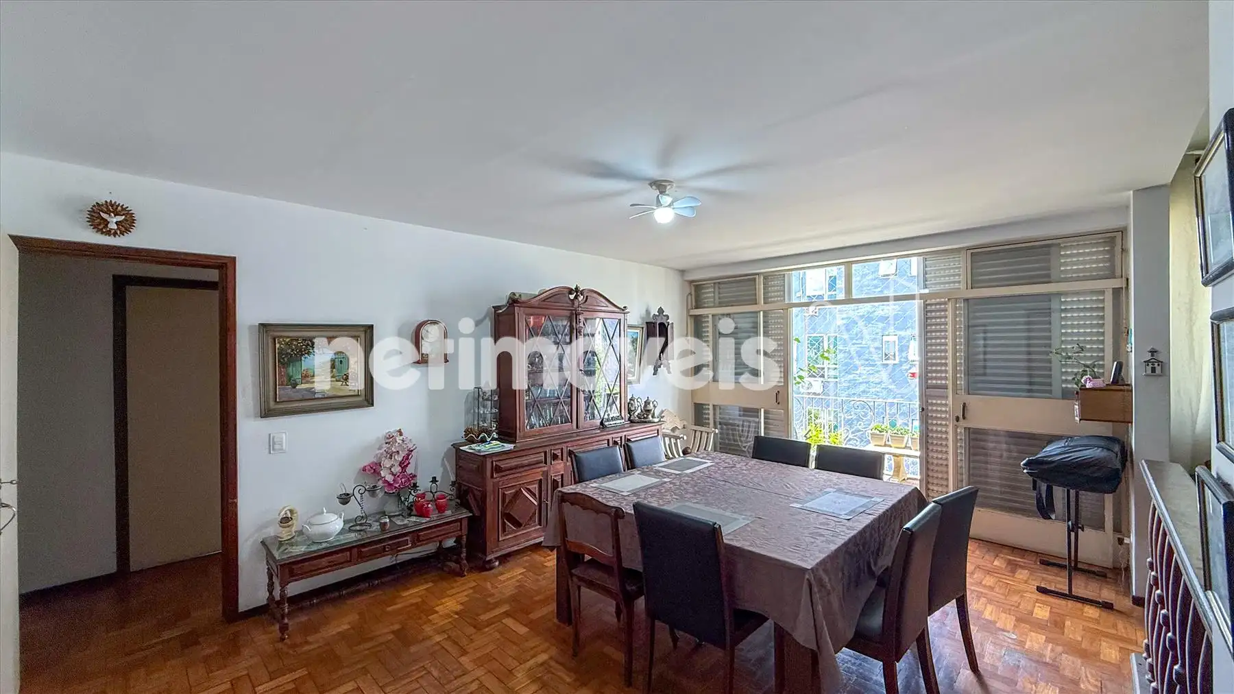 No interior do imóvel, há uma ampla sala para três ambientes com piso em tábua corrida e um varandão espaçoso com piso em granito. A sala de jantar, que foi um quarto, proporciona um espaço versátil.
