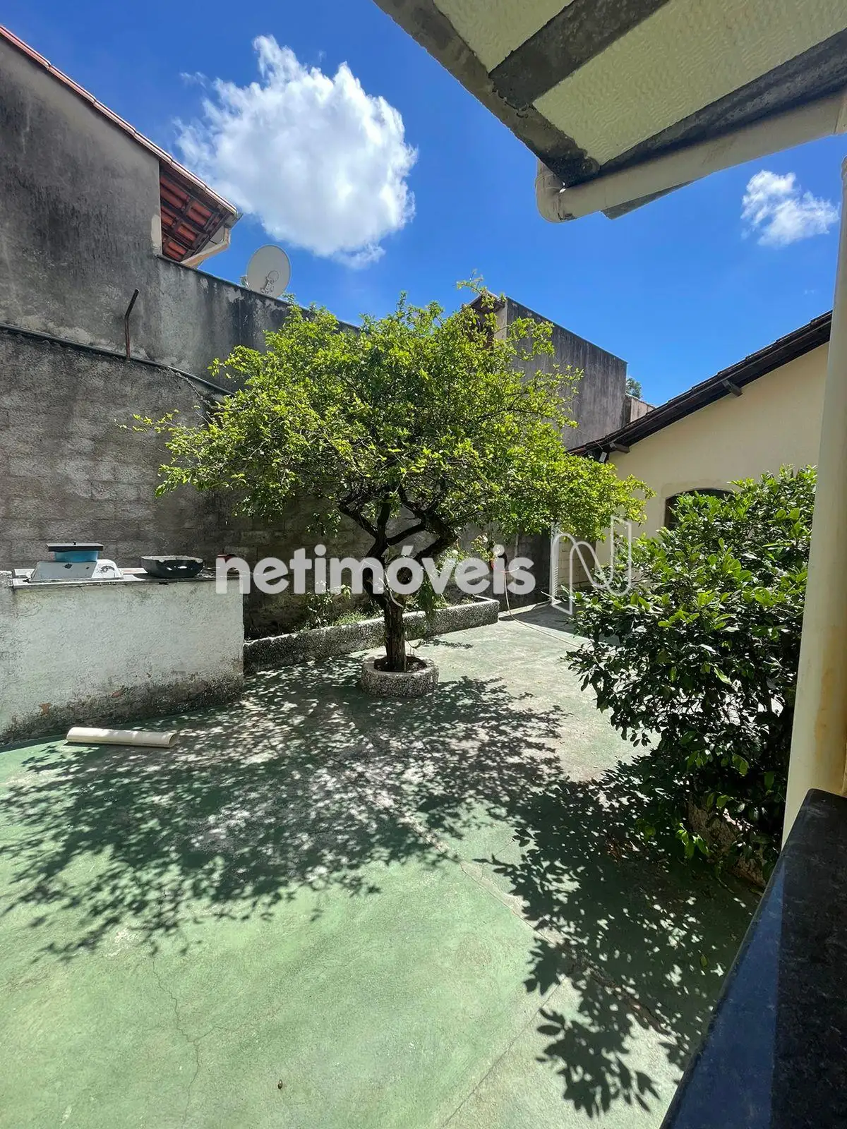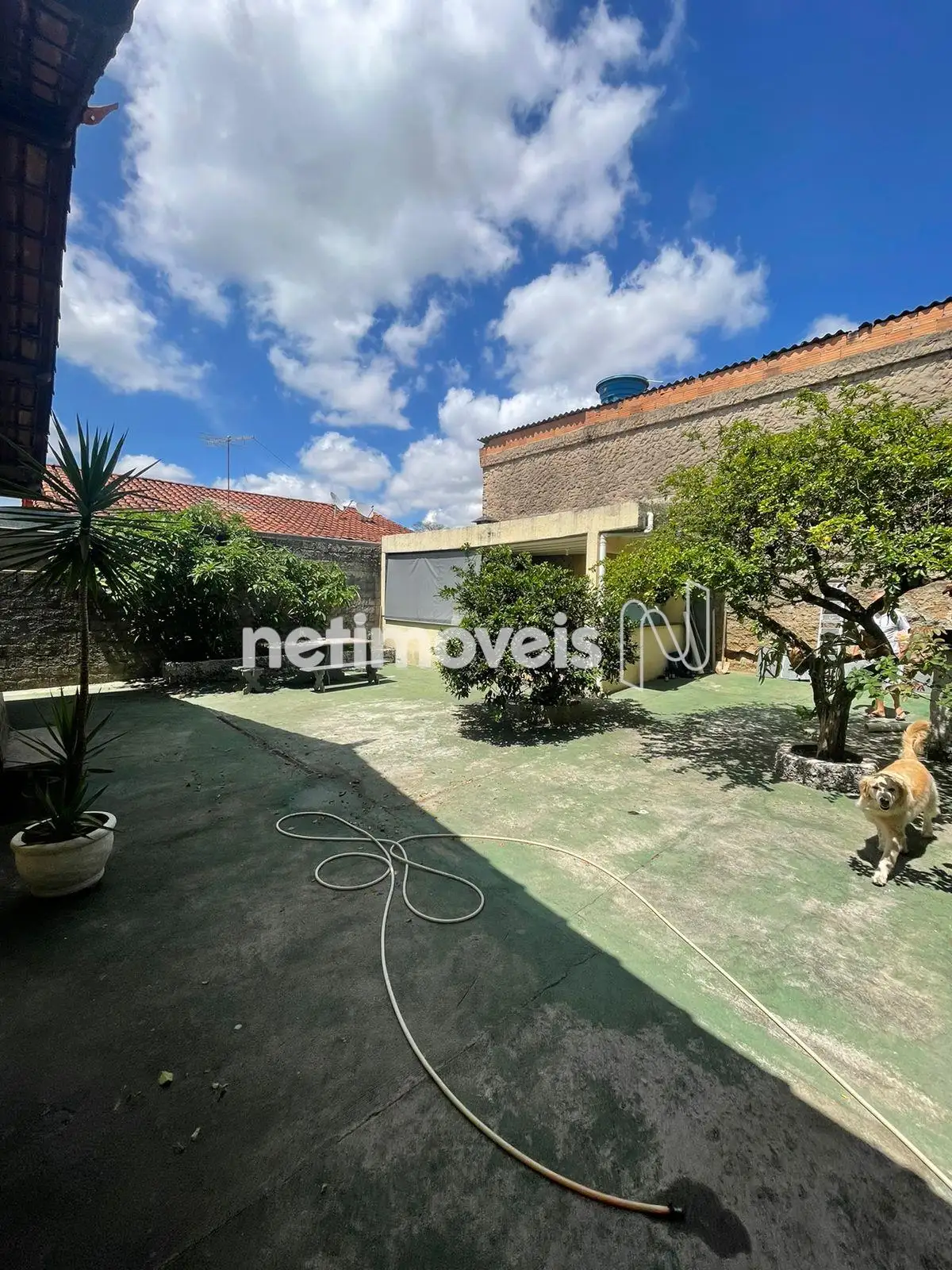 Quintal amplo nos fundos com parte cimentada e com vários tipos de plantas