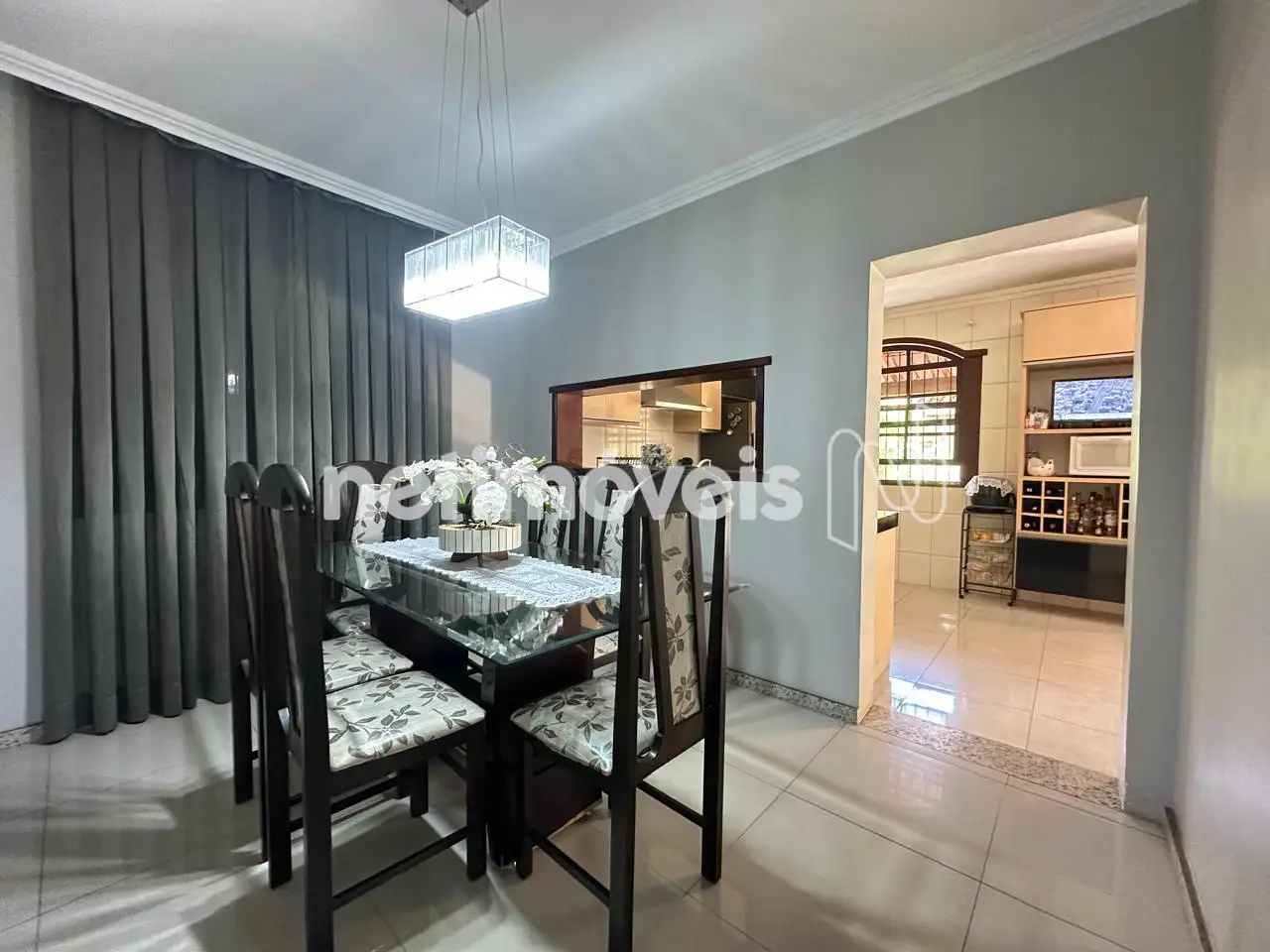 Sala de jantar com rebaixamento de gesso no teto;
