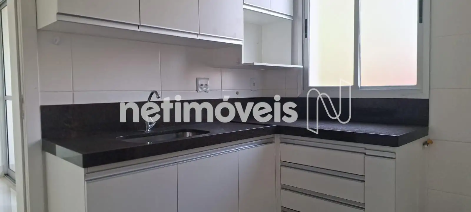 - ótima cozinha com armários sob e sobre a pia bancada em granito piso de cerâmica