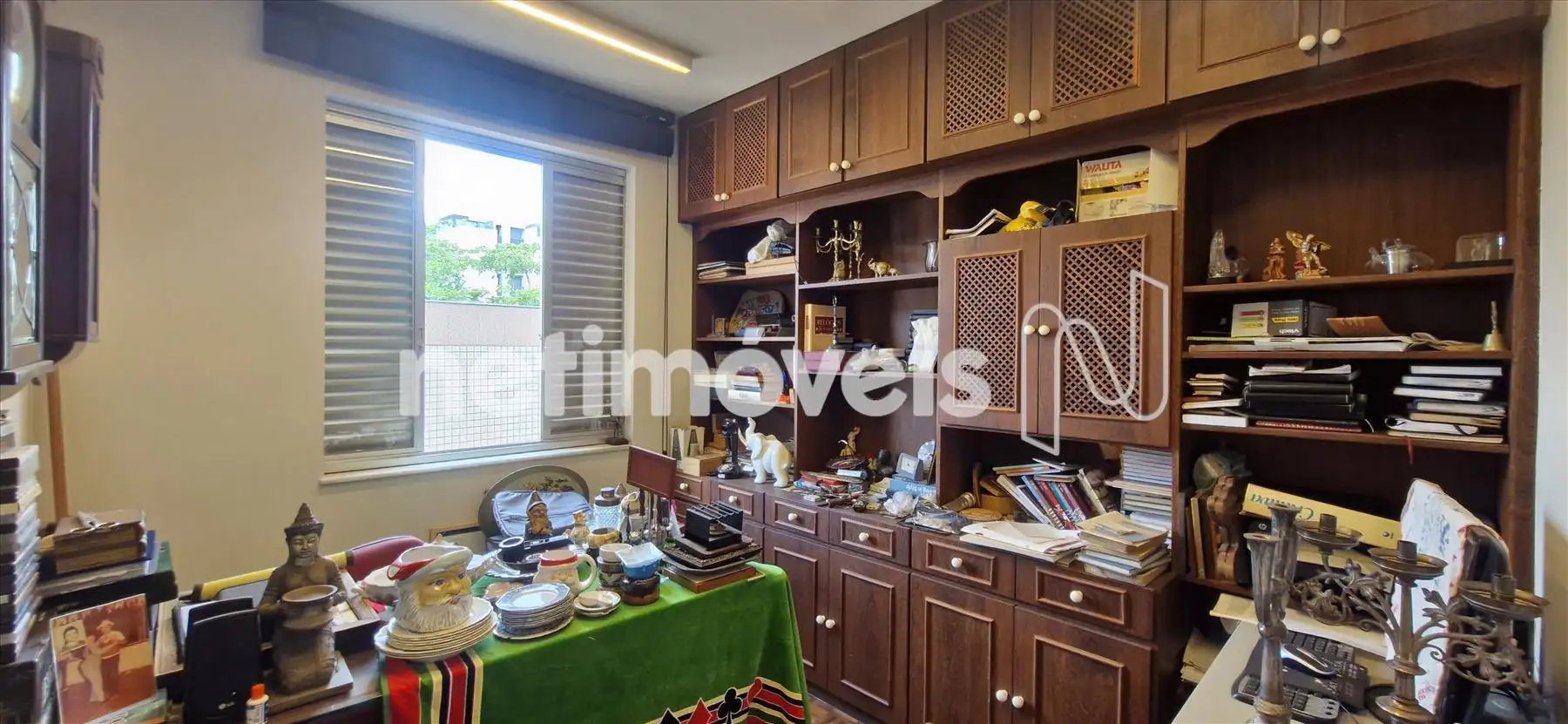 04 quartos amplos com armários novos, sendo o quarto principal com closet e suíte, e quarto com armários de escritório todo montado.