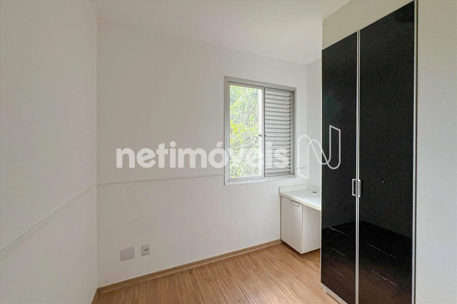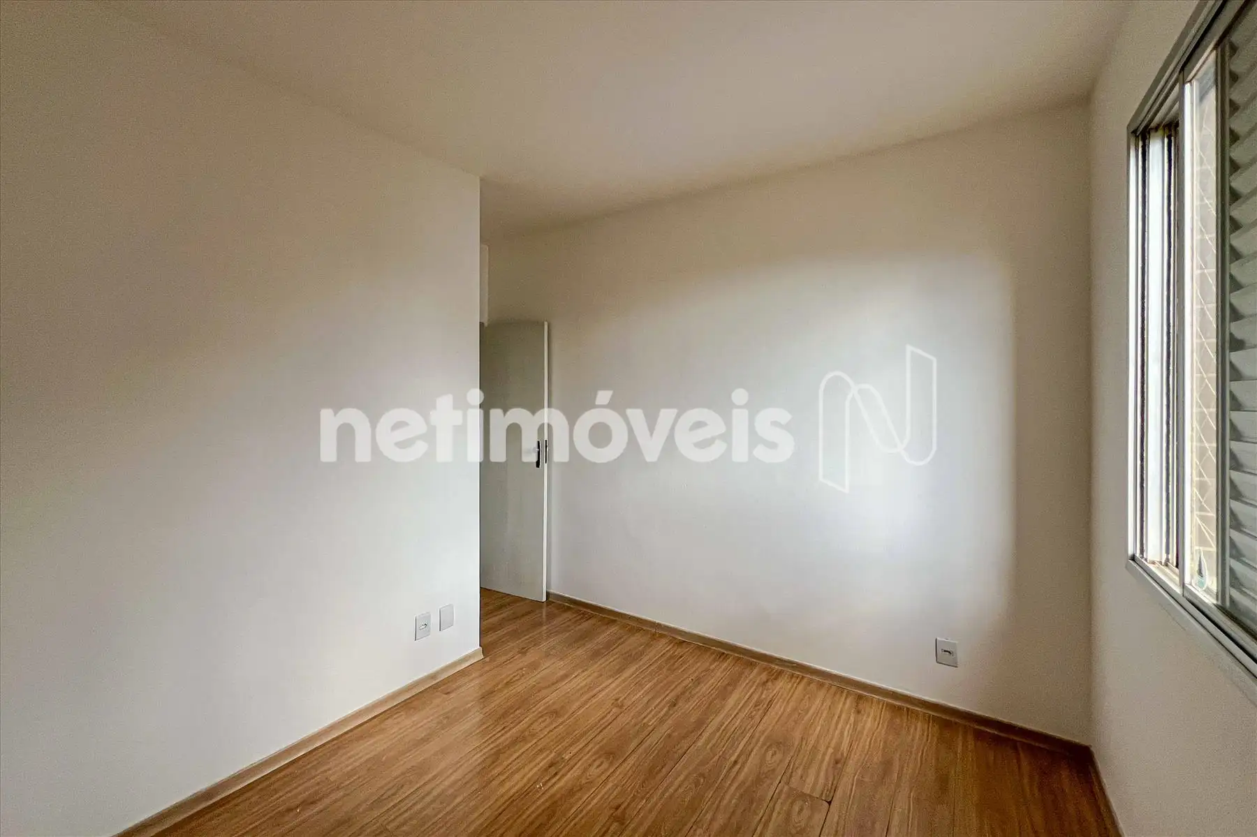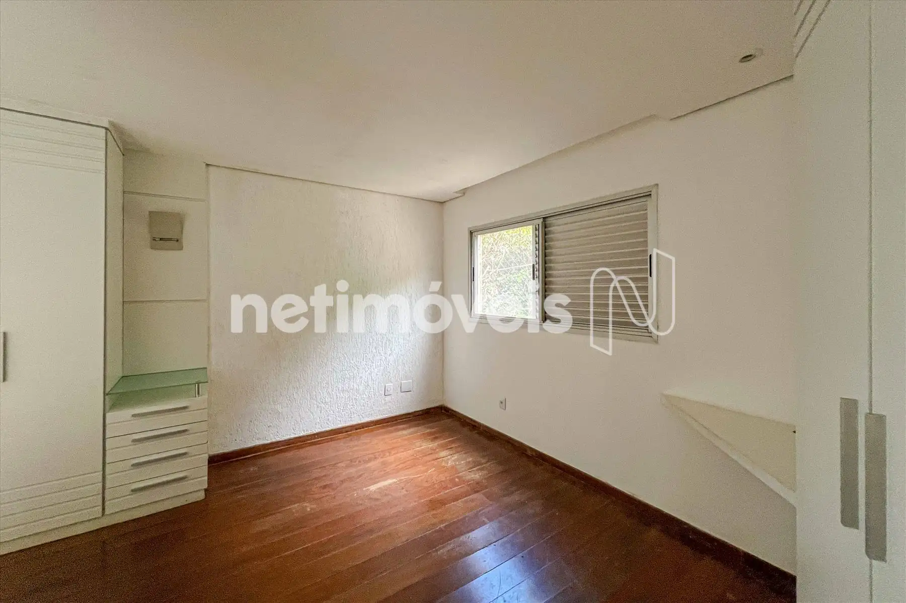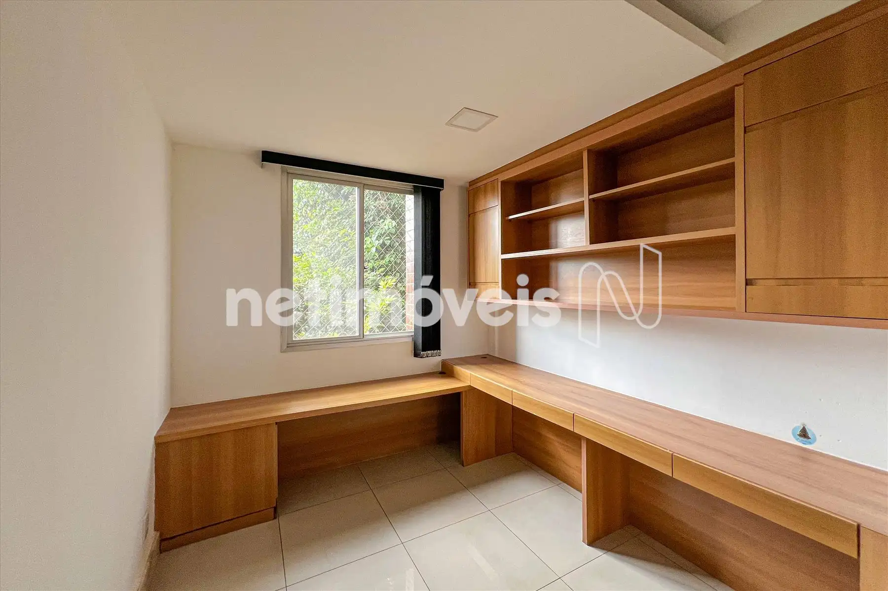 As janelas têm esquadrias de alumínio com veneziana.