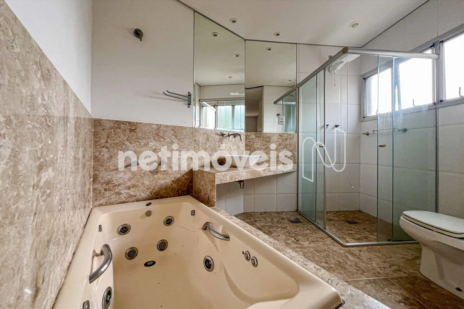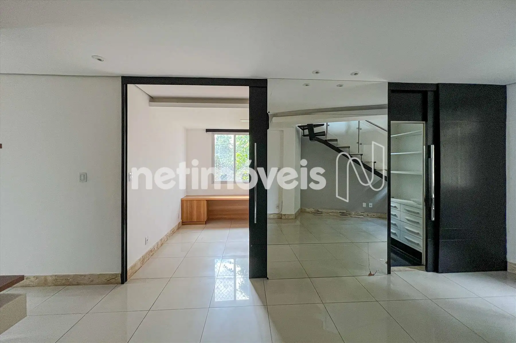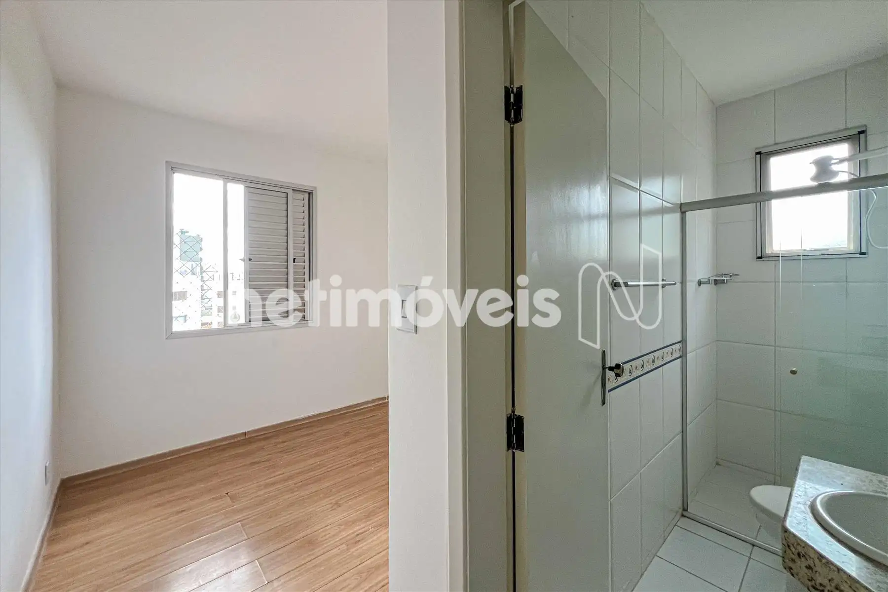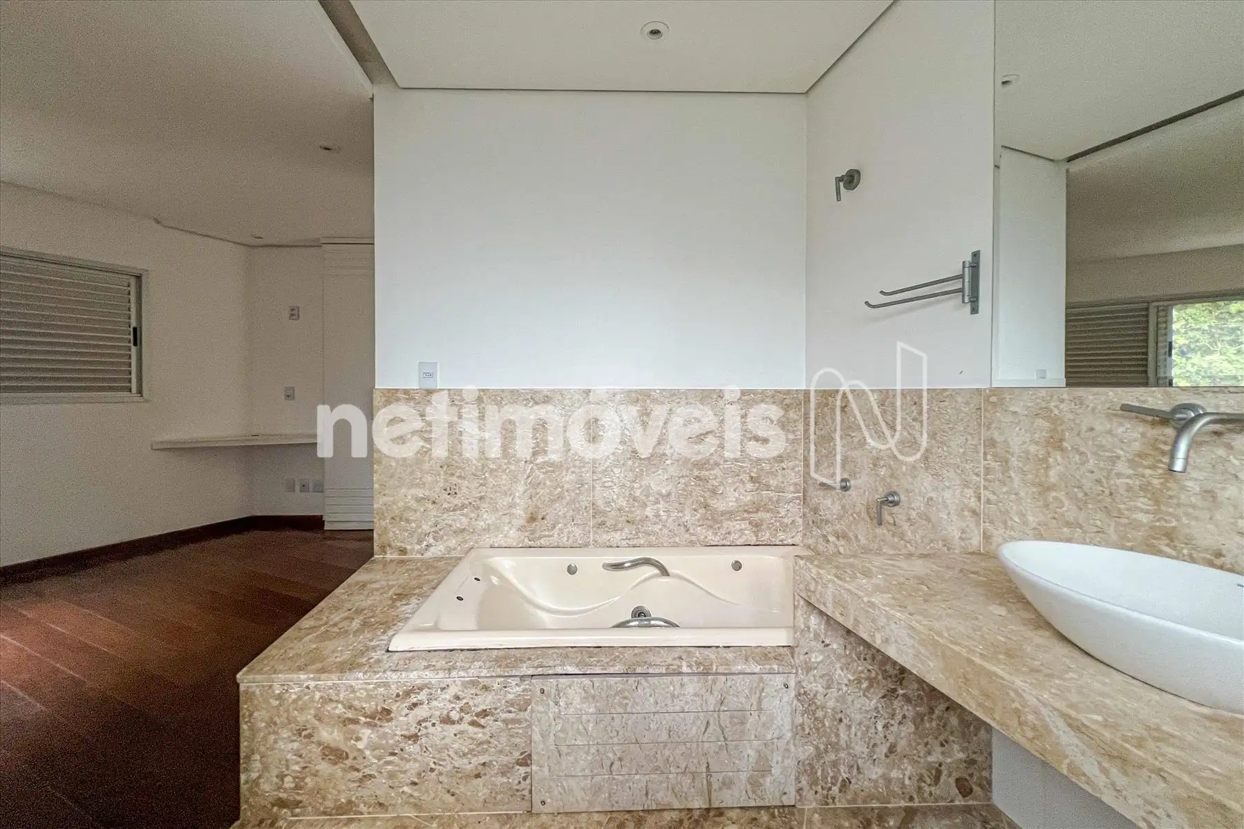 As janelas têm esquadrias de alumínio com veneziana.