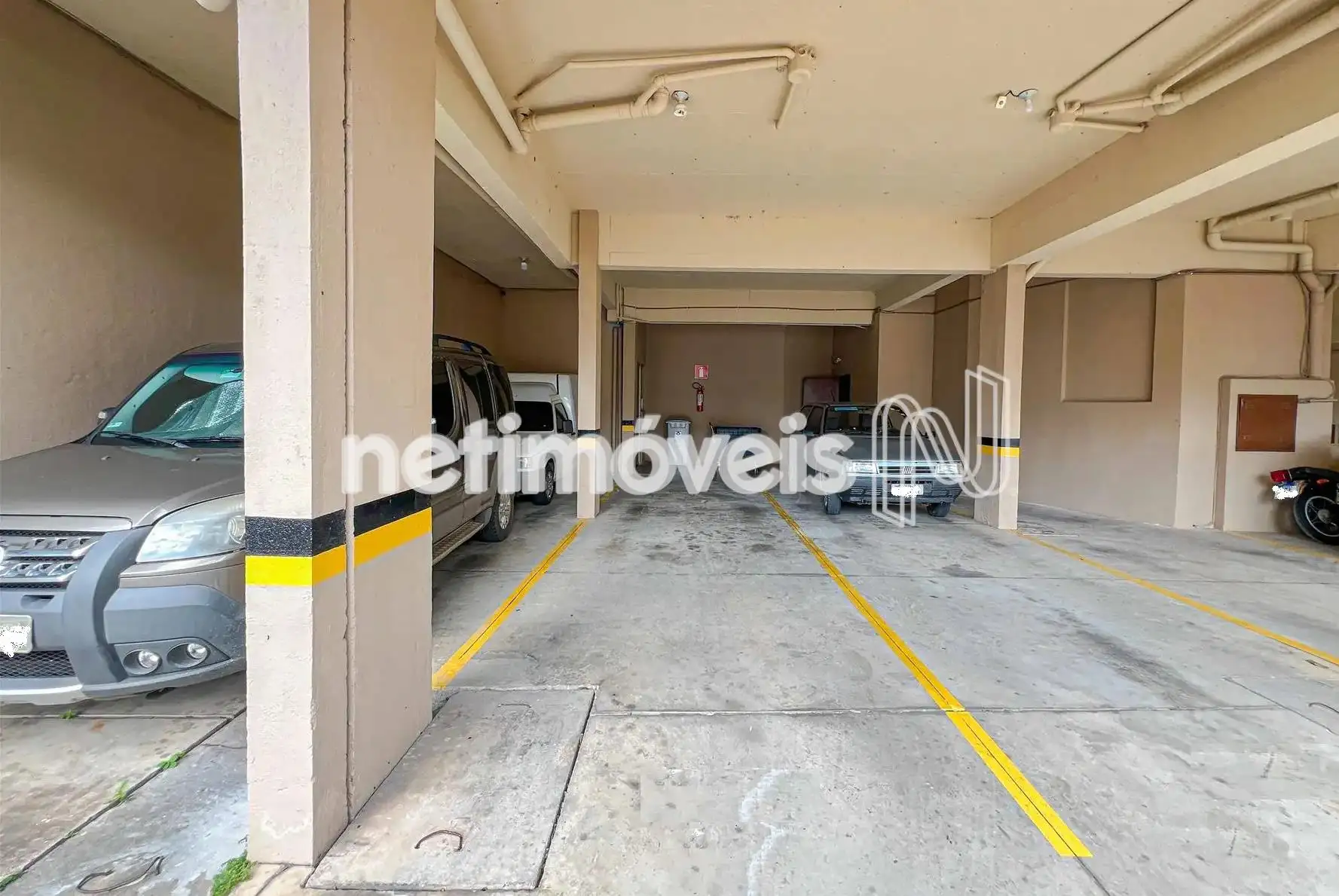 O imóvel oferece duas vagas cobertas, demarcadas, em linha, e possui iptu baixo.