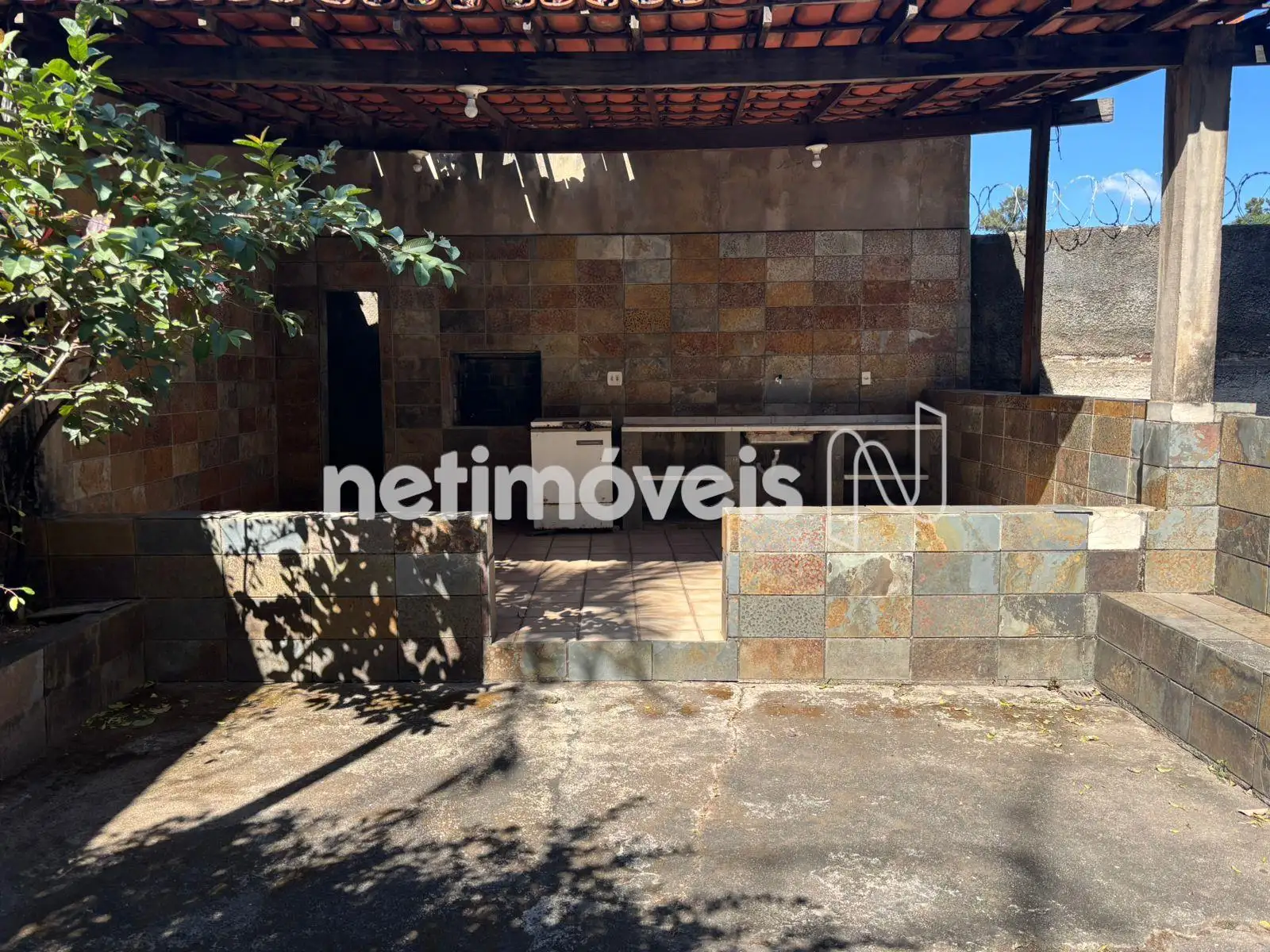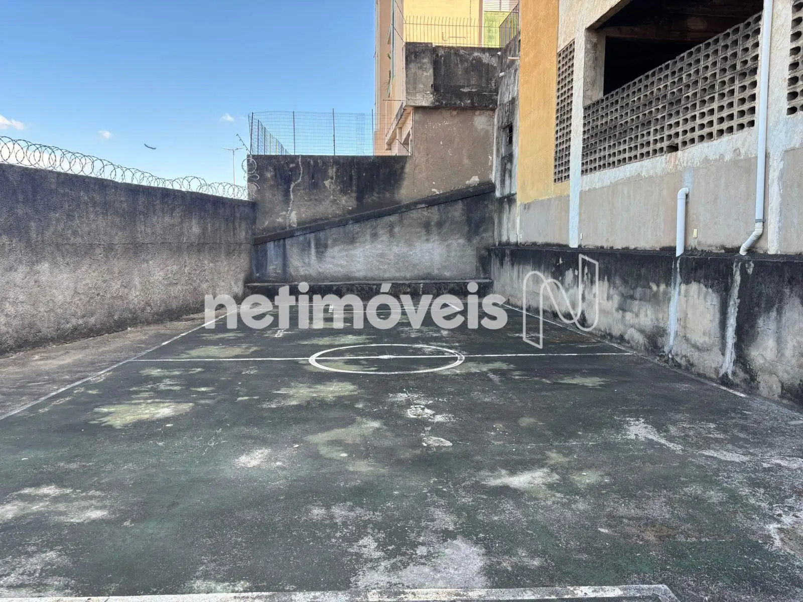 quadra de esporte e um área com churrasqueira;